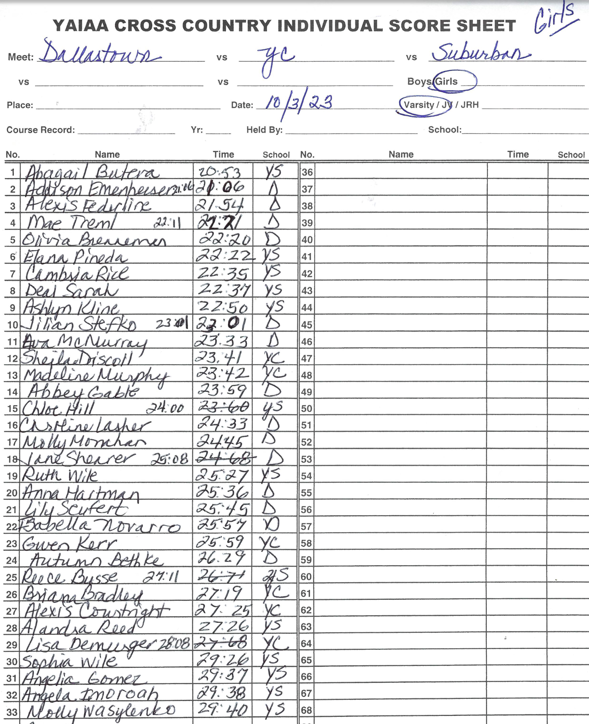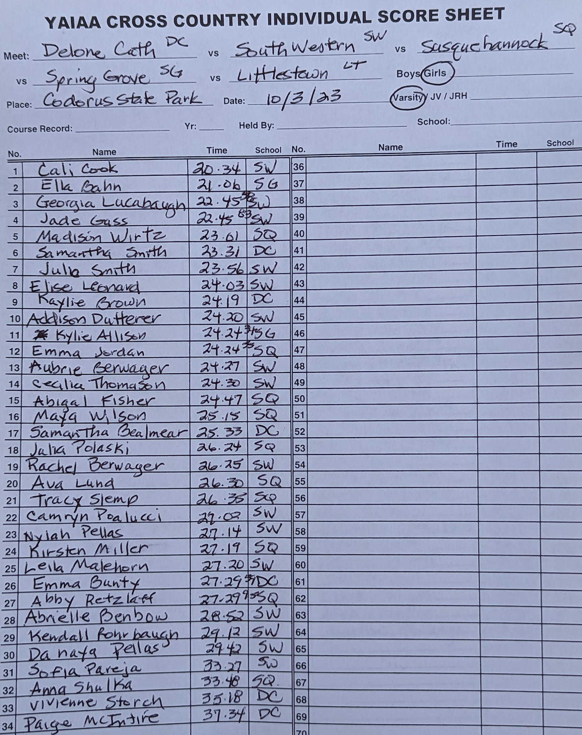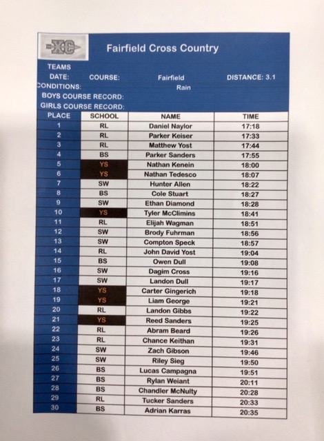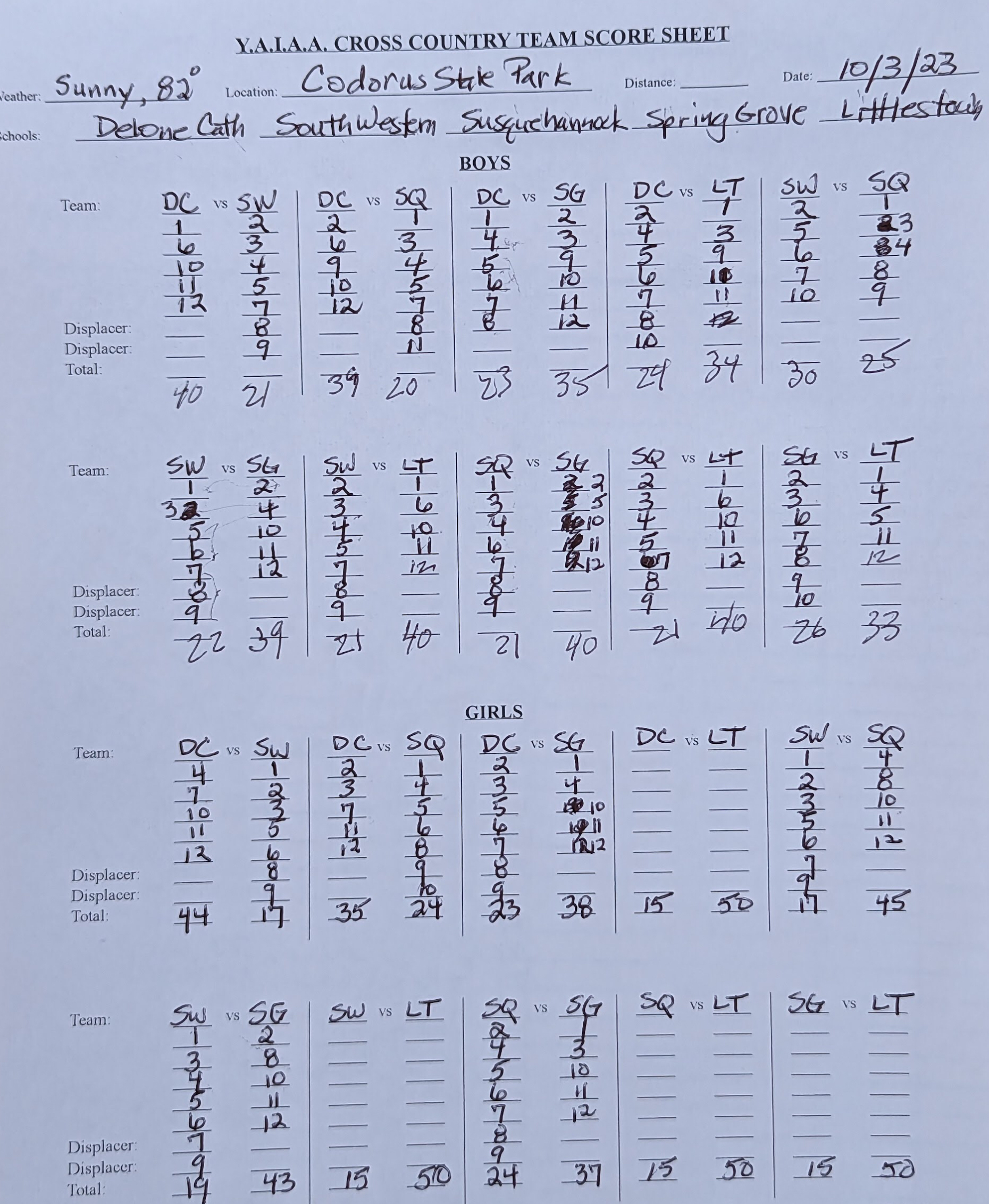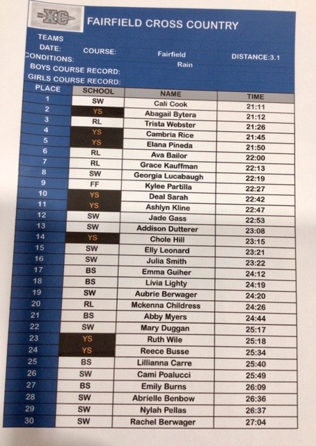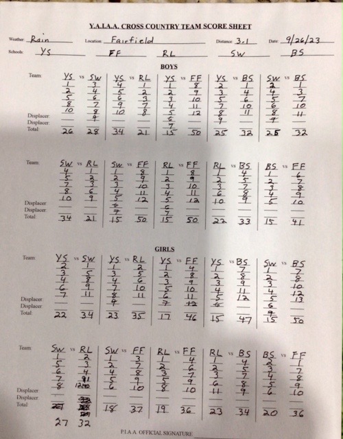 Bermudian Springs, Red Lion, South Western, and York Suburban @ Fairfield – Girls 1 Girls 2 Boys 1 Boys 2 Team Scores