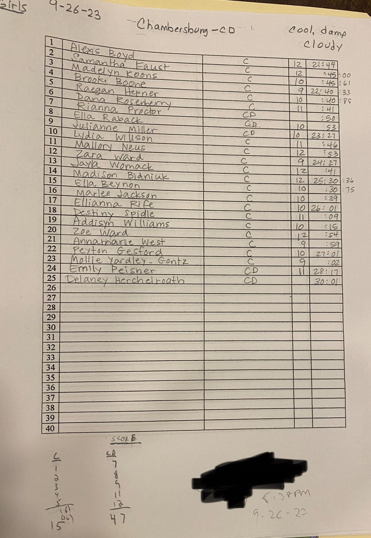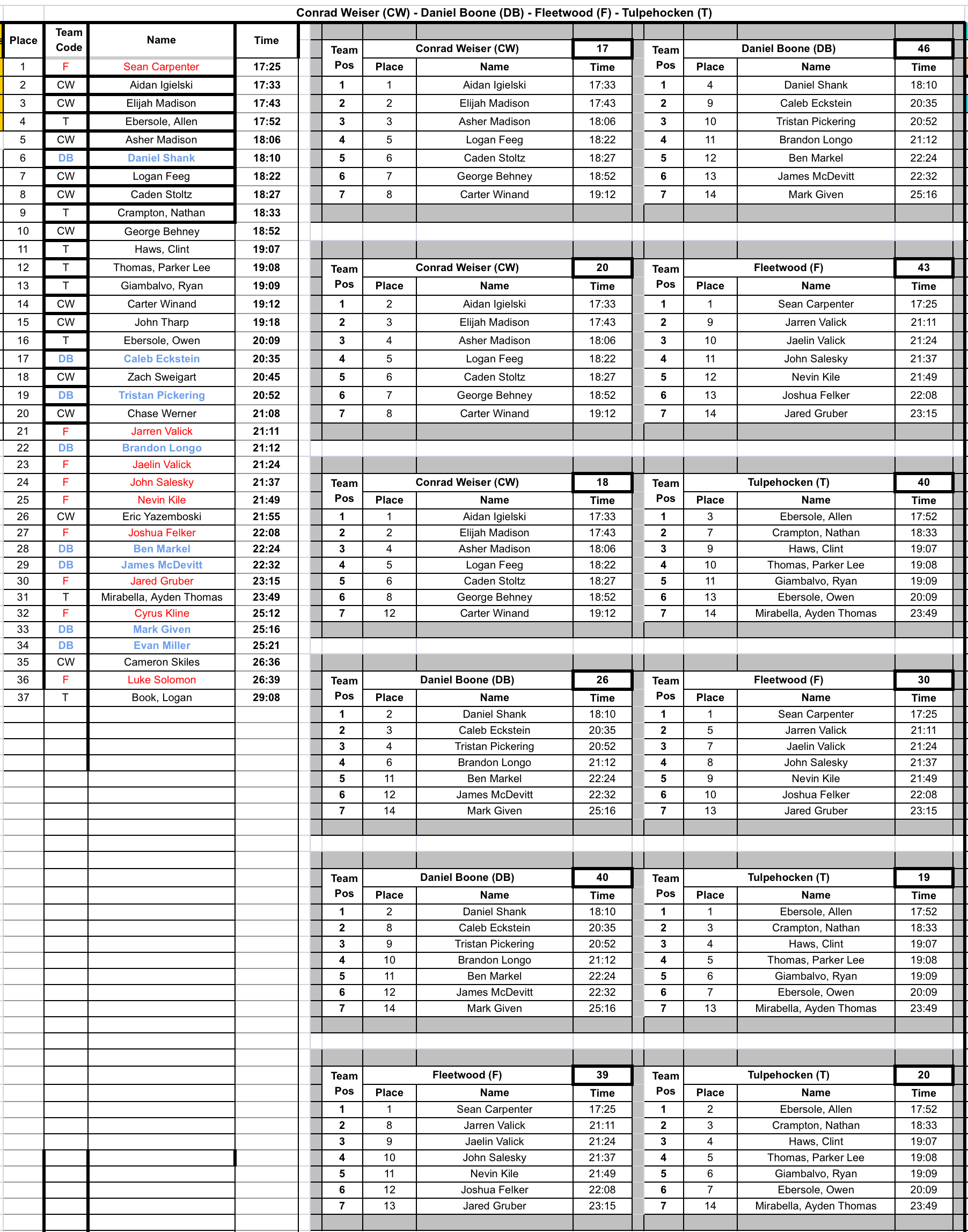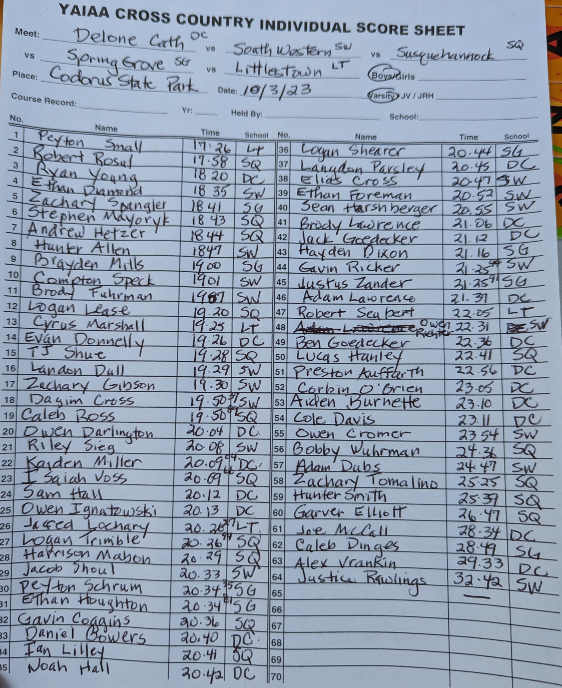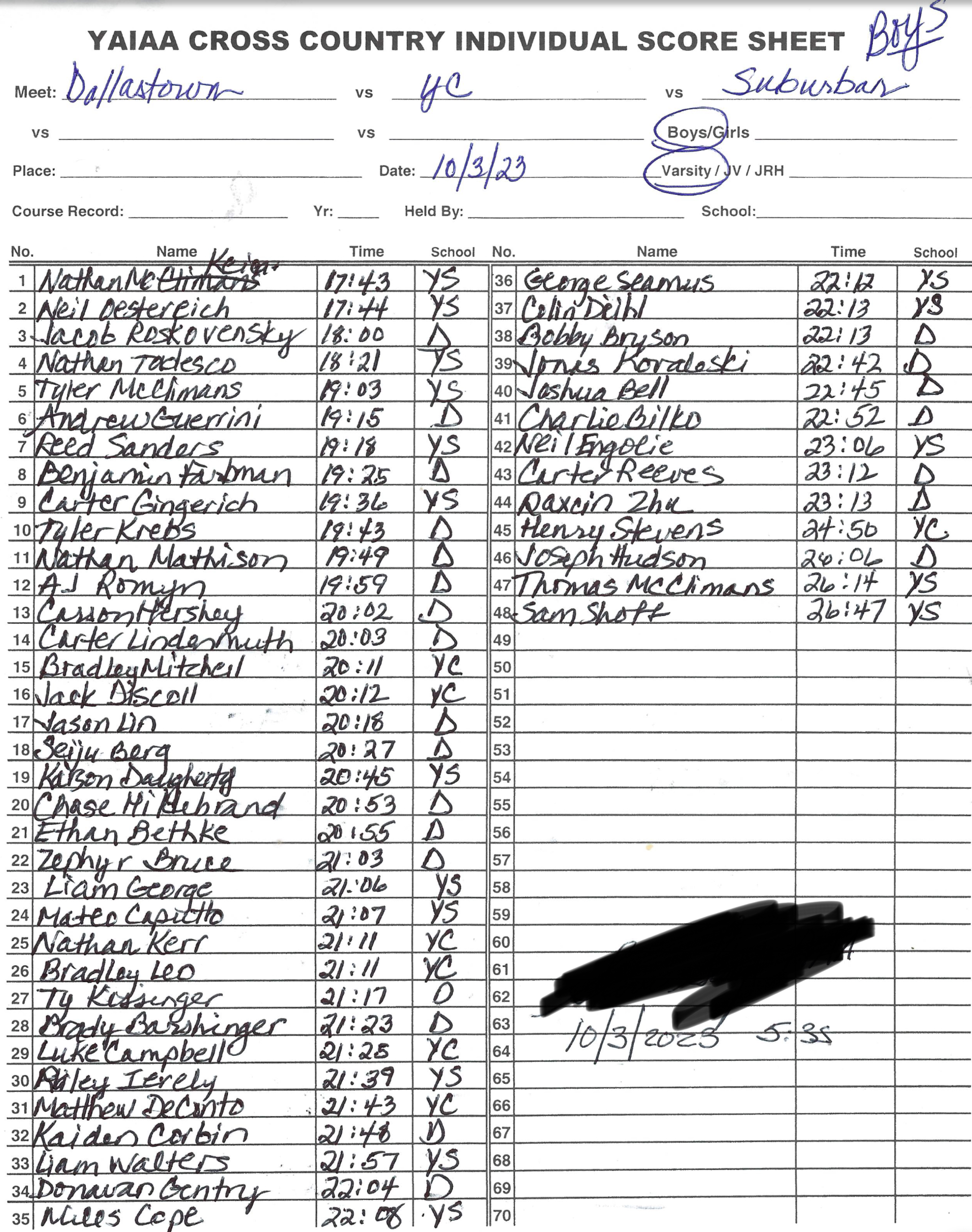 Bermudian Springs, Red Lion, South Western, and York Suburban @ Fairfield – Girls 1 Girls 2 Boys 1 Boys 2 Team Scores