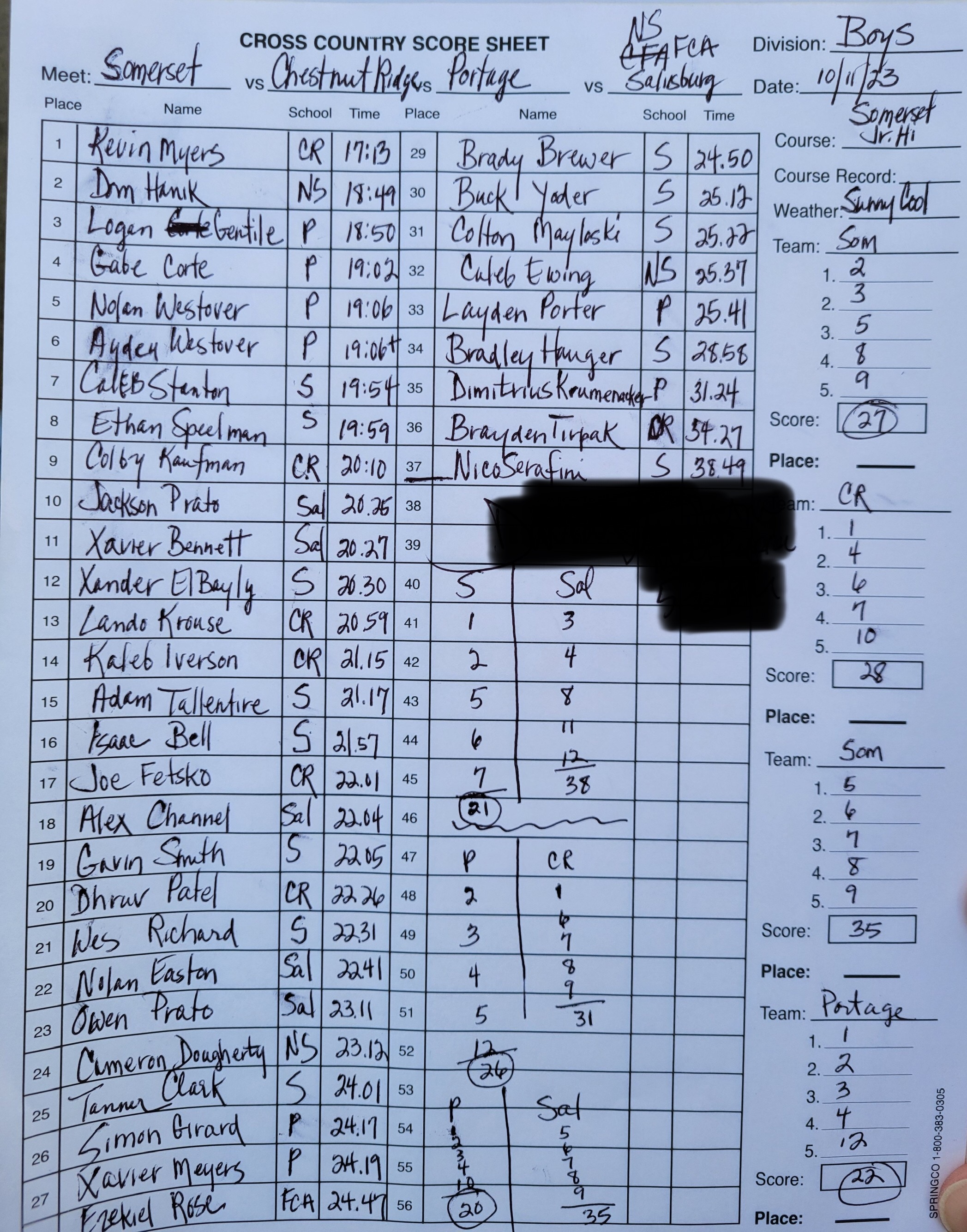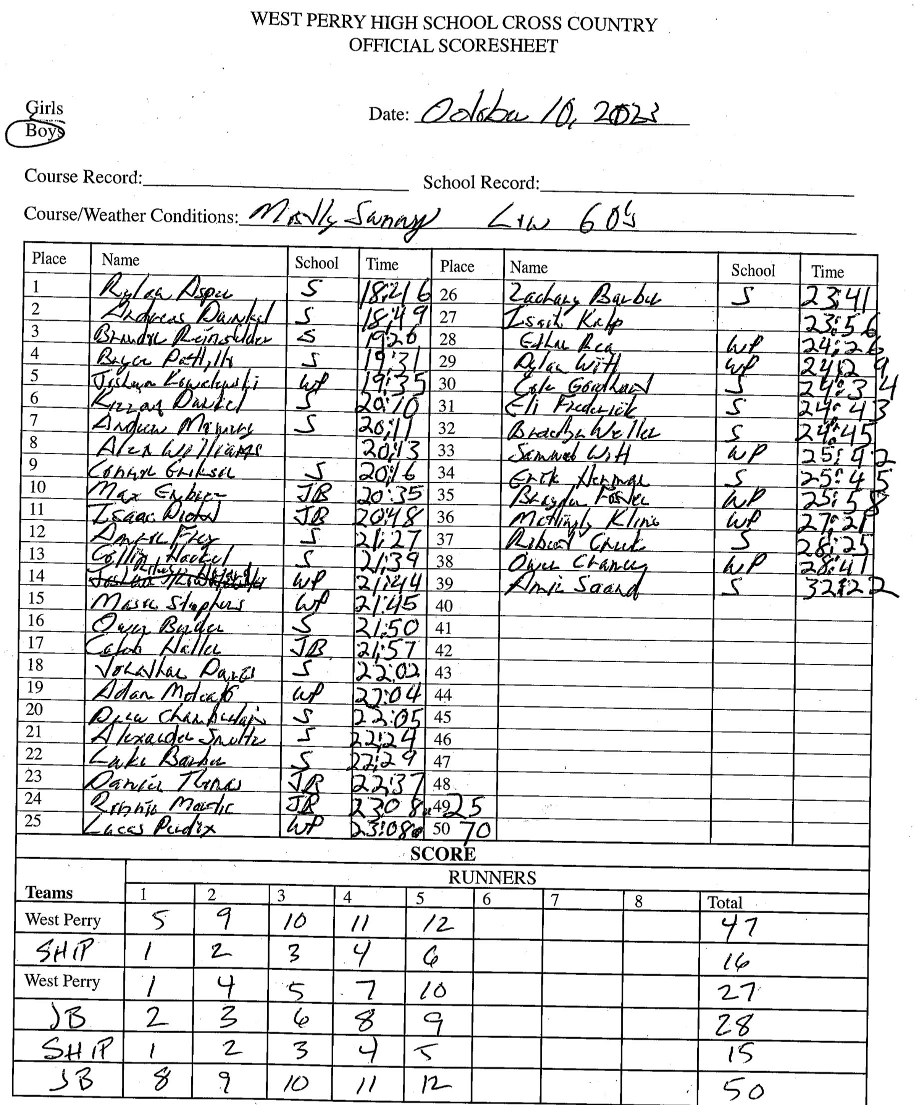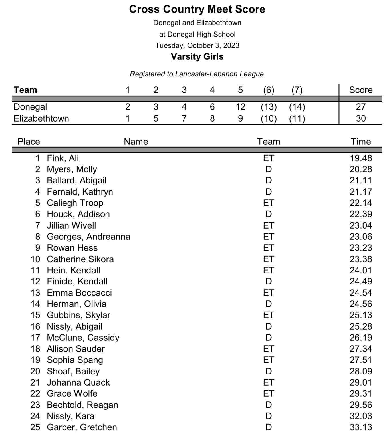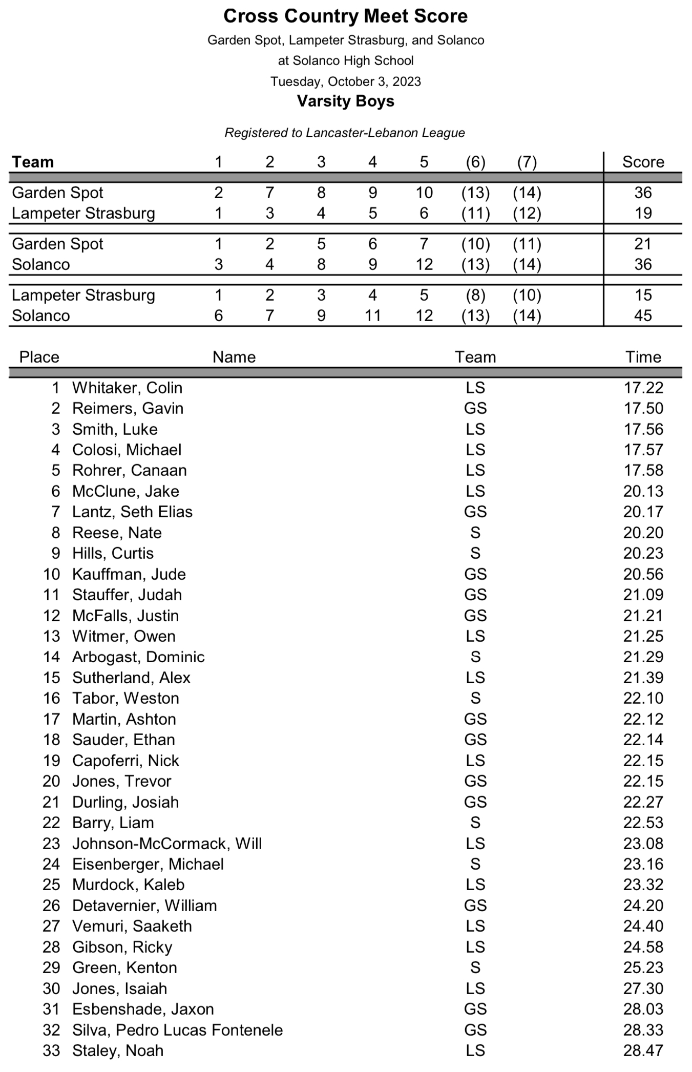 Bermudian Springs, Red Lion, South Western, and York Suburban @ Fairfield – Girls 1 Girls 2 Boys 1 Boys 2 Team Scores
