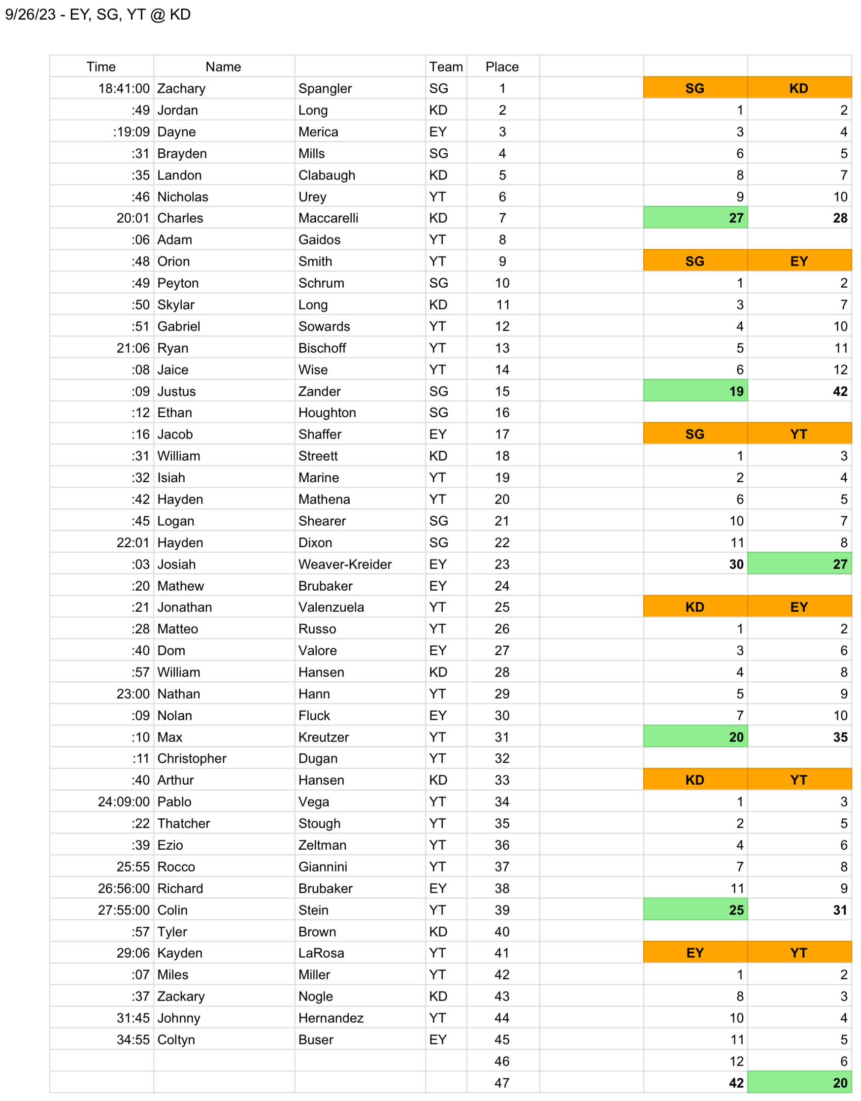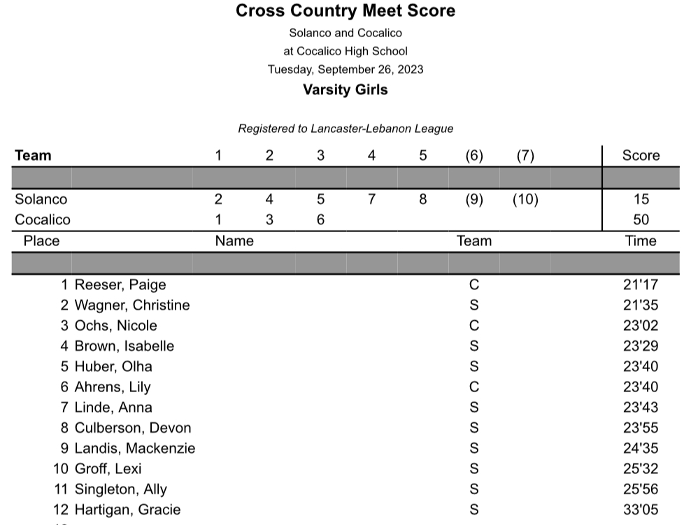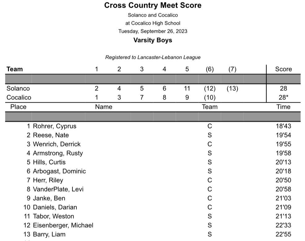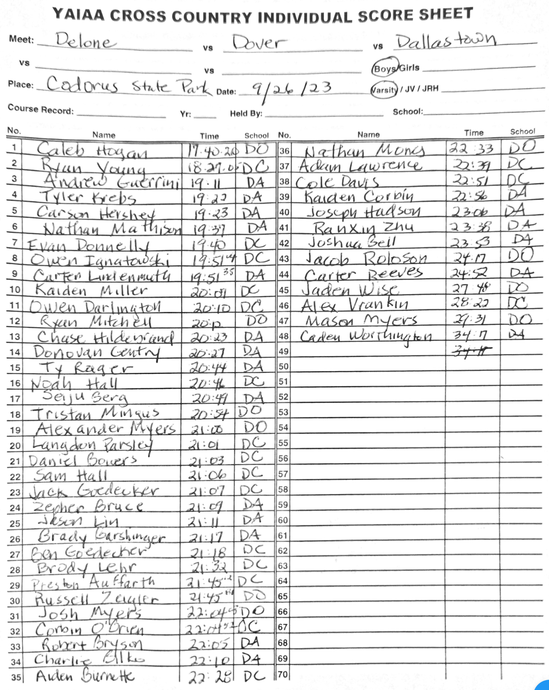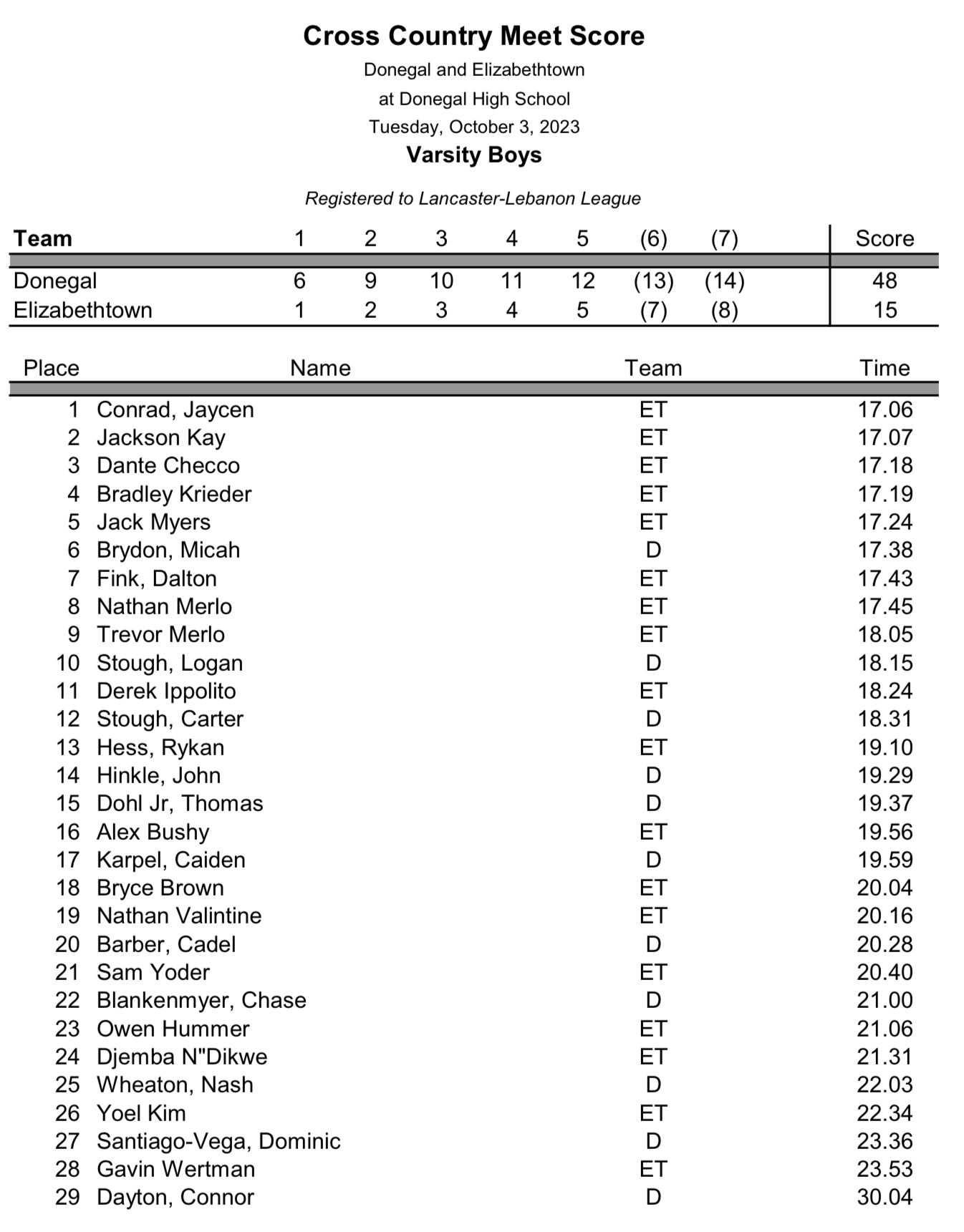 Bermudian Springs, Red Lion, South Western, and York Suburban @ Fairfield – Girls 1 Girls 2 Boys 1 Boys 2 Team Scores