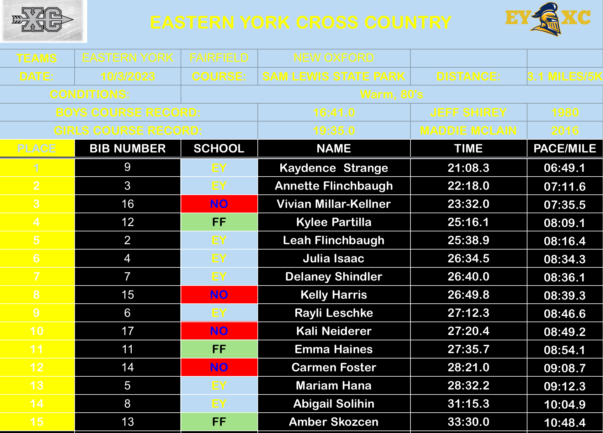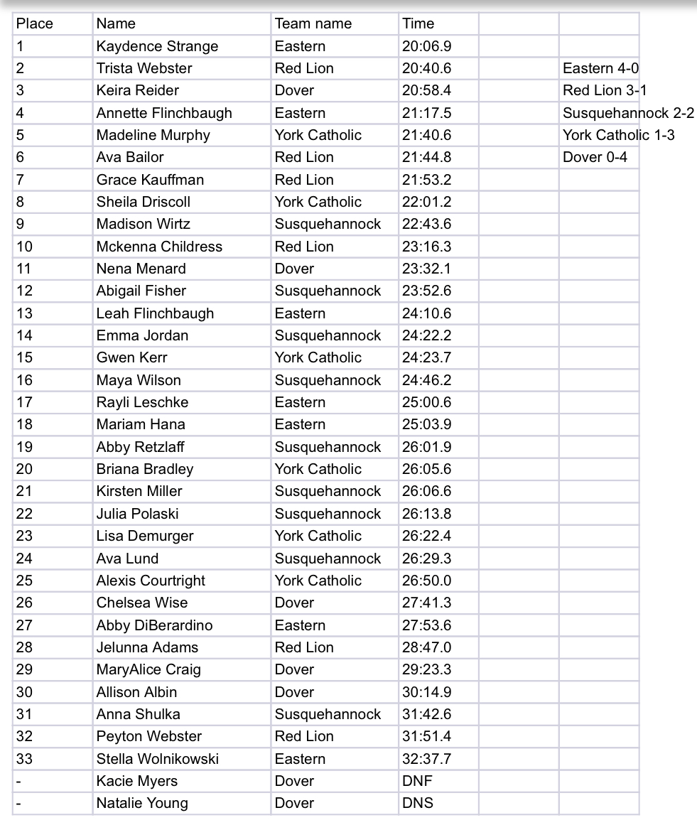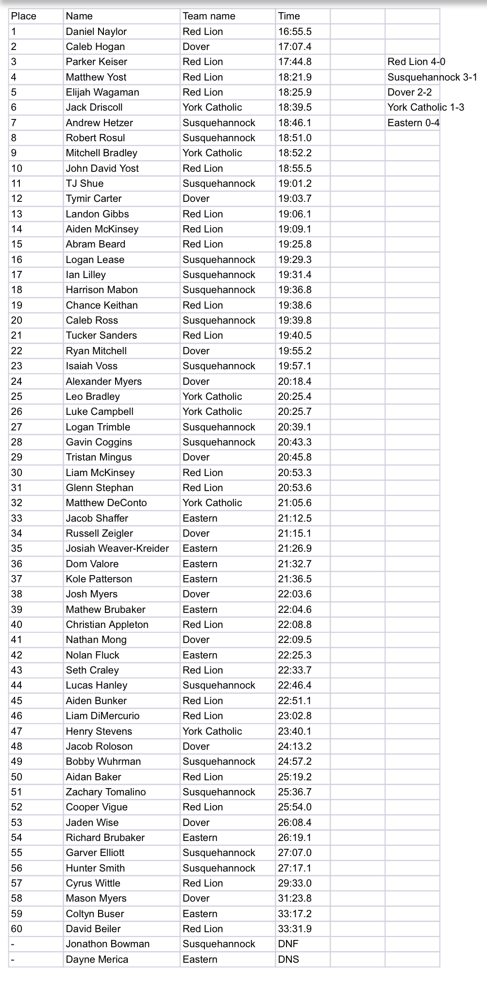 Susquehannock JrHS Invitational (YAIAA MS Champs) – Results