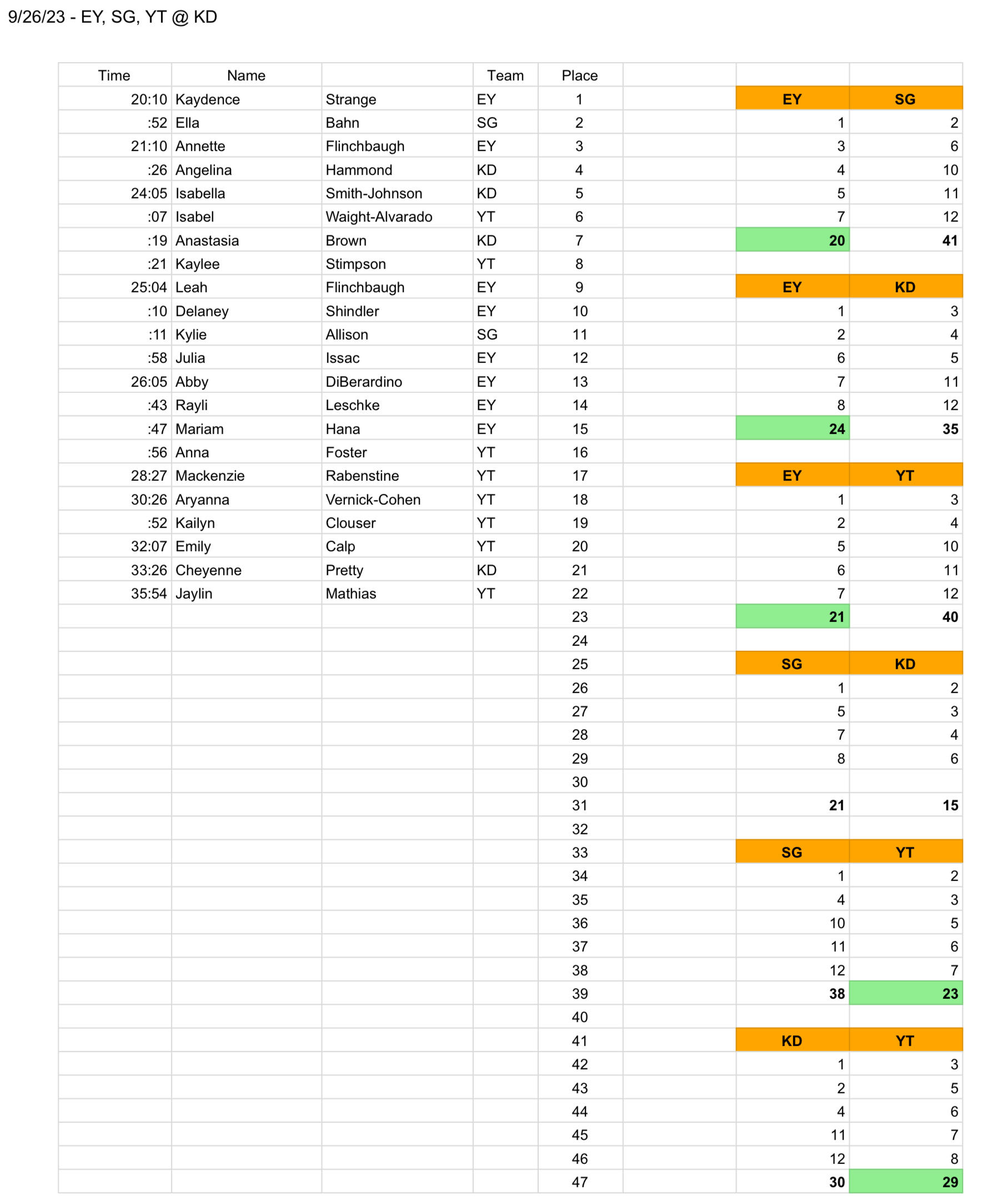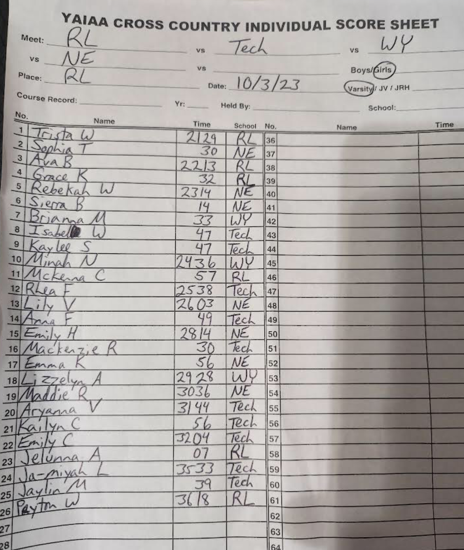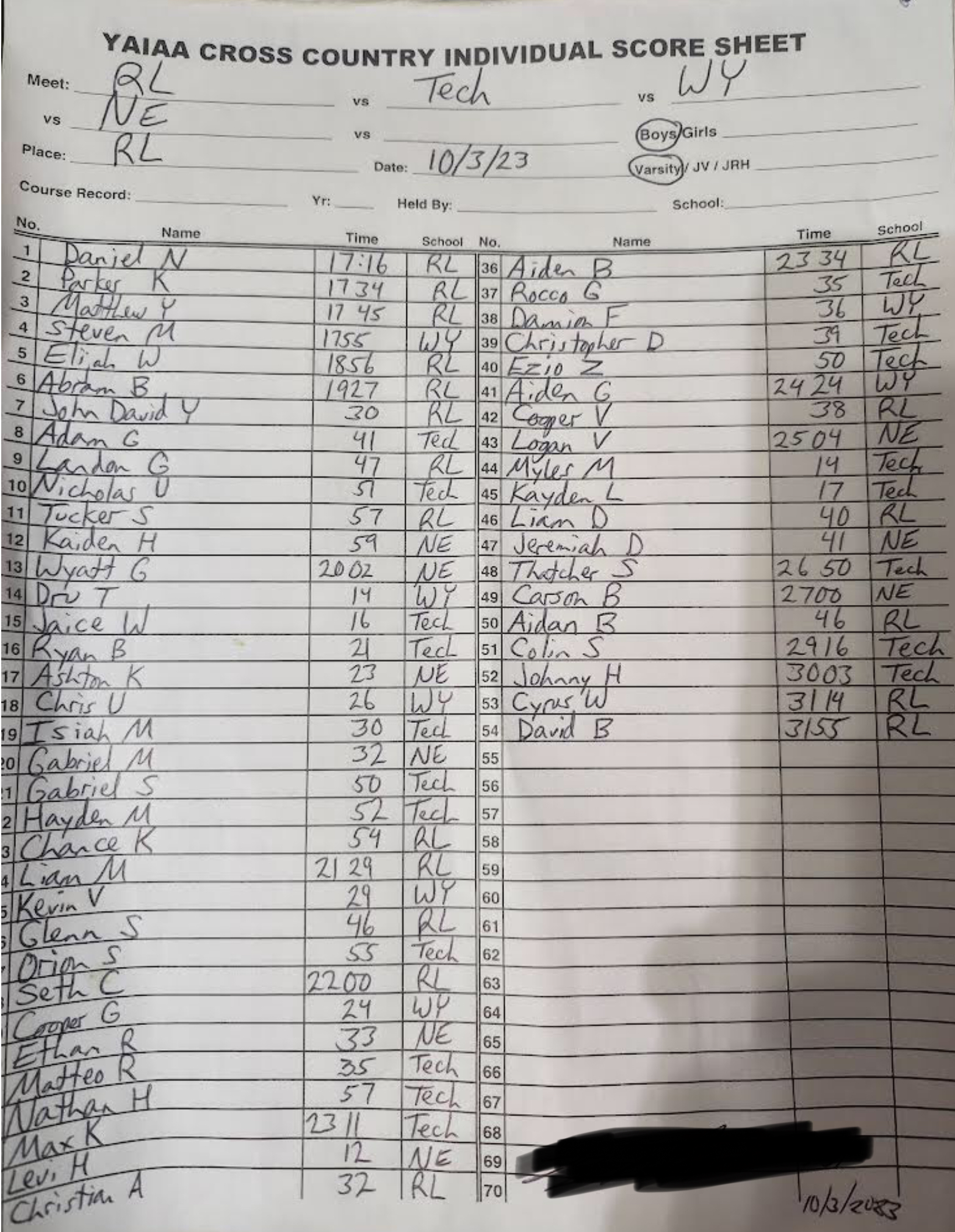 Susquehannock JrHS Invitational (YAIAA MS Champs) – Results