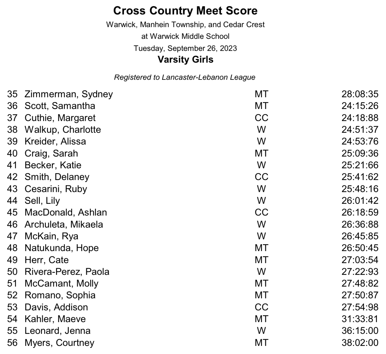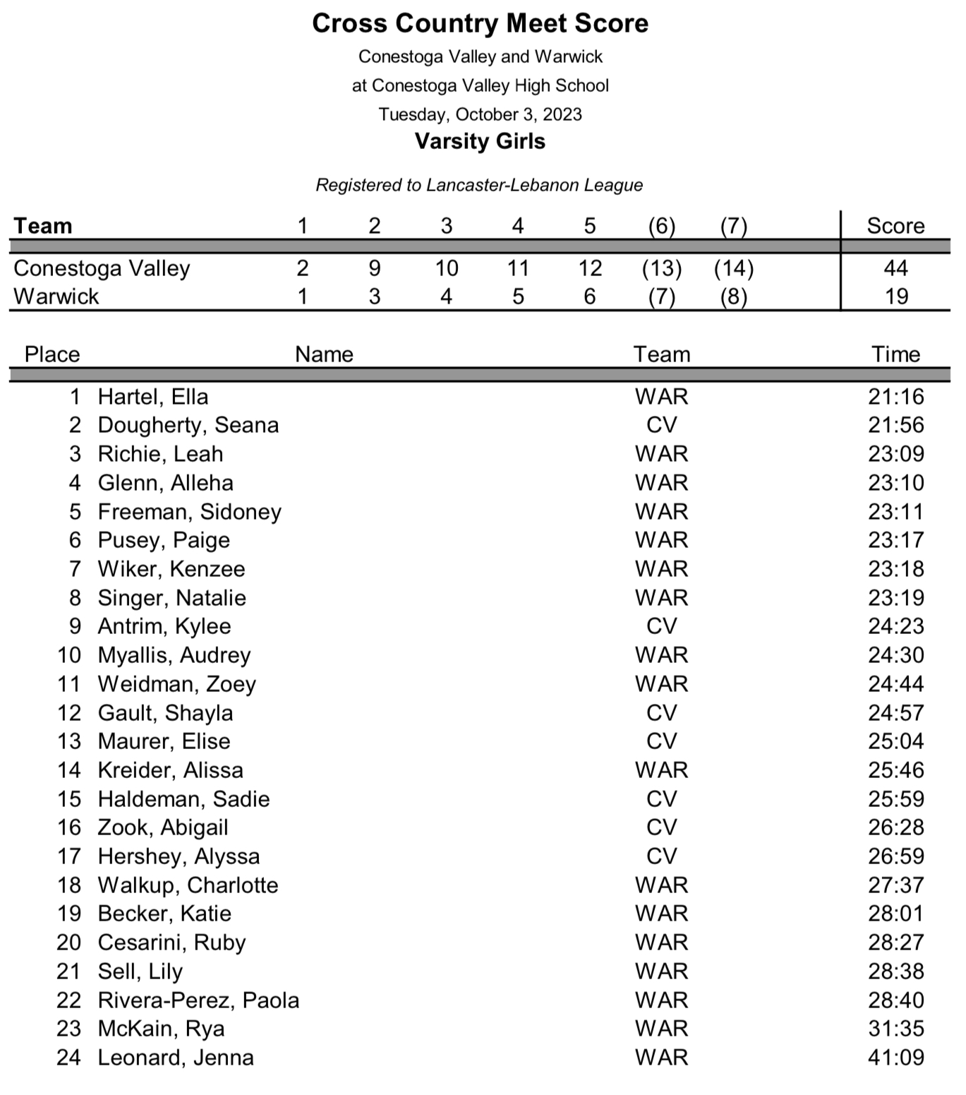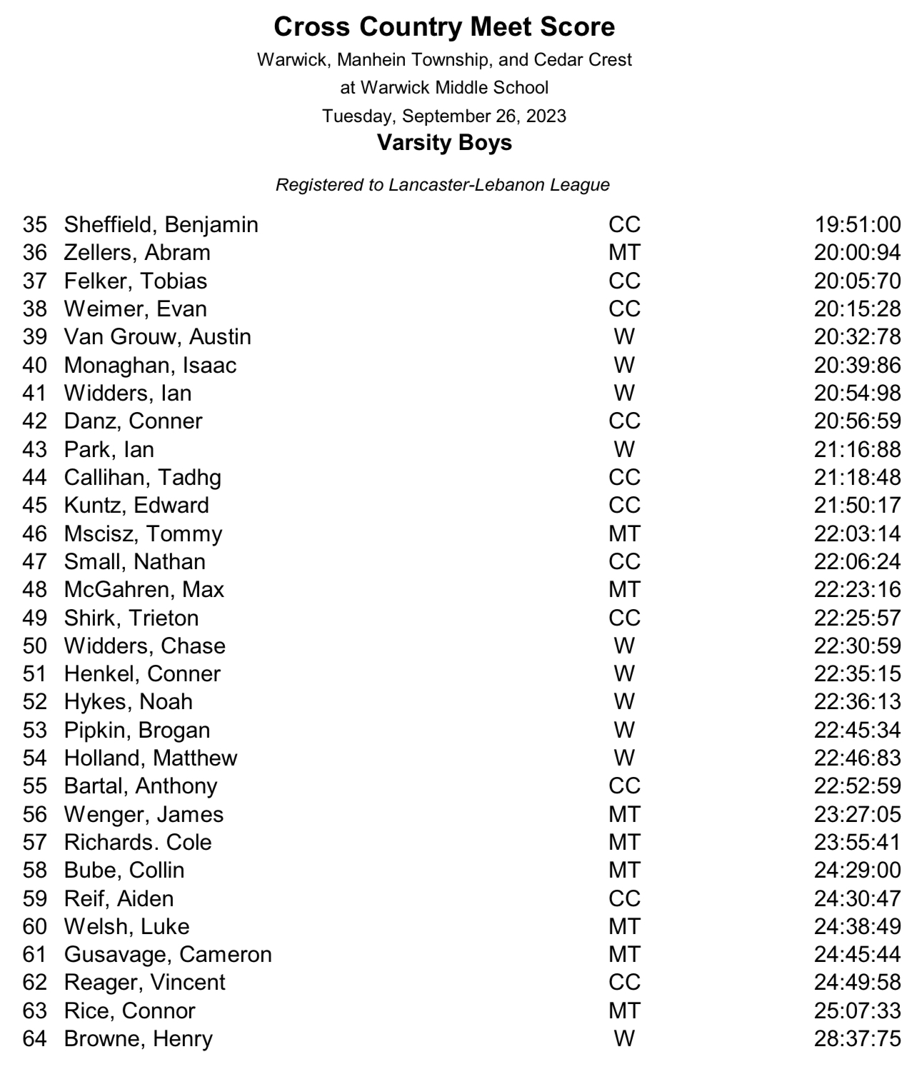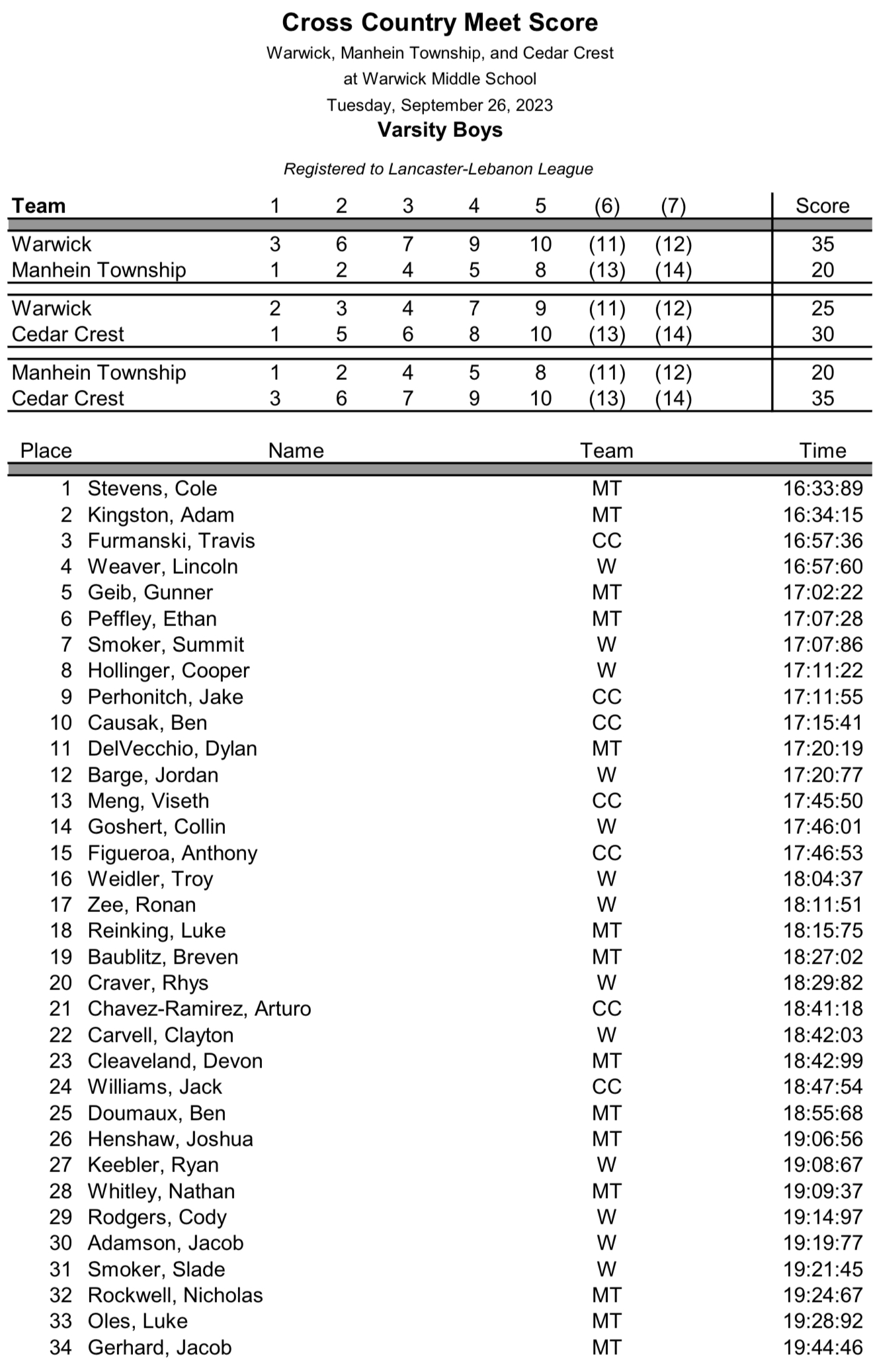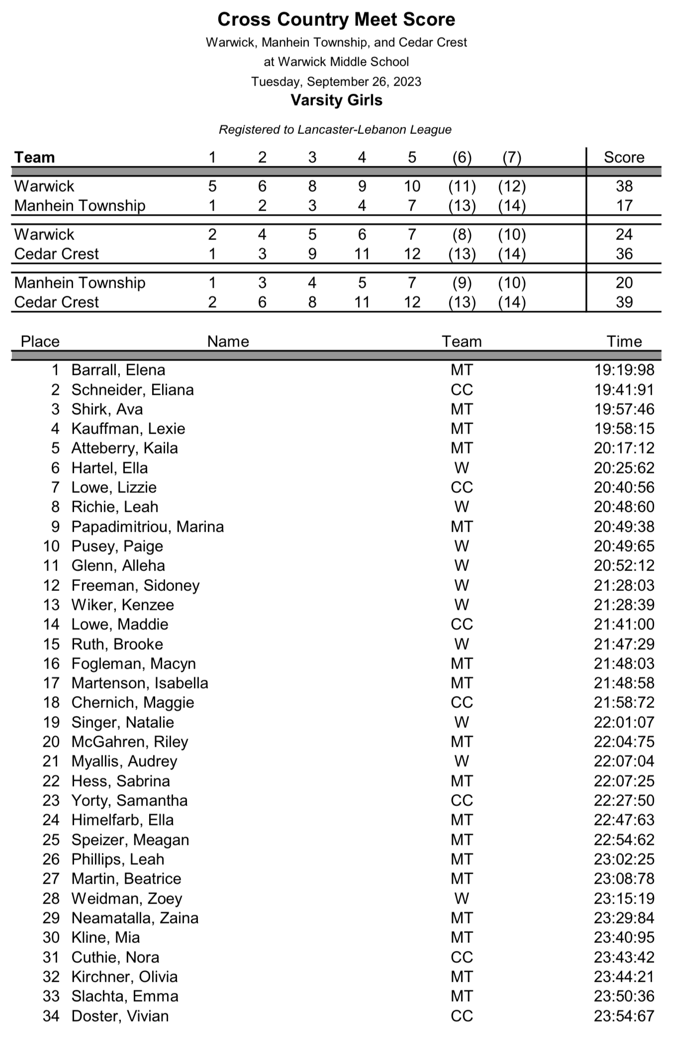 Cedar Crest and Manheim Township @ Warwick – Girls 1 Girls 2 Boys 1 Boys 2