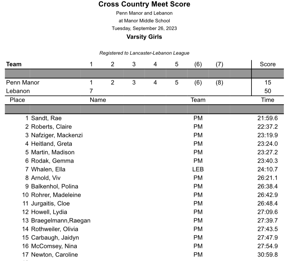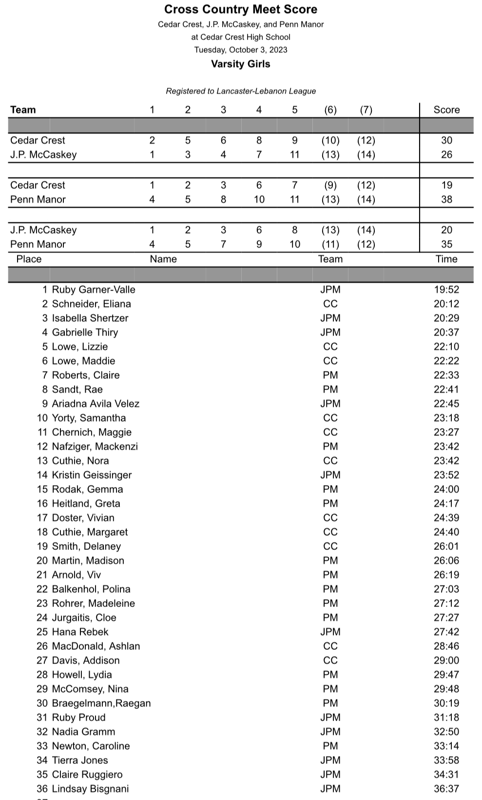 JP McCaskey and Penn Manor @ Cedar Crest – Girls Boys