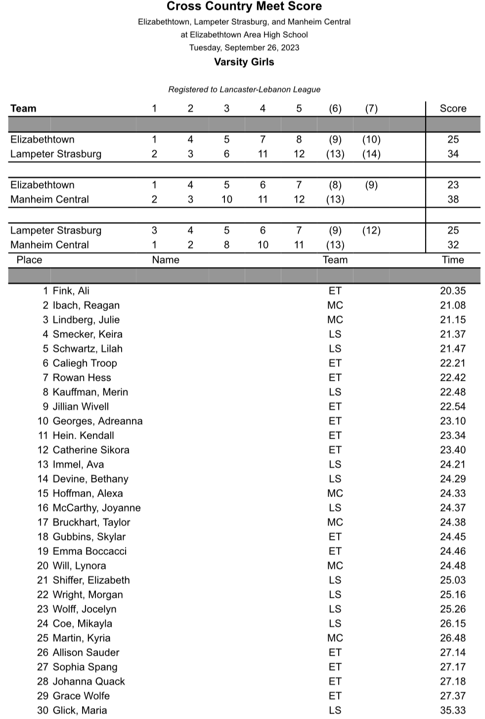 Lampeter Strasburg and Manheim Central @ Elizabethtown – Girls Boys