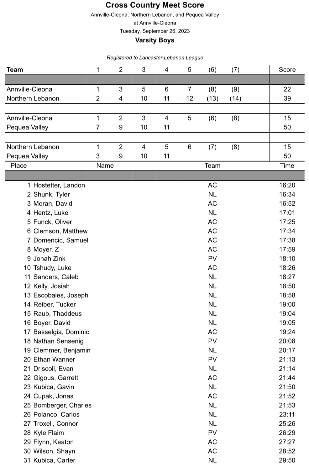 Northern Lebanon and Pequea Valley @ Annville-Cleona – Girls Boys