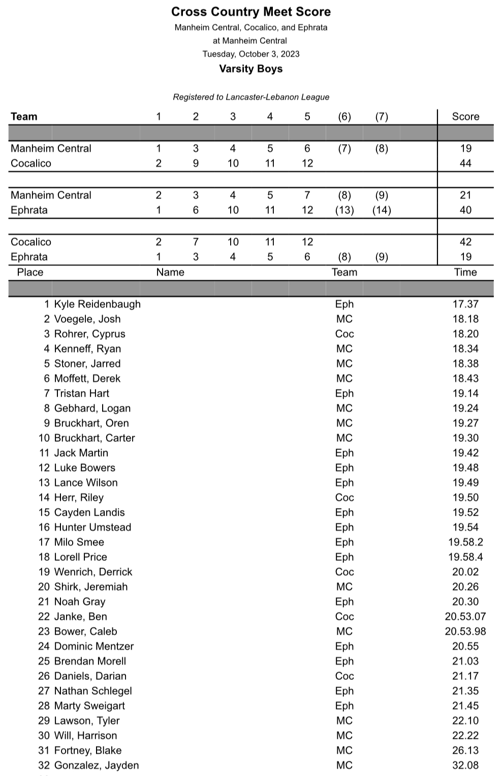 Cocalico and Ephrata @ Manheim Central – Girls Boys