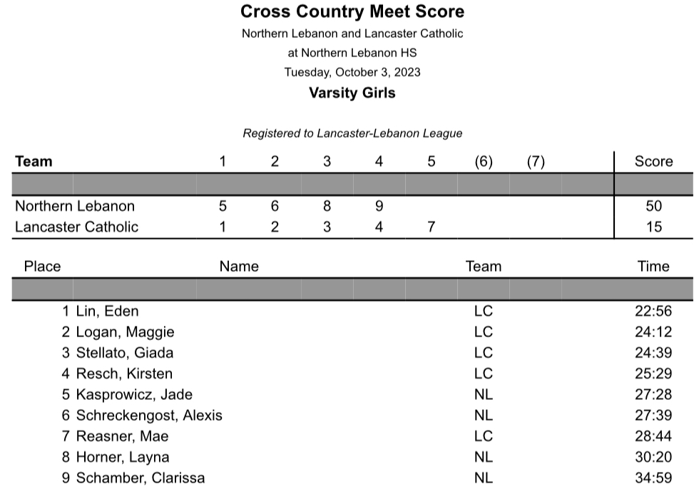 Lancaster Catholic @ Northern Lebanon – Girls Boys