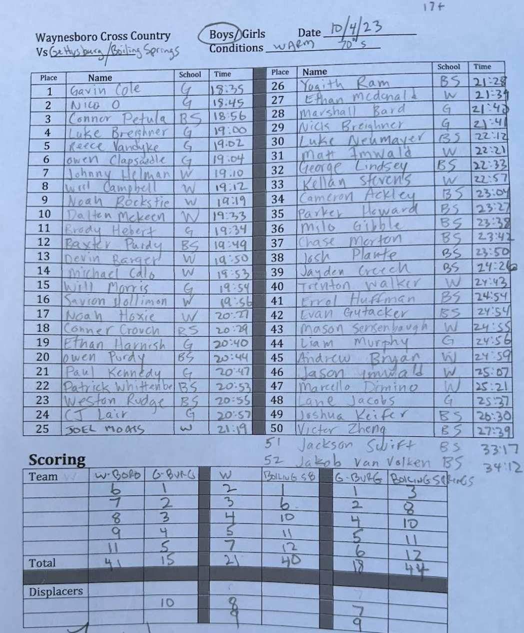 Waynesboro @ Big Spring – Girls Boys Girls Team Boys Team