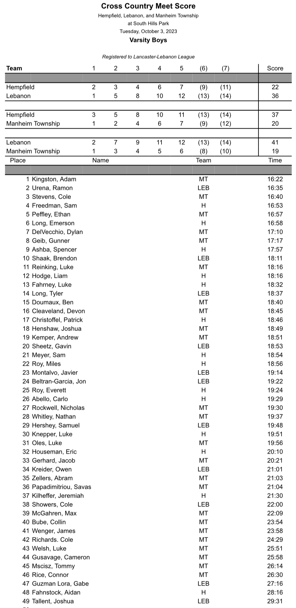 Hempfield and Manheim Township @ Lebanon – Girls Boys