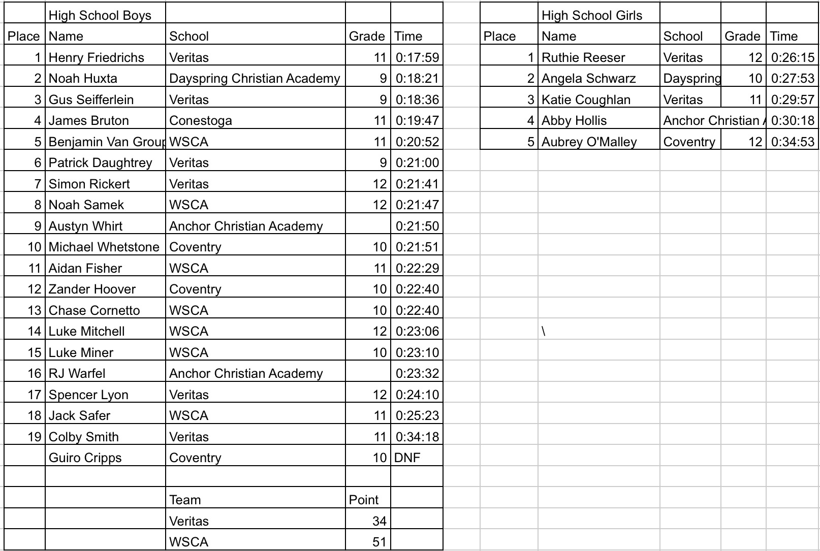 Anchor Christian, Conestoga Christian, Dayspring Christian, Veritas Academy, and West Shore Christian @ Coventry Christian – Results