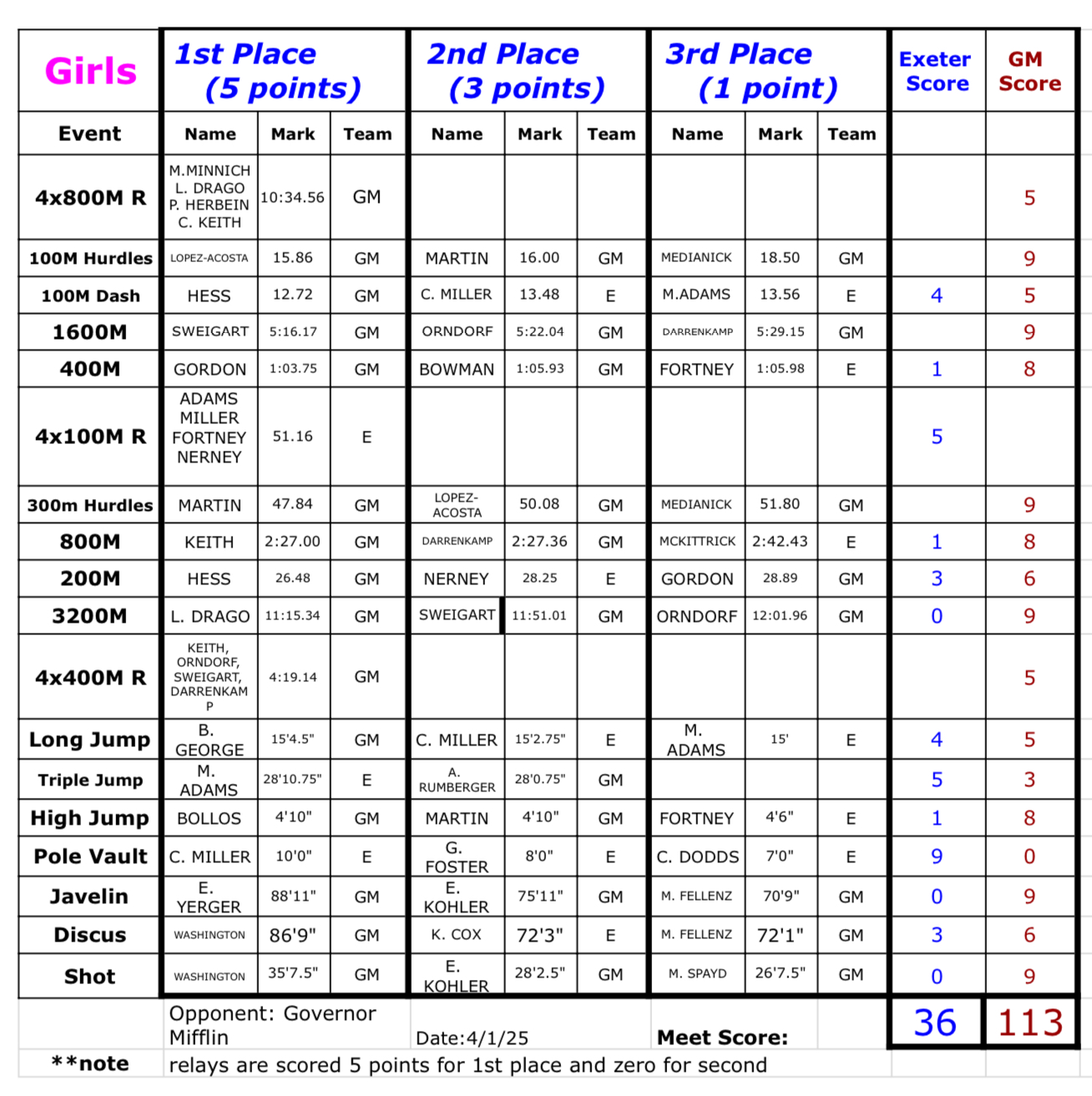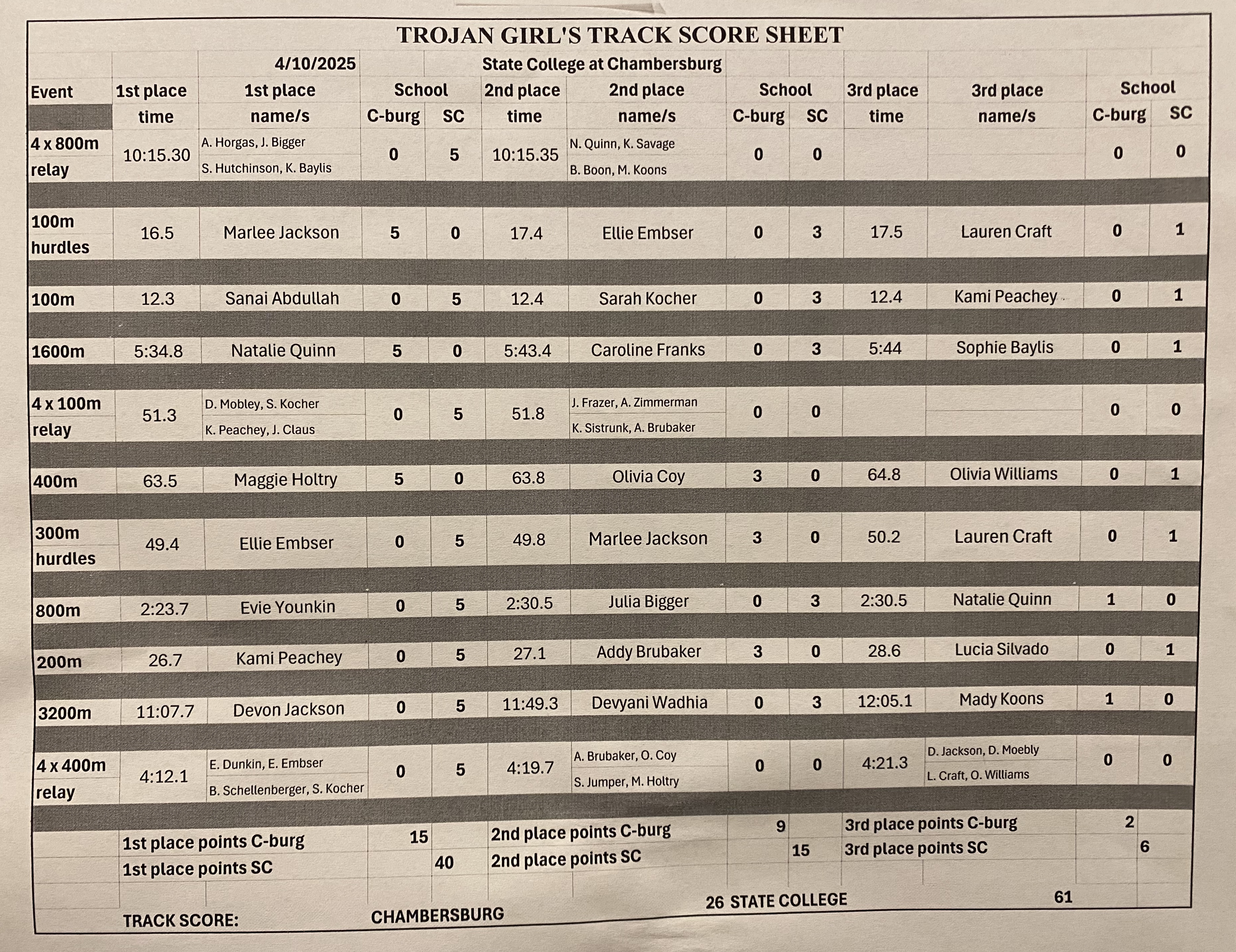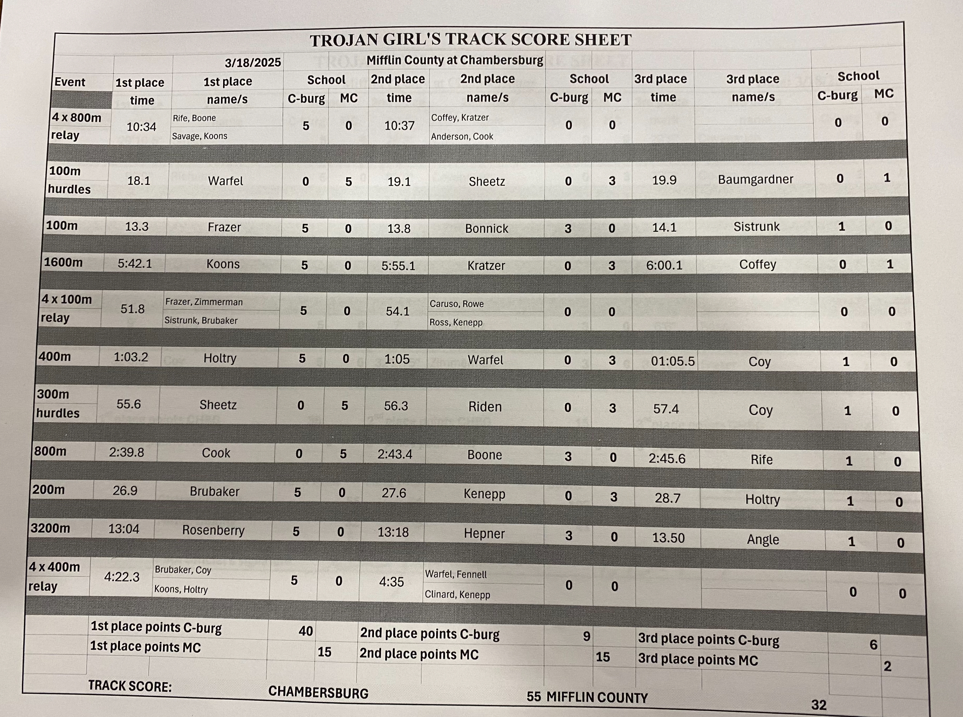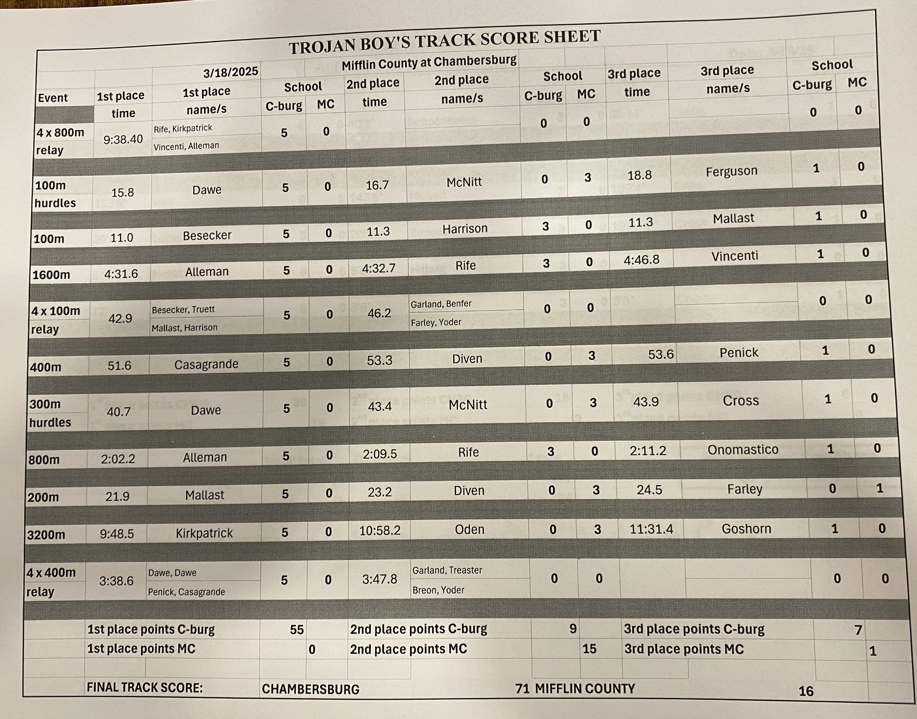 Mifflin County @ Chambersburg – Girls Track Girls Field Boys Track Boys Field