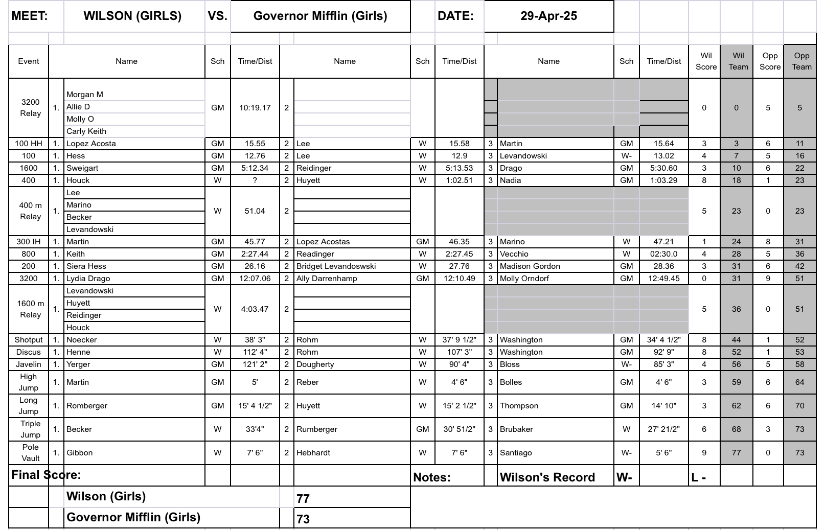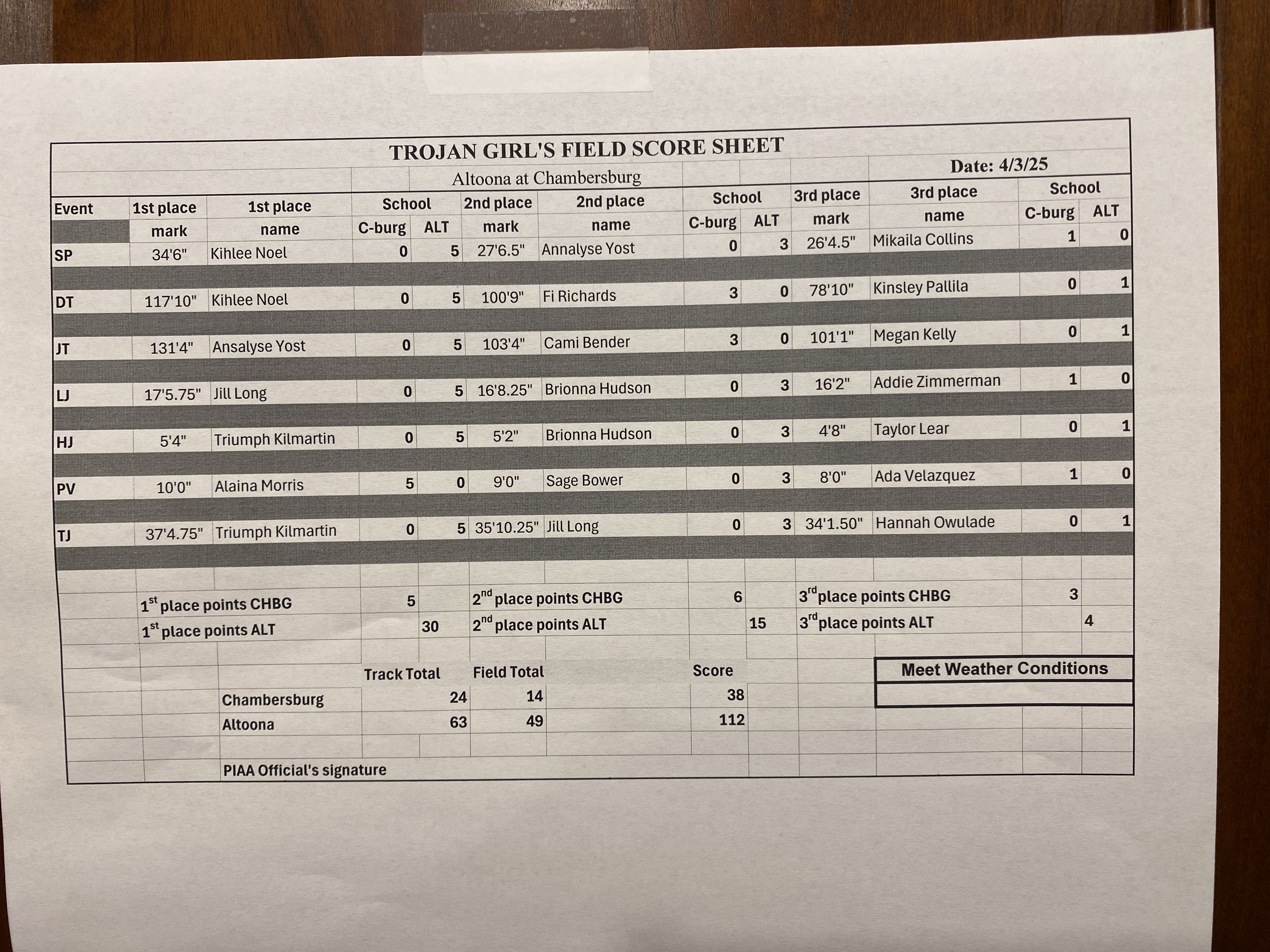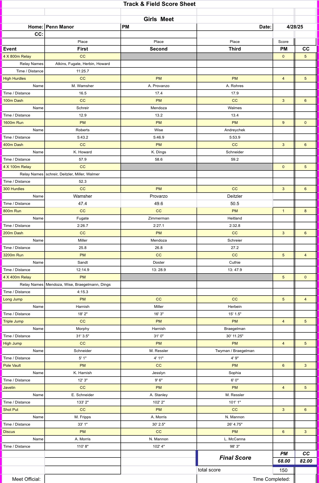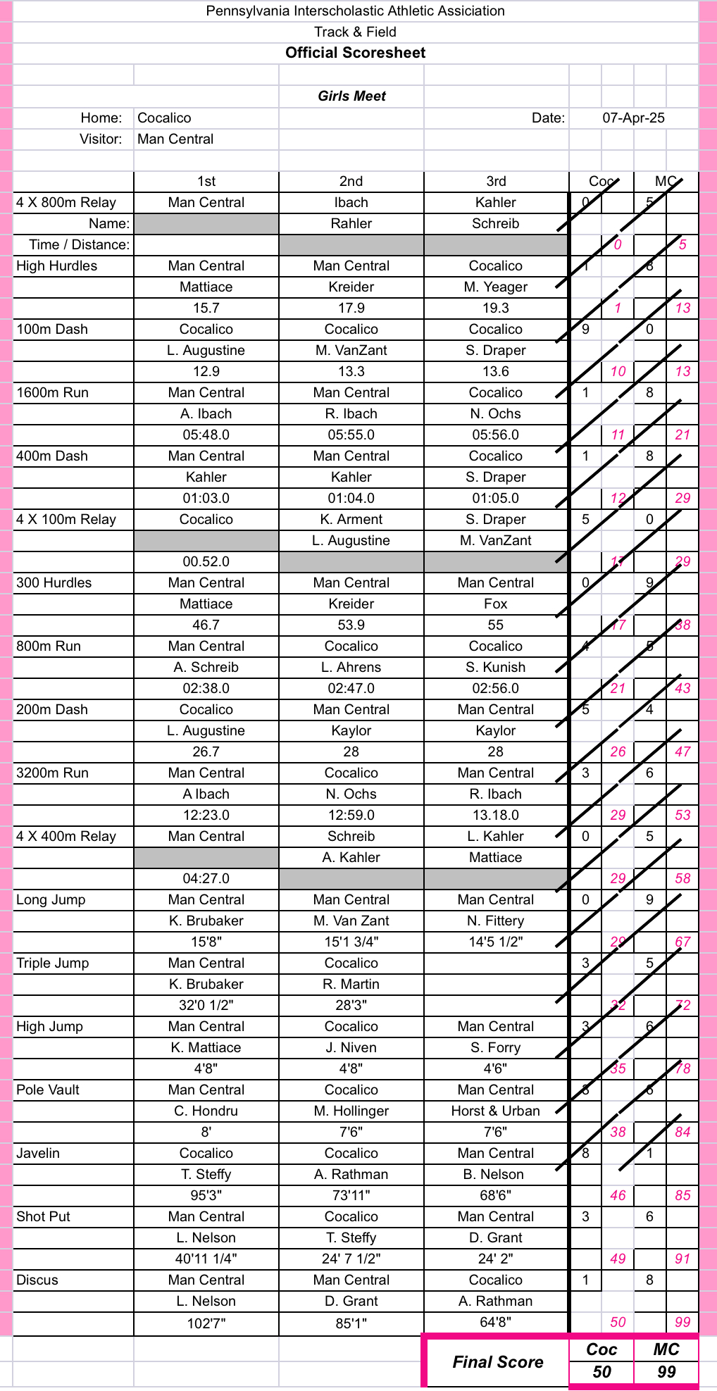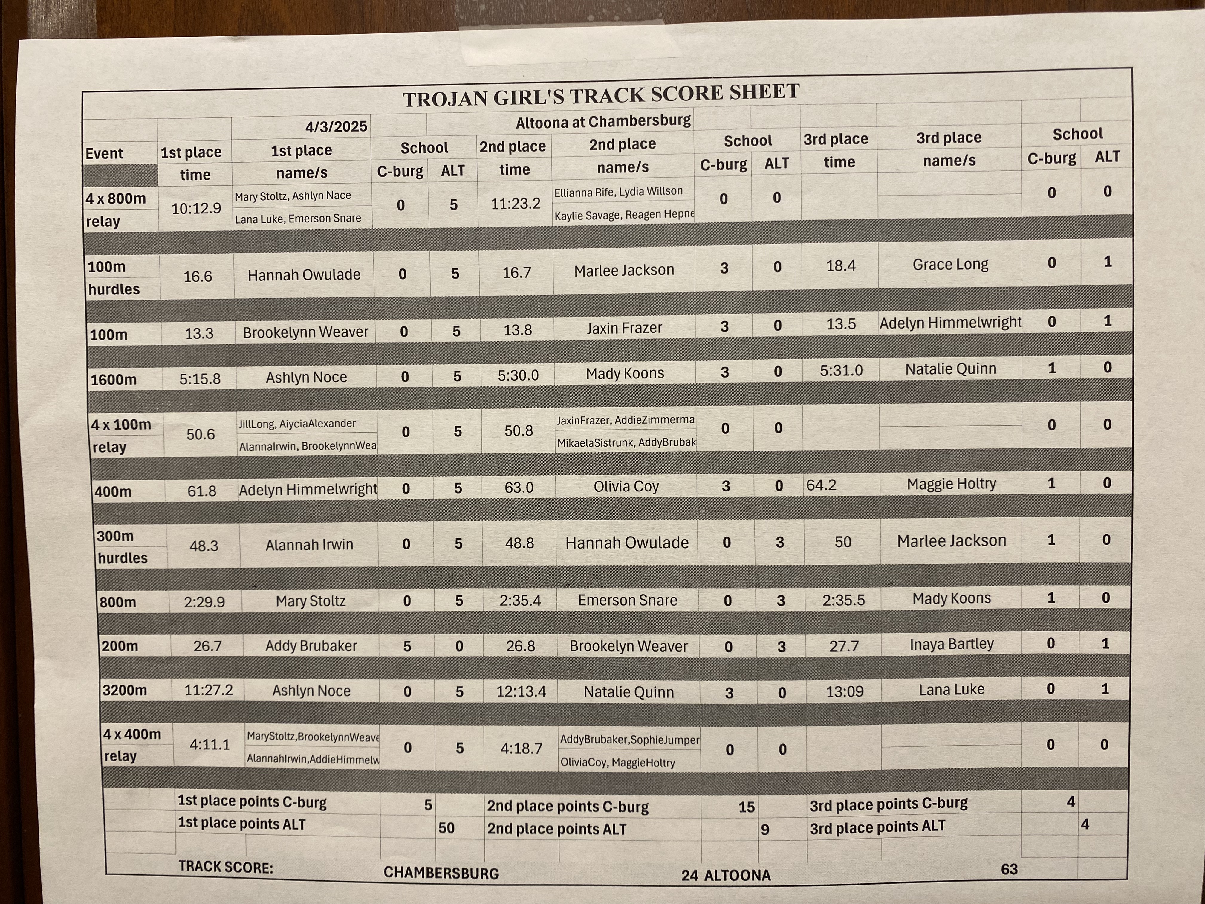 Mifflin County @ Chambersburg – Girls Track Girls Field Boys Track Boys Field
