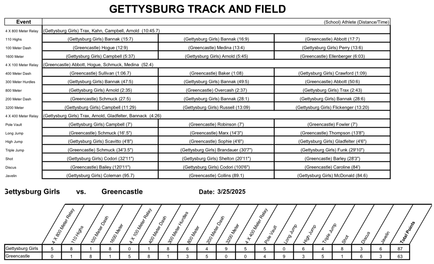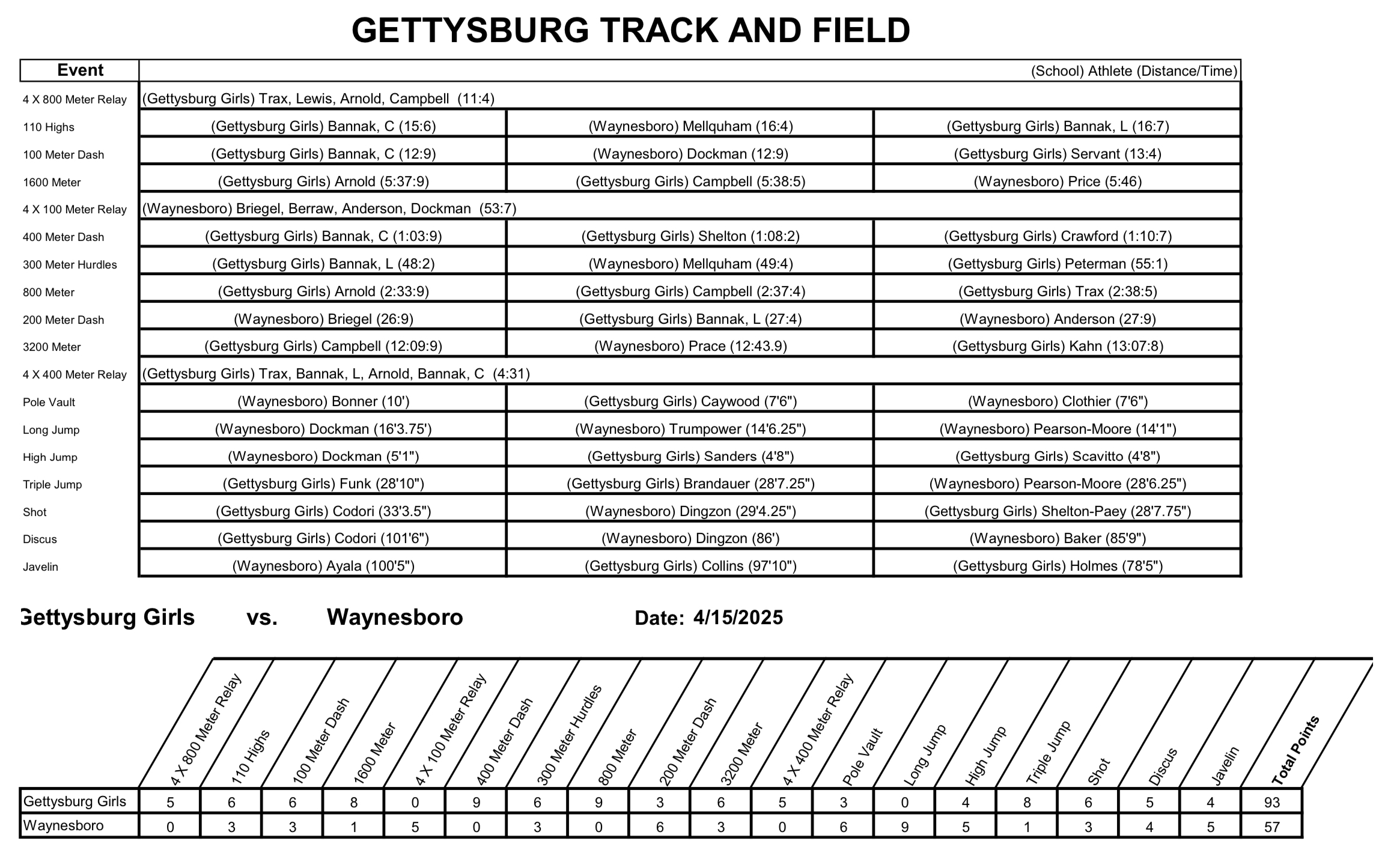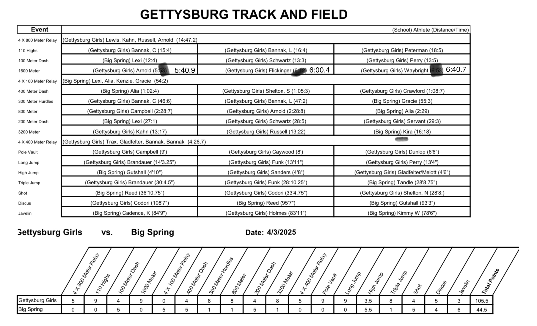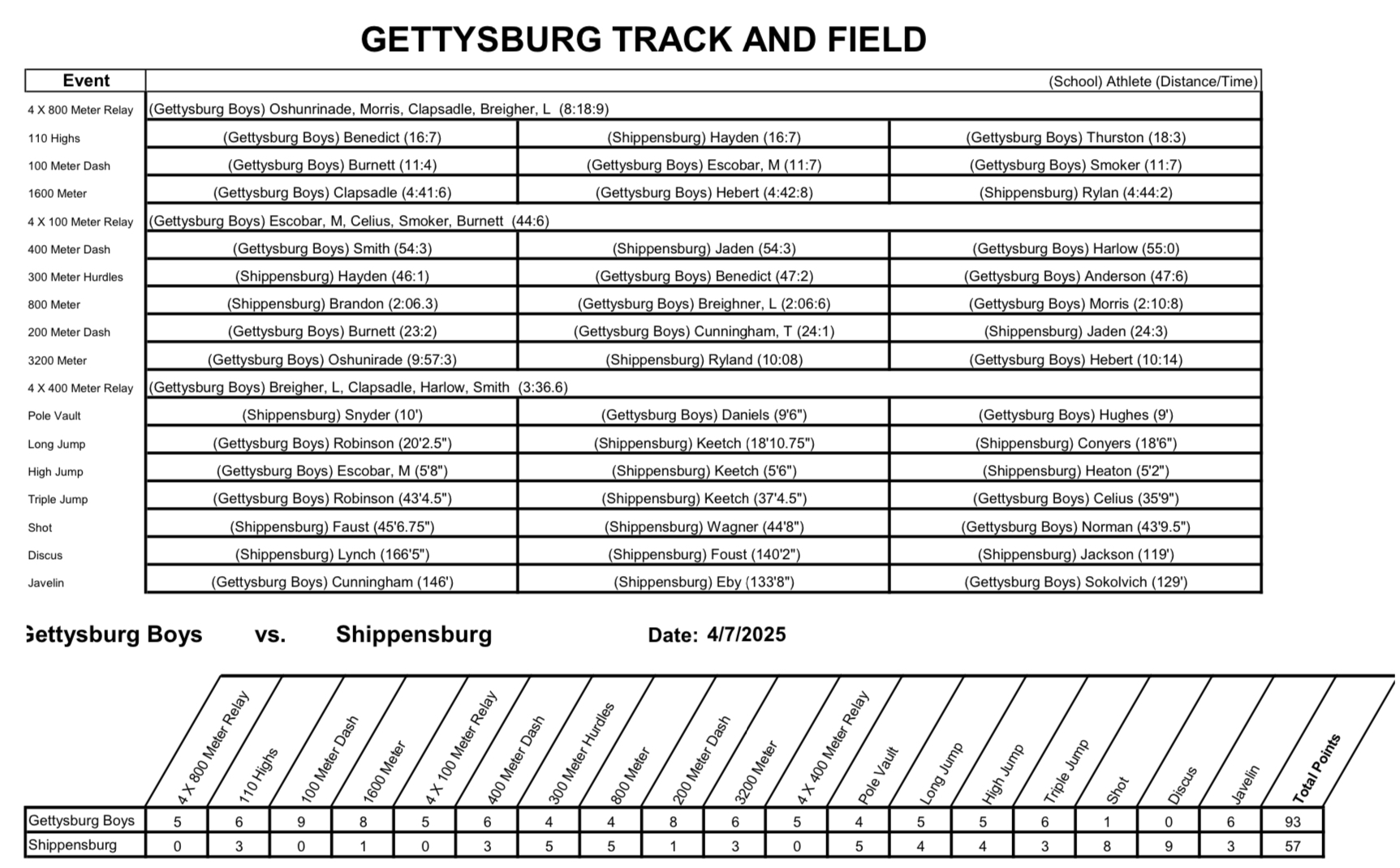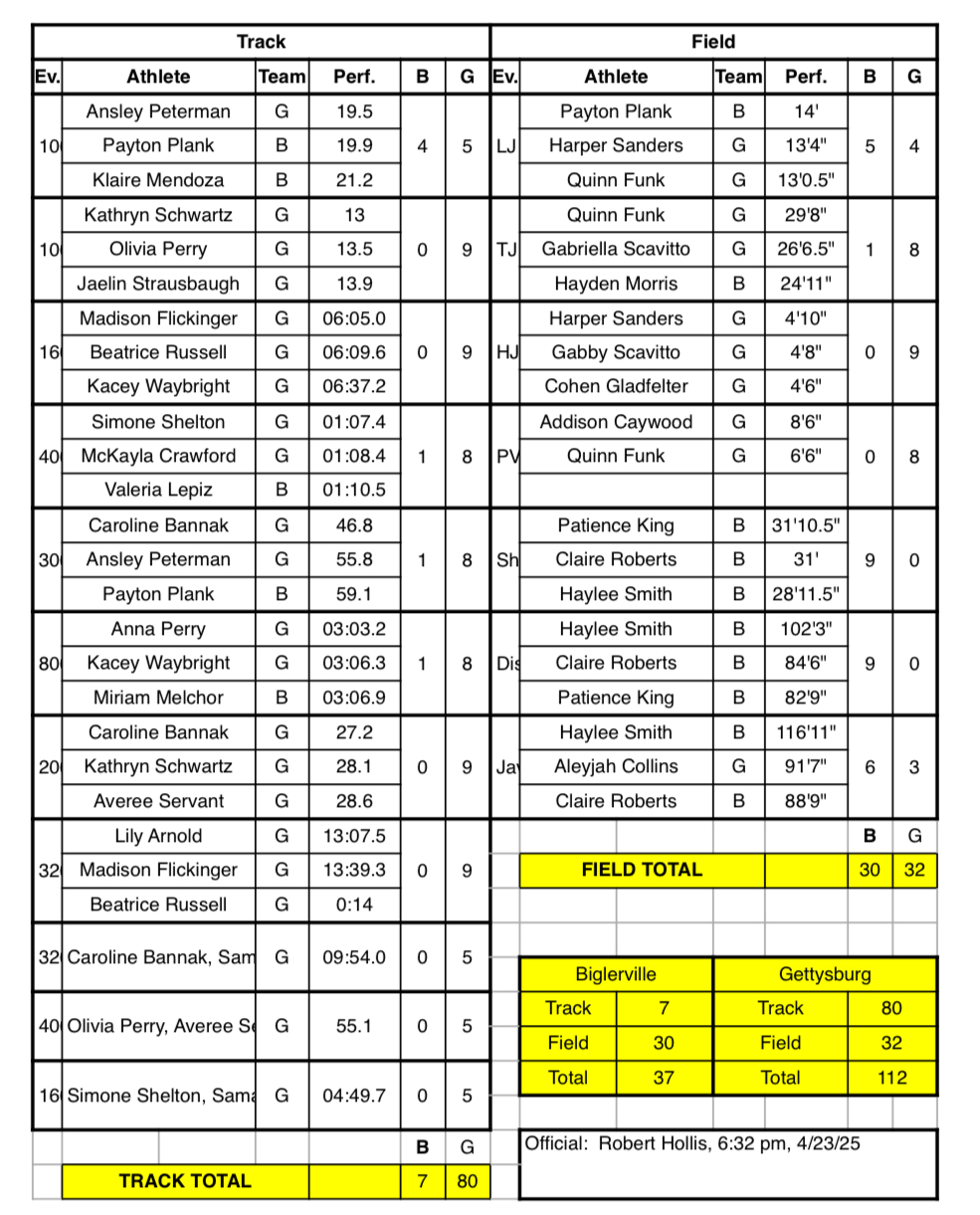 Gettysburg @ James Buchanan – Girls Track Girls Field Boys Track Boys Field