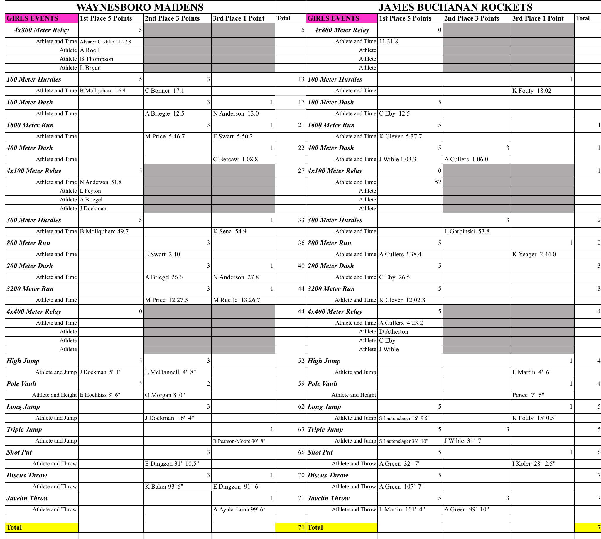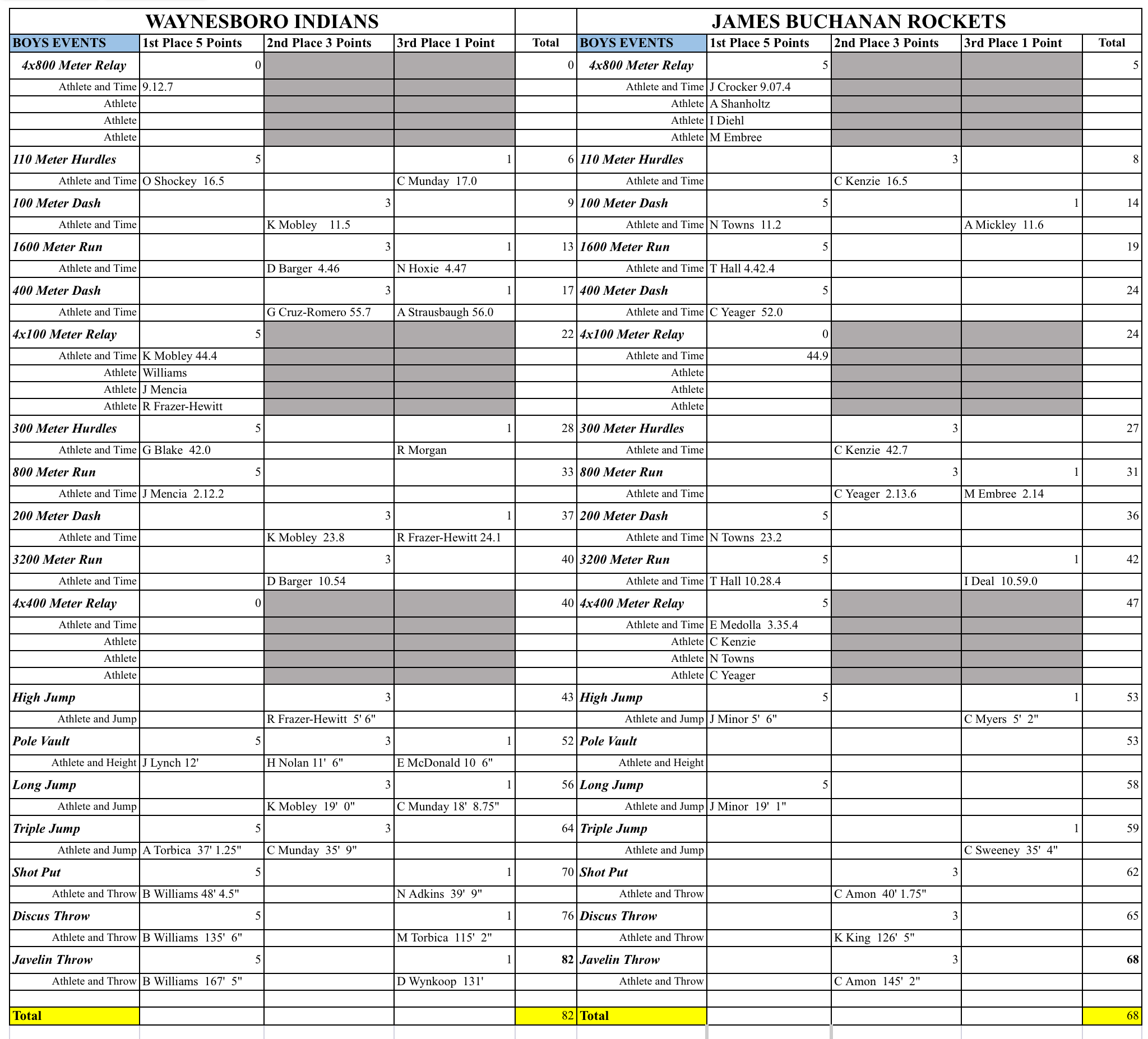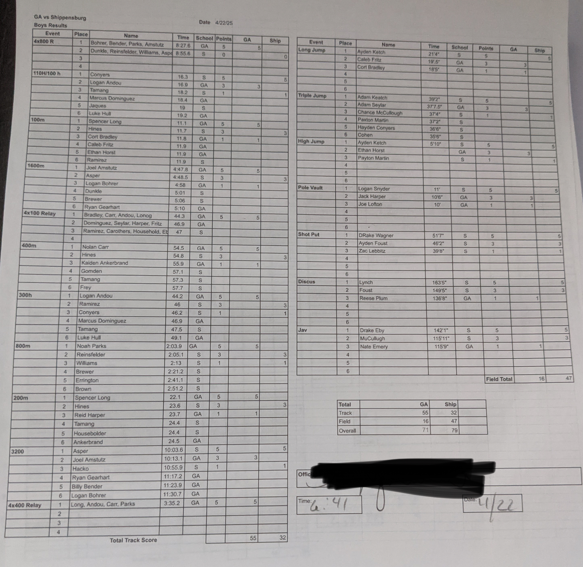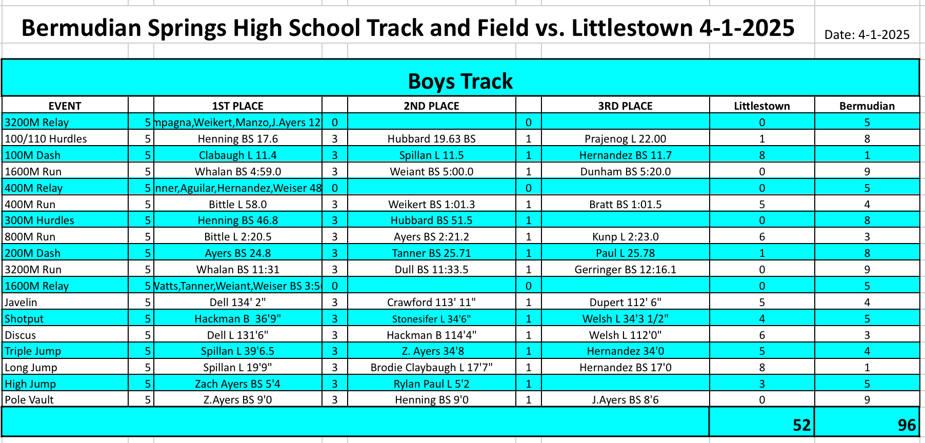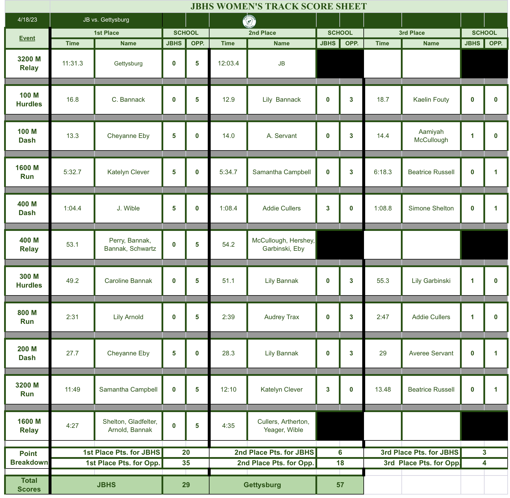 Gettysburg @ James Buchanan – Girls Track Girls Field Boys Track Boys Field