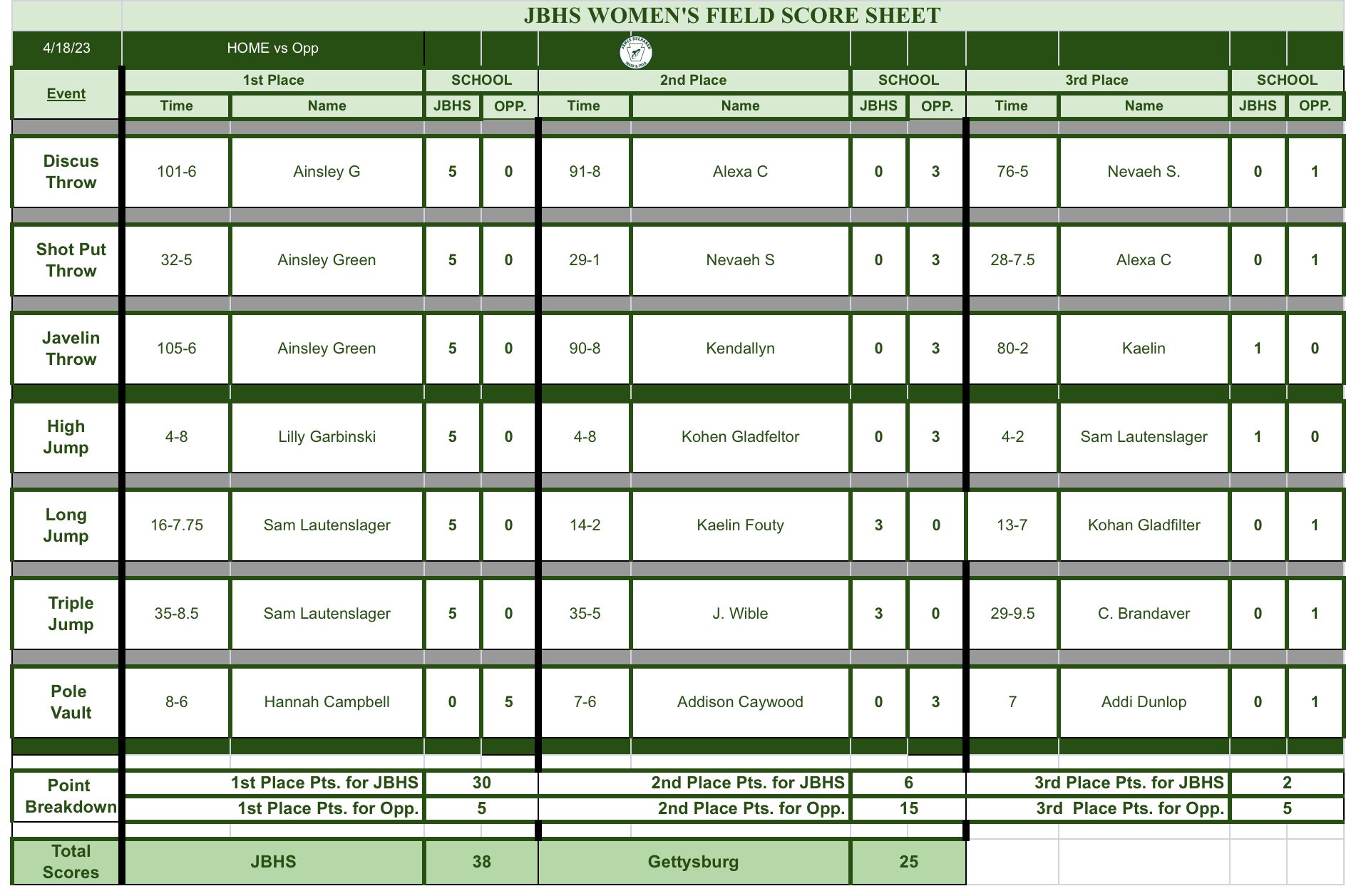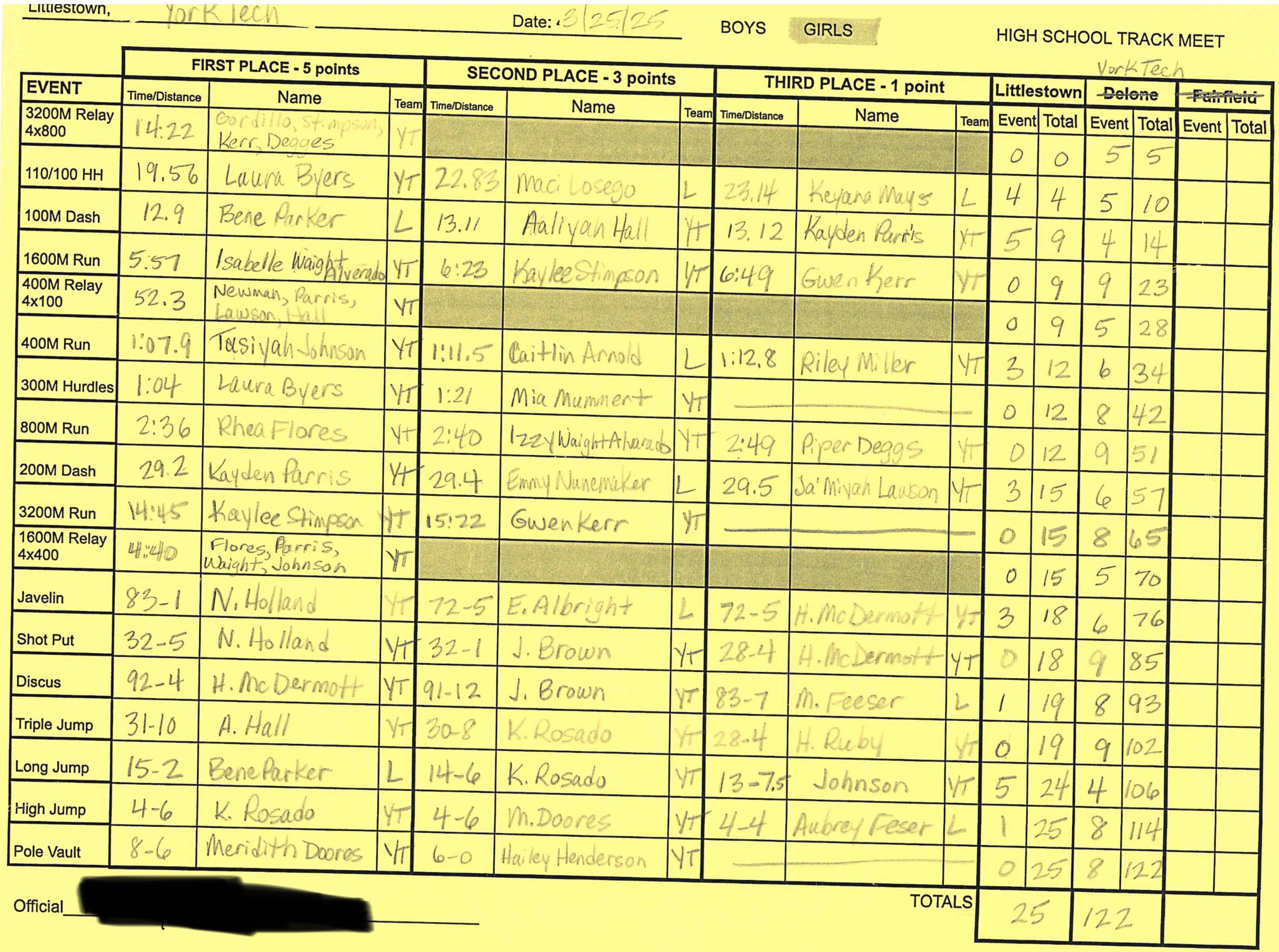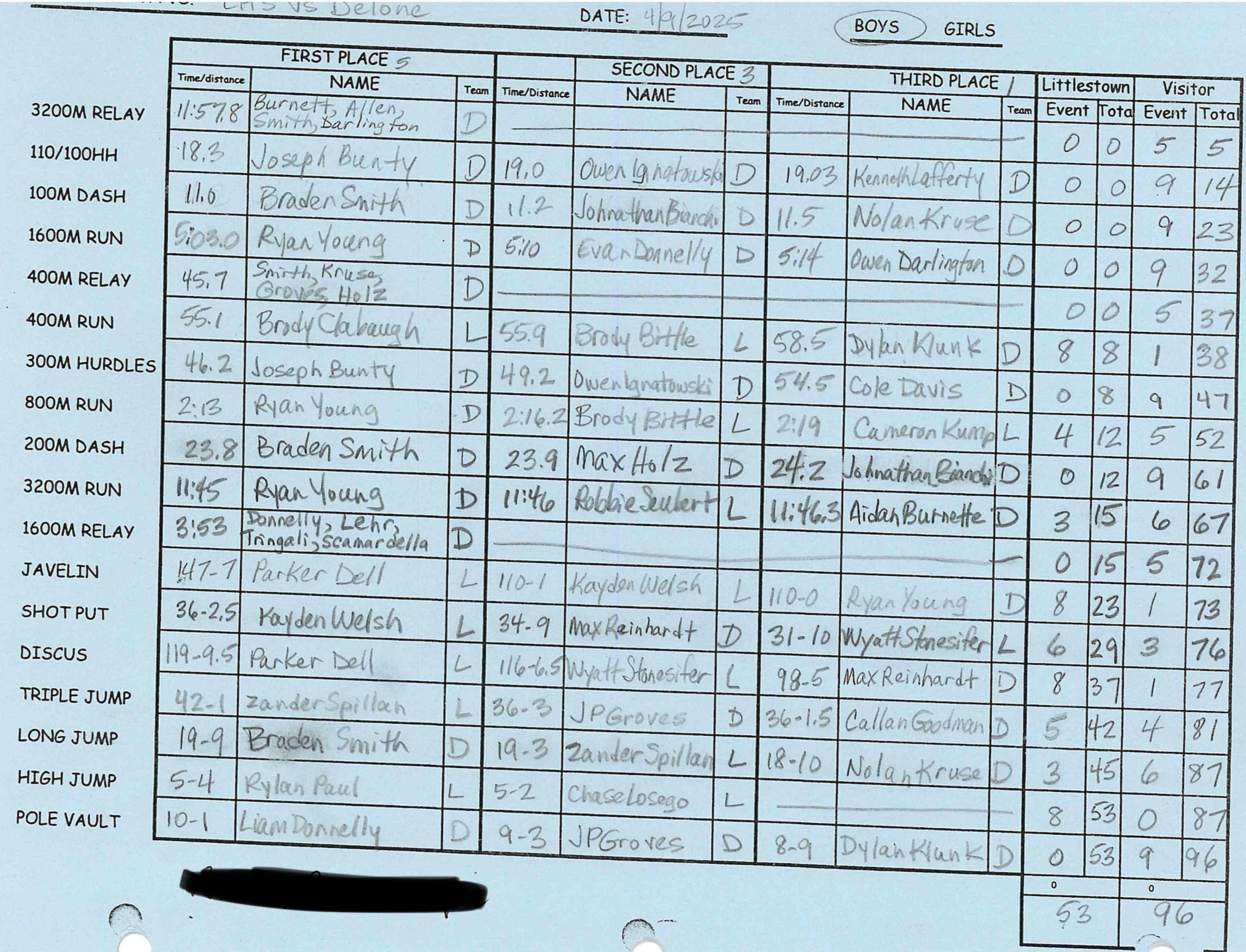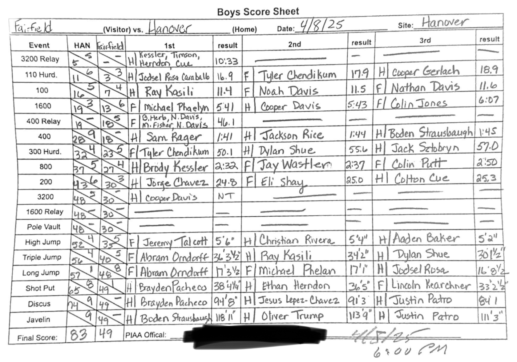 Gettysburg @ James Buchanan – Girls Track Girls Field Boys Track Boys Field