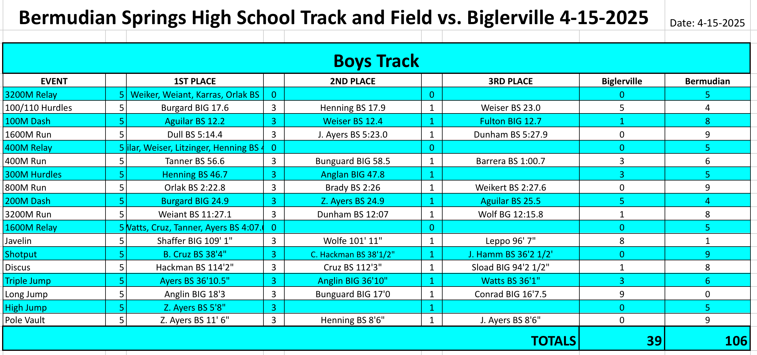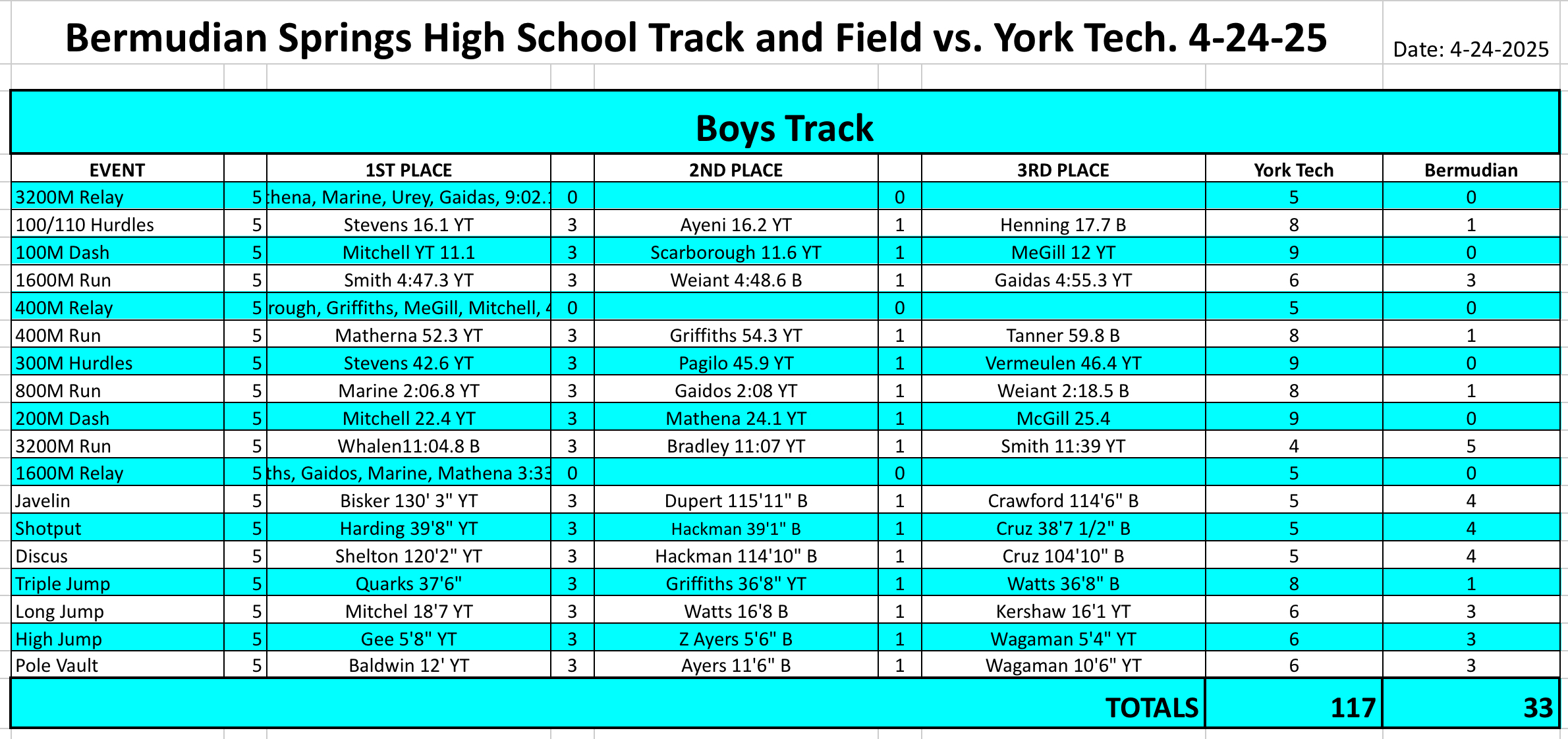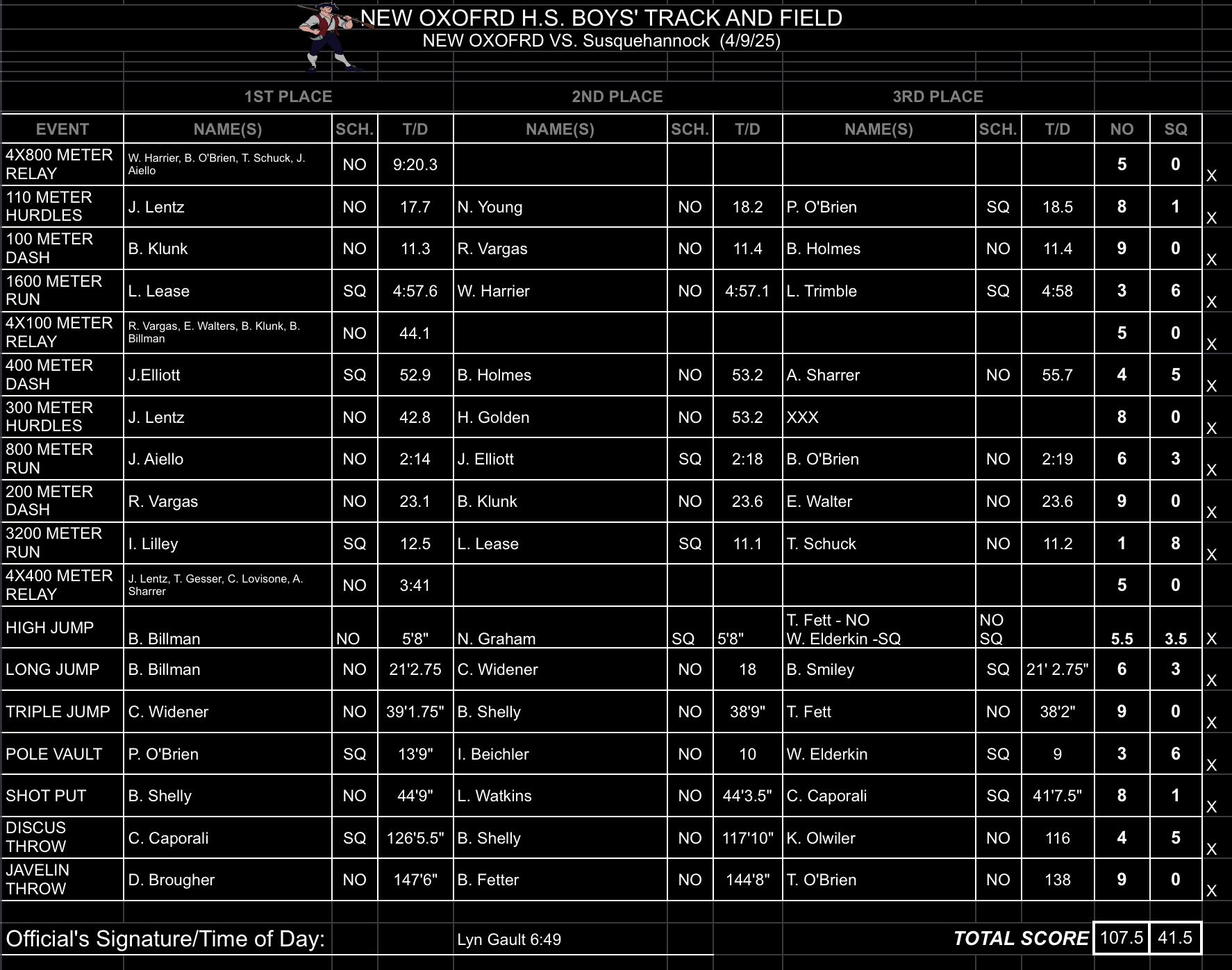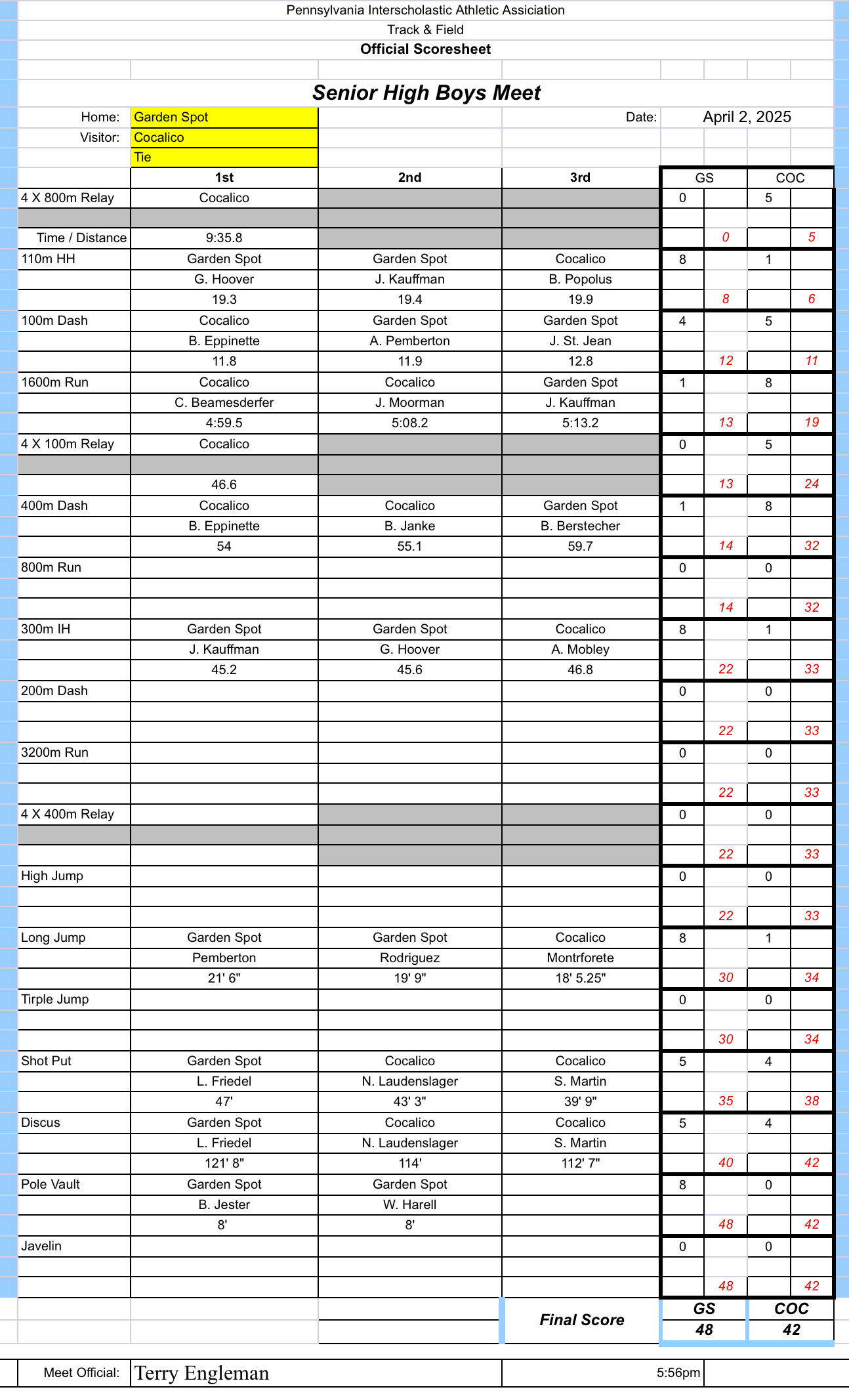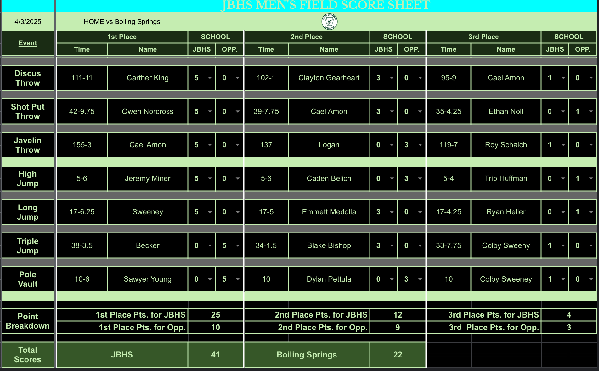 Gettysburg @ James Buchanan – Girls Track Girls Field Boys Track Boys Field