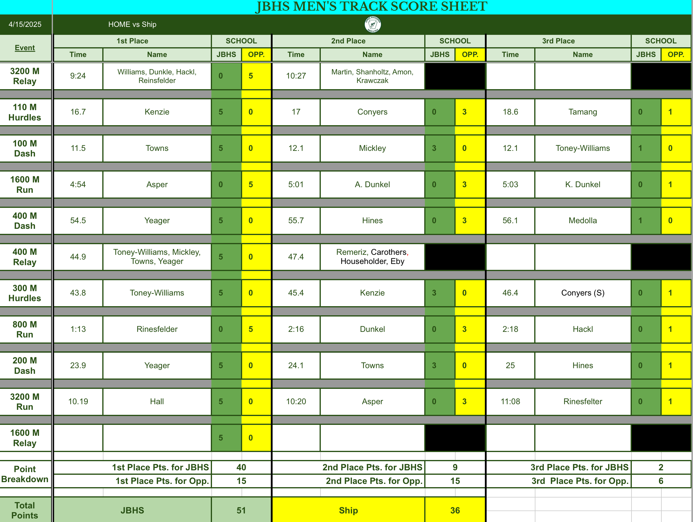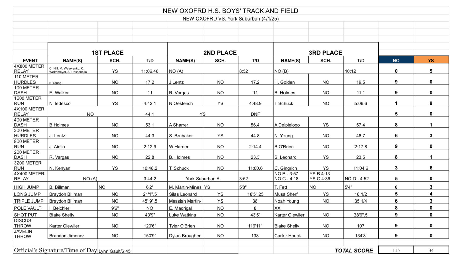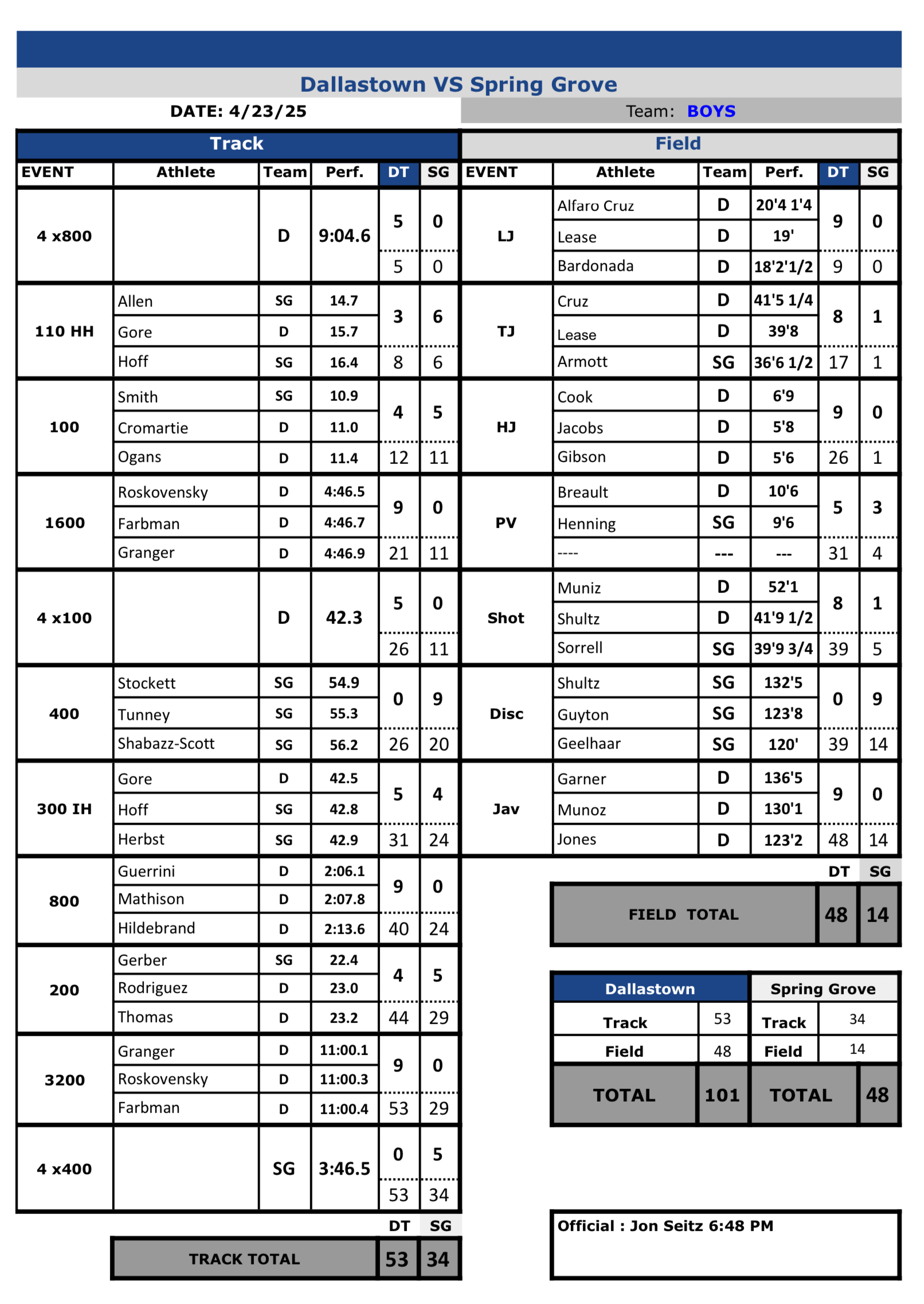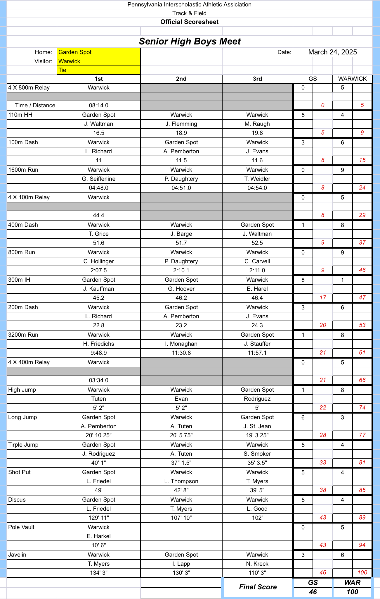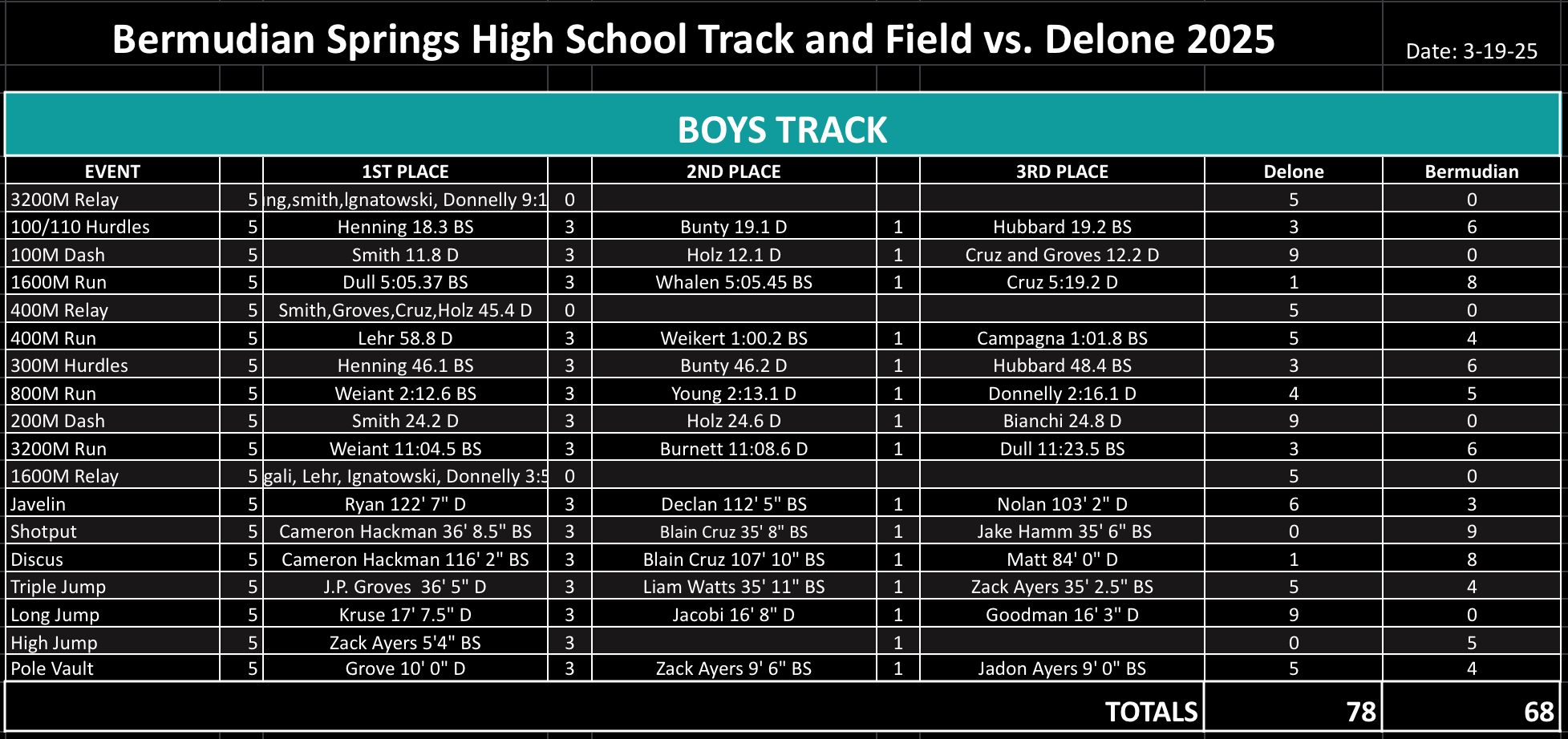 Gettysburg @ James Buchanan – Girls Track Girls Field Boys Track Boys Field