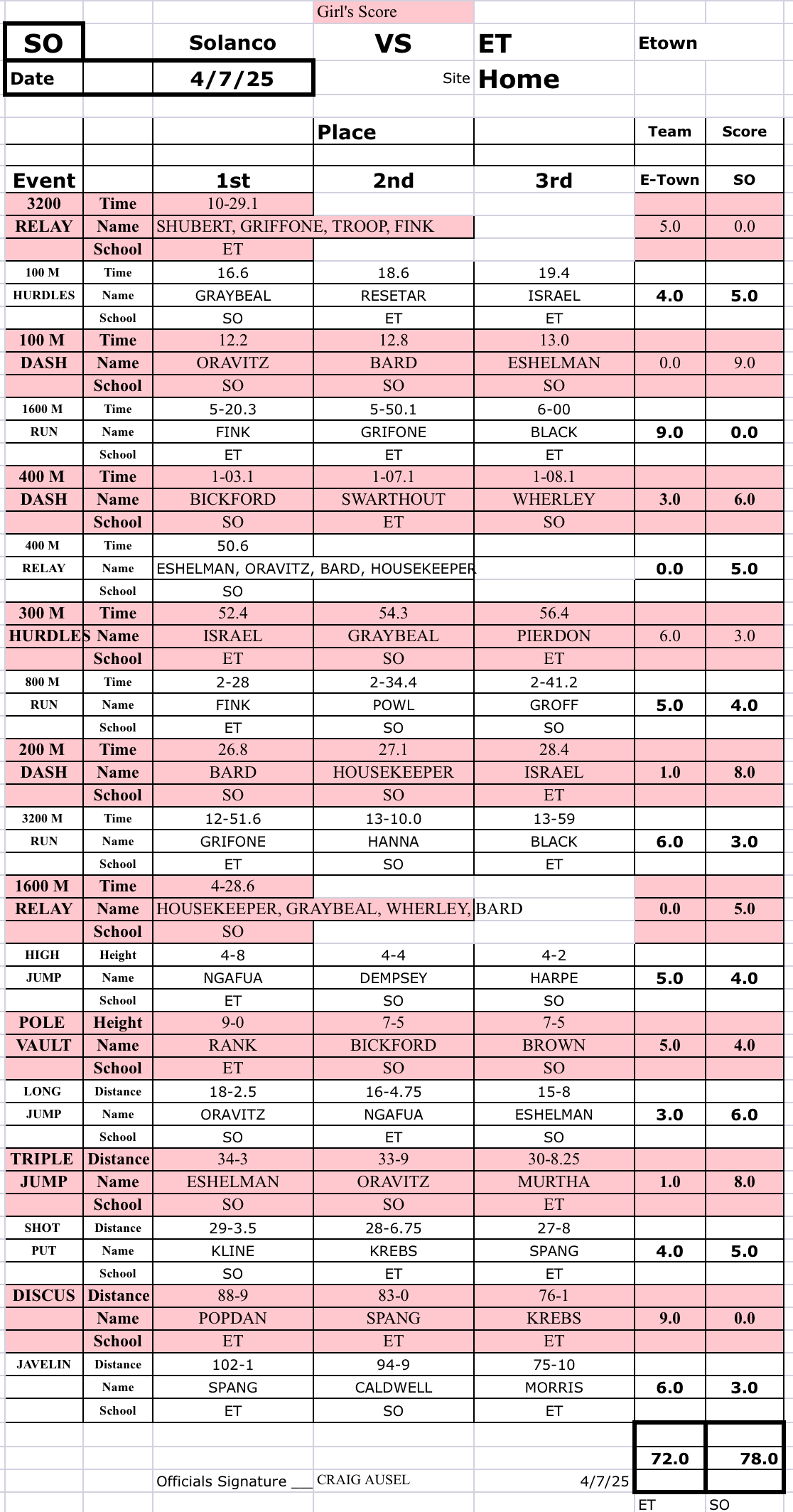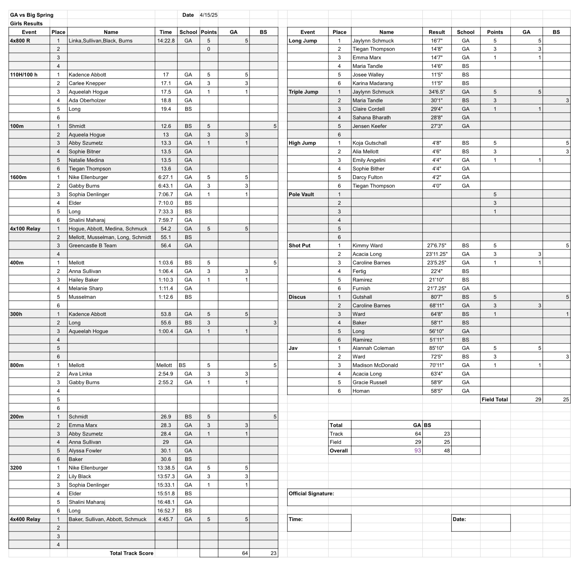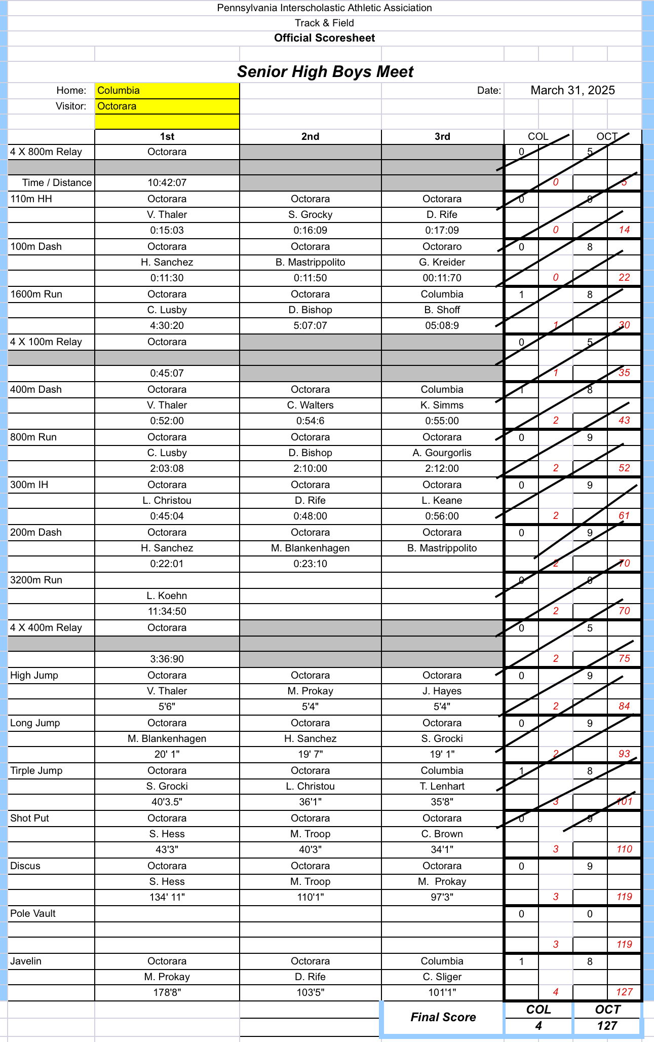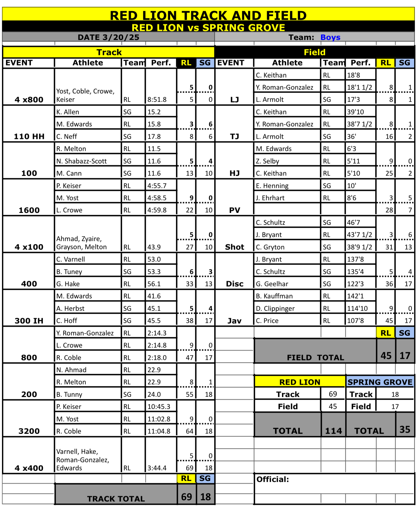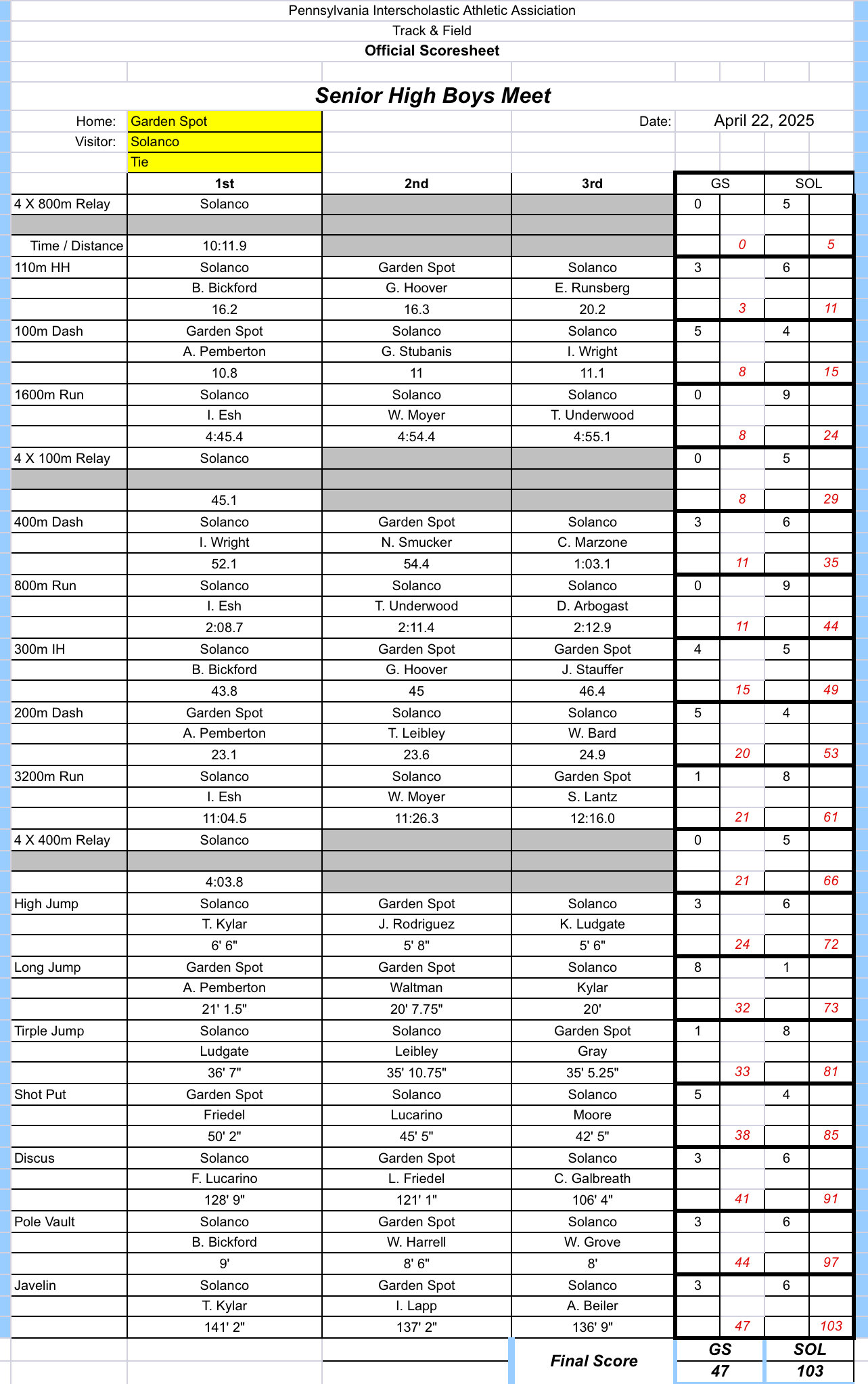 Gettysburg @ James Buchanan – Girls Track Girls Field Boys Track Boys Field