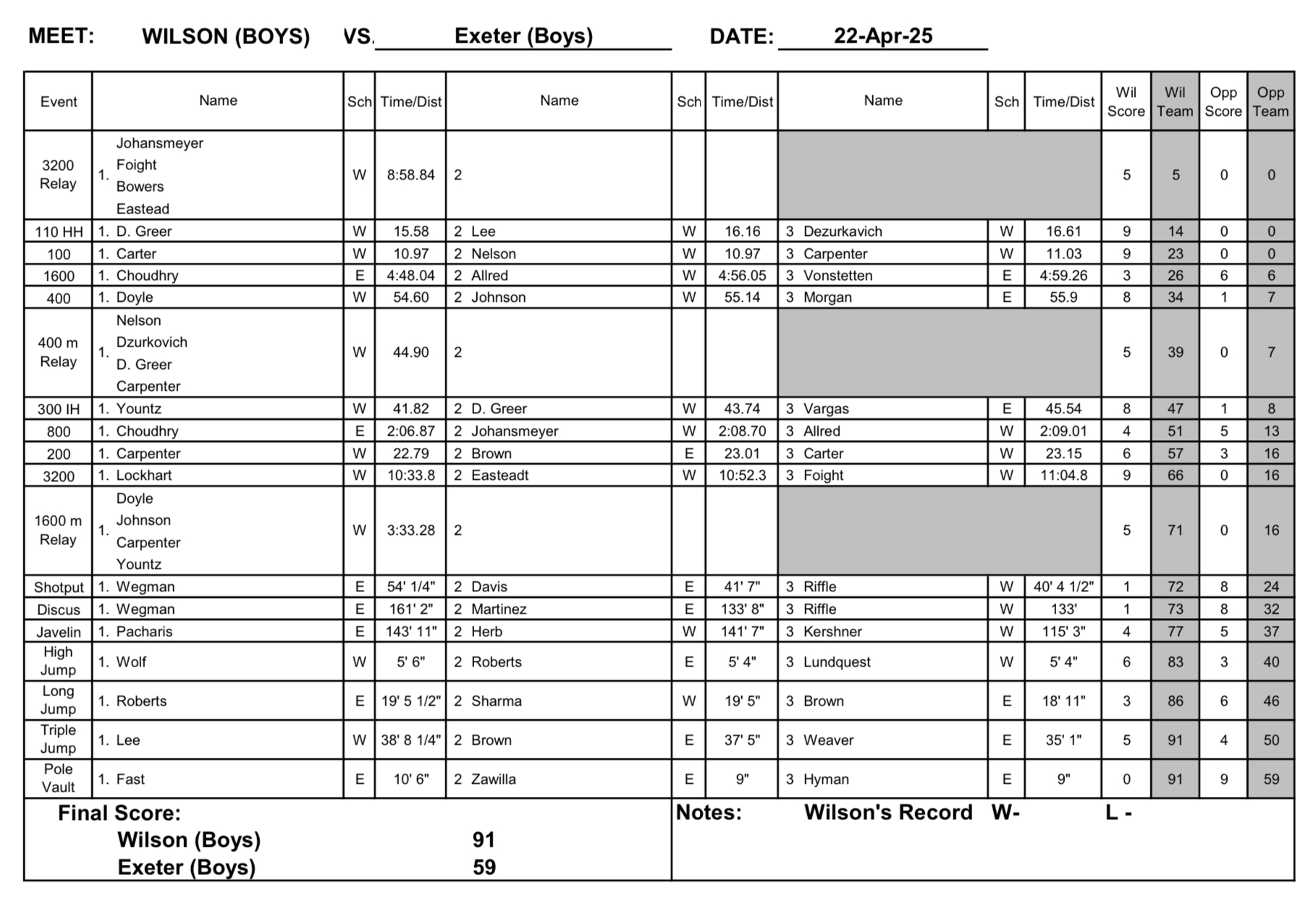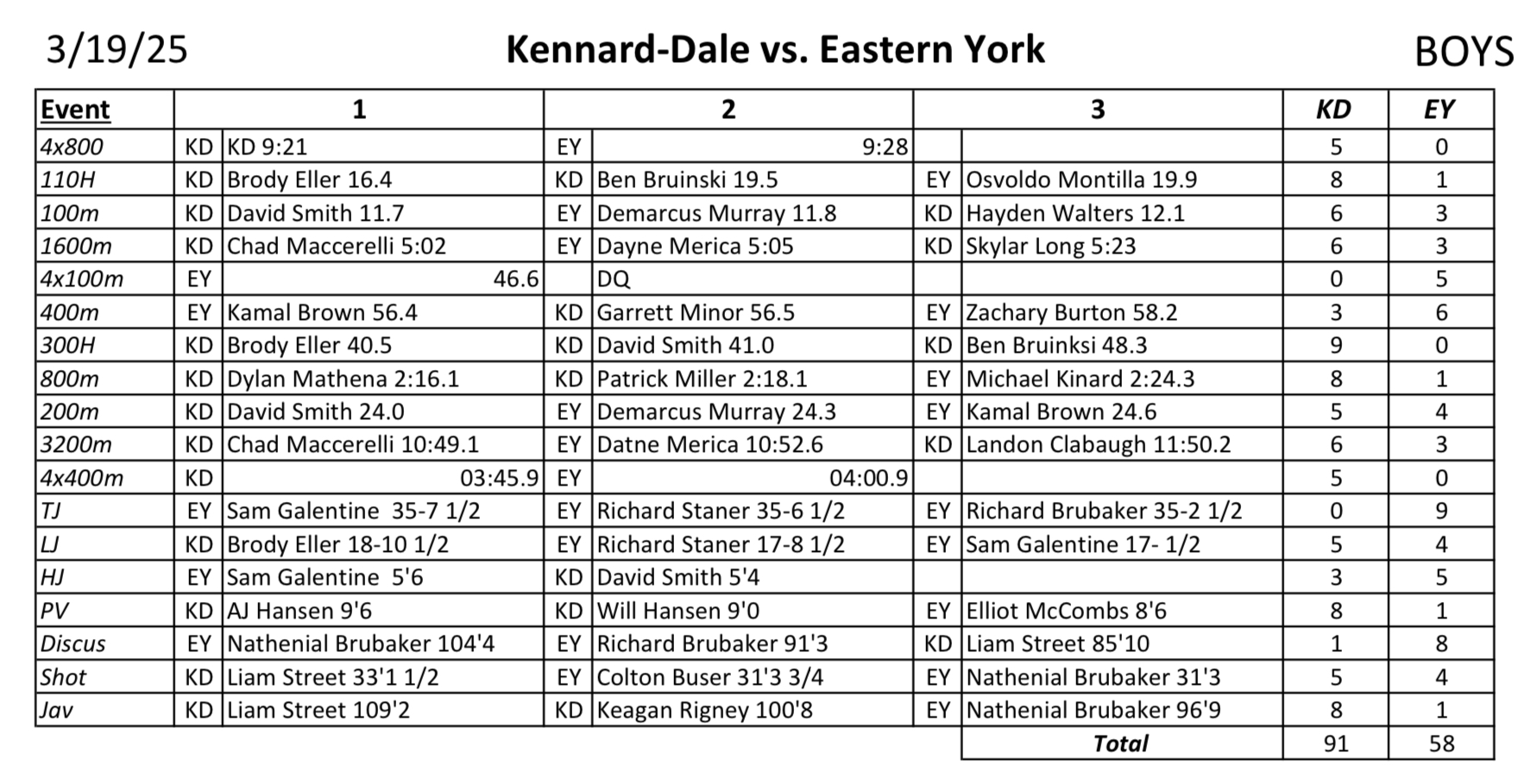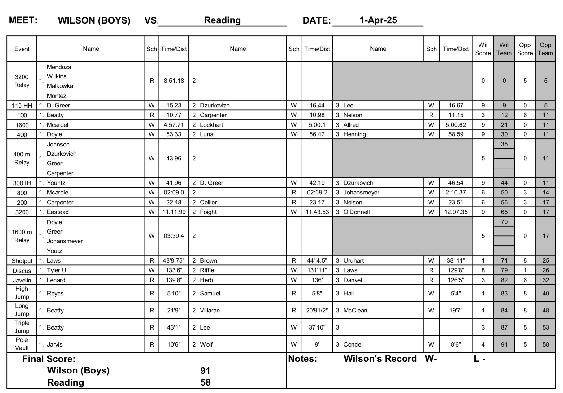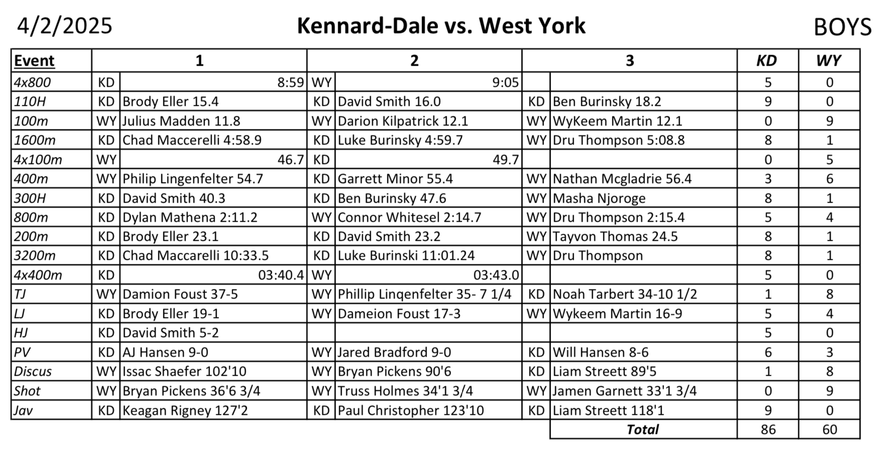 Brandywine Heights & Wyomissing @ Kutztown – Results
