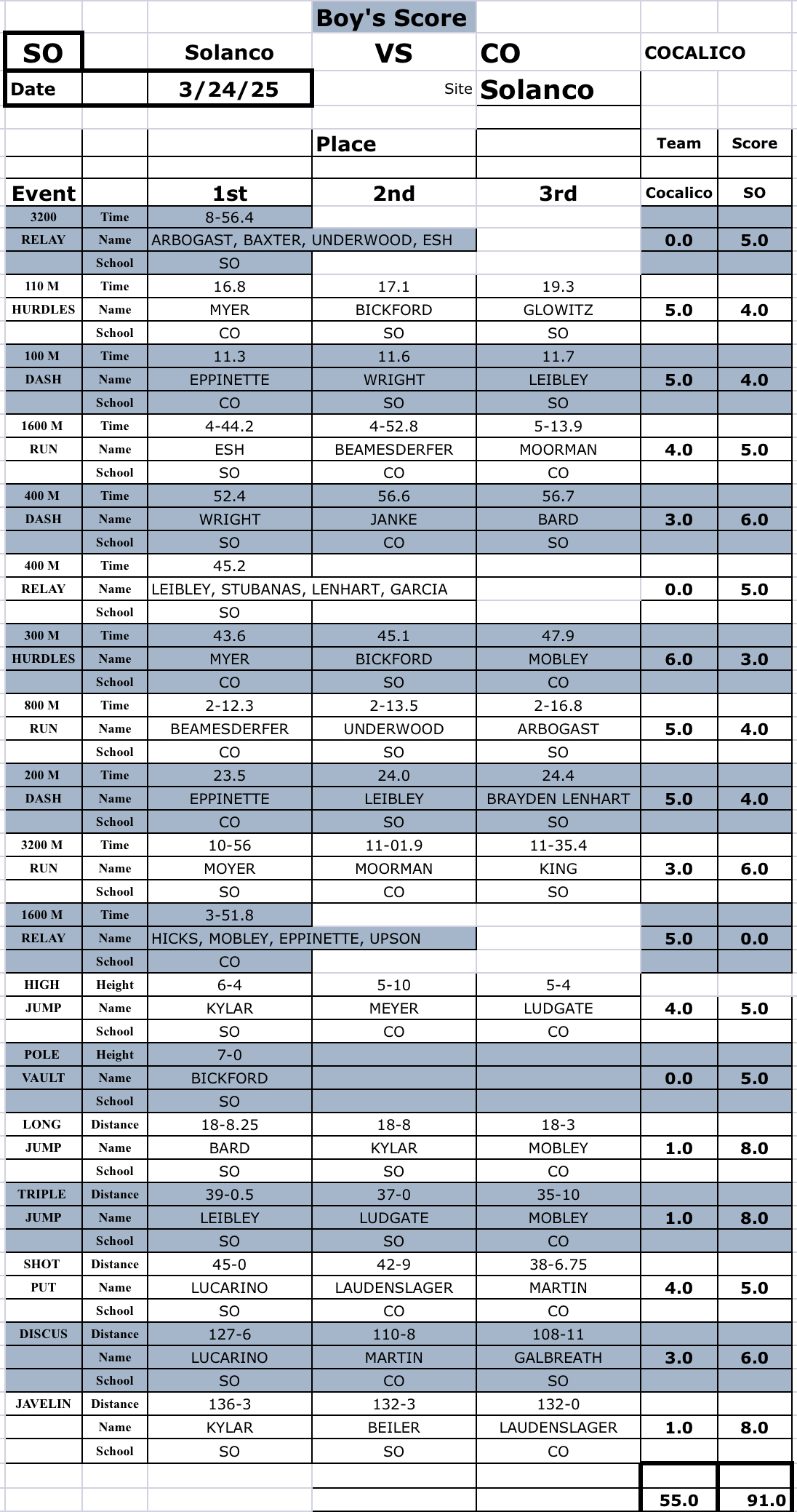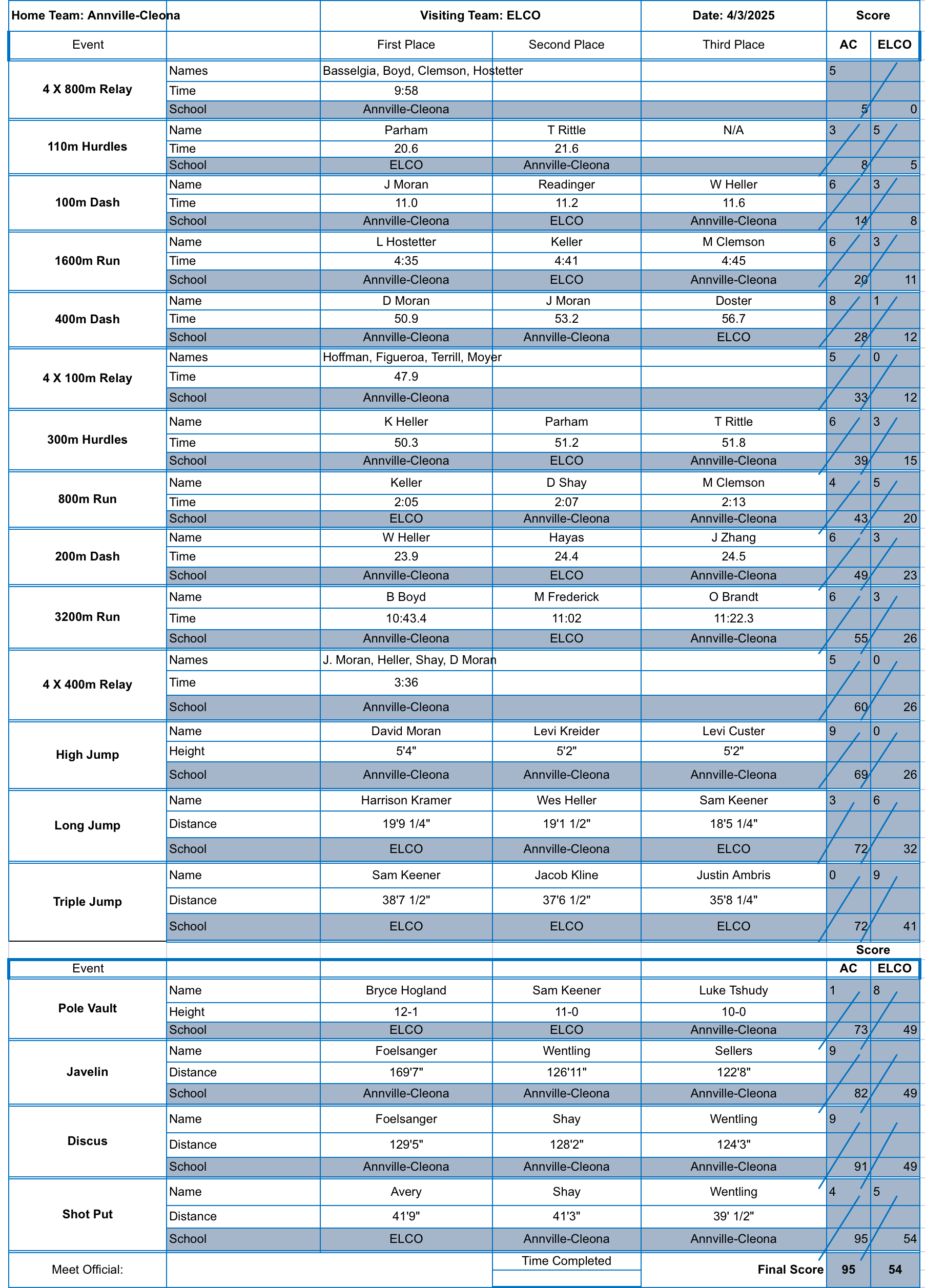 Halifax, Millersburg, Mt. Calvary @ Susquenita – Results