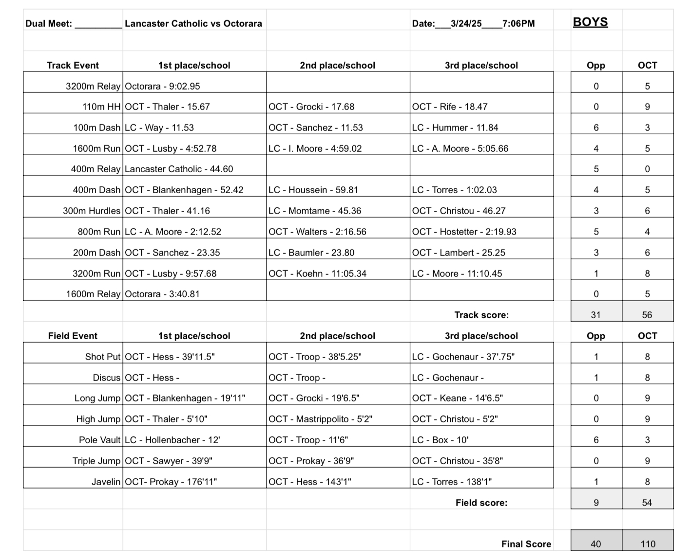 Columbia & Lancaster Mennonite @ Lancaster Catholic – Results