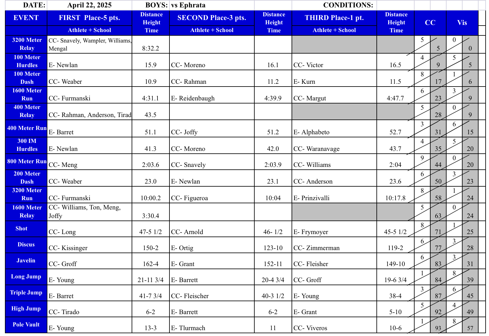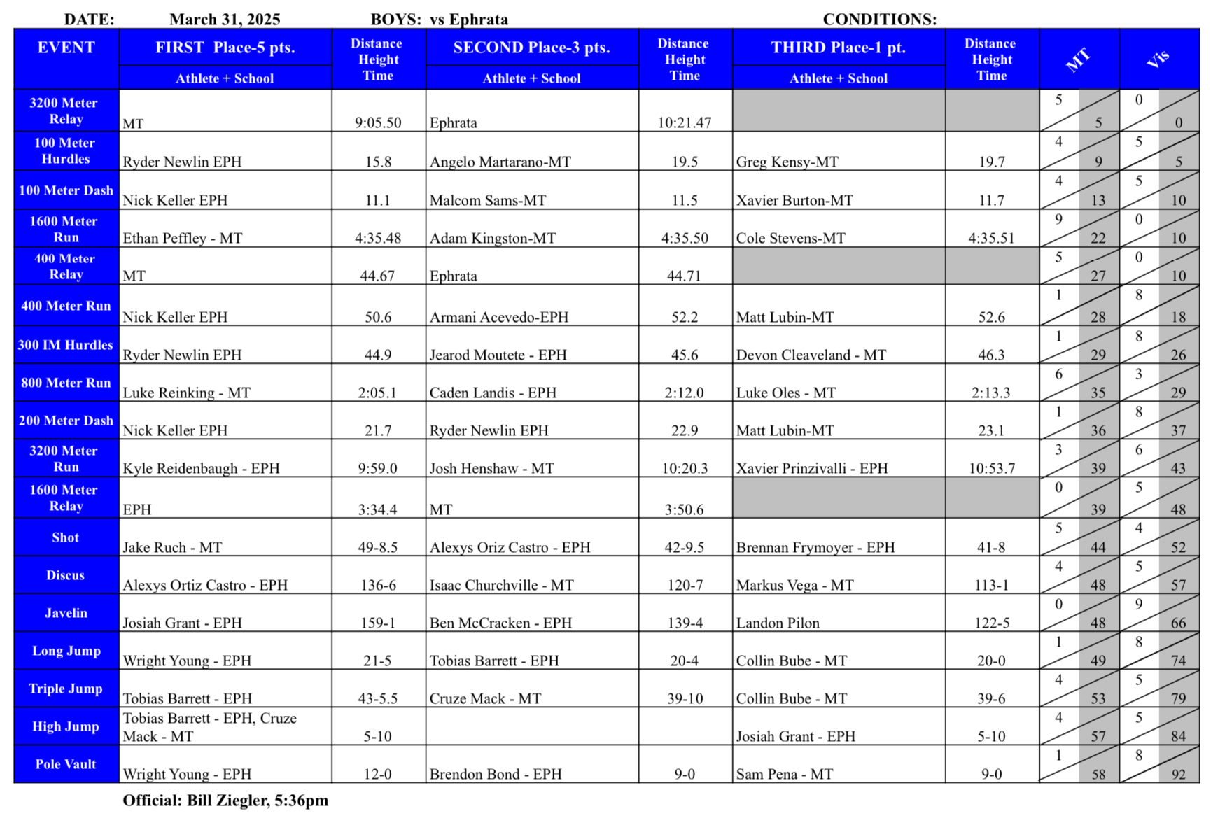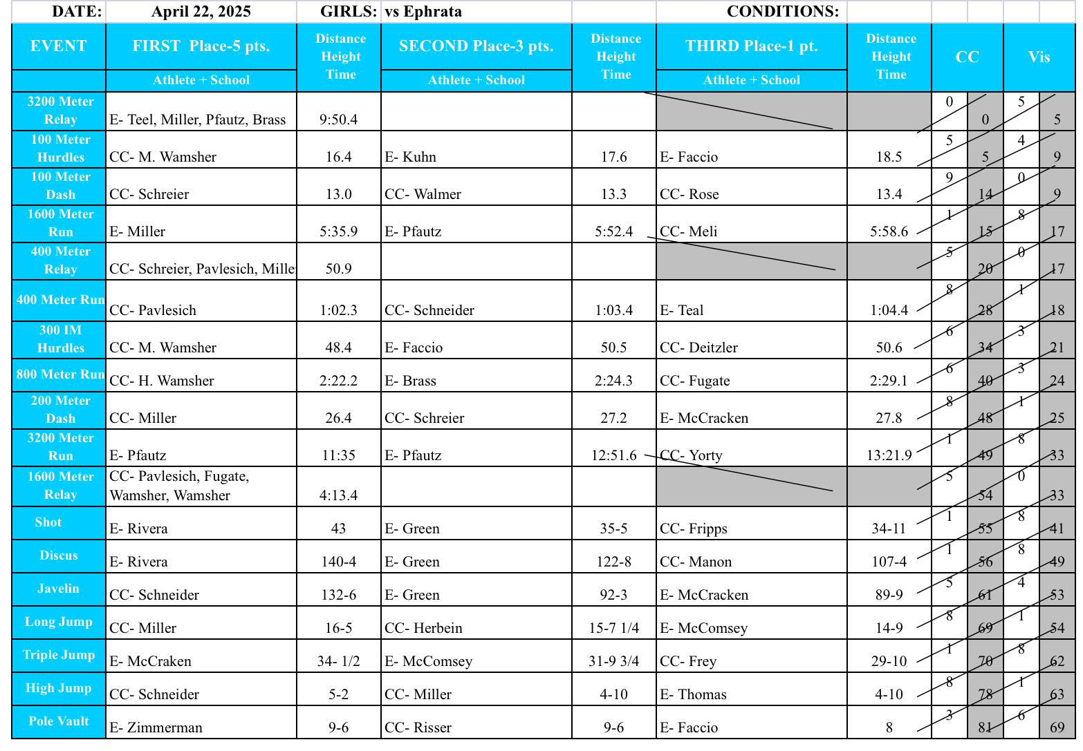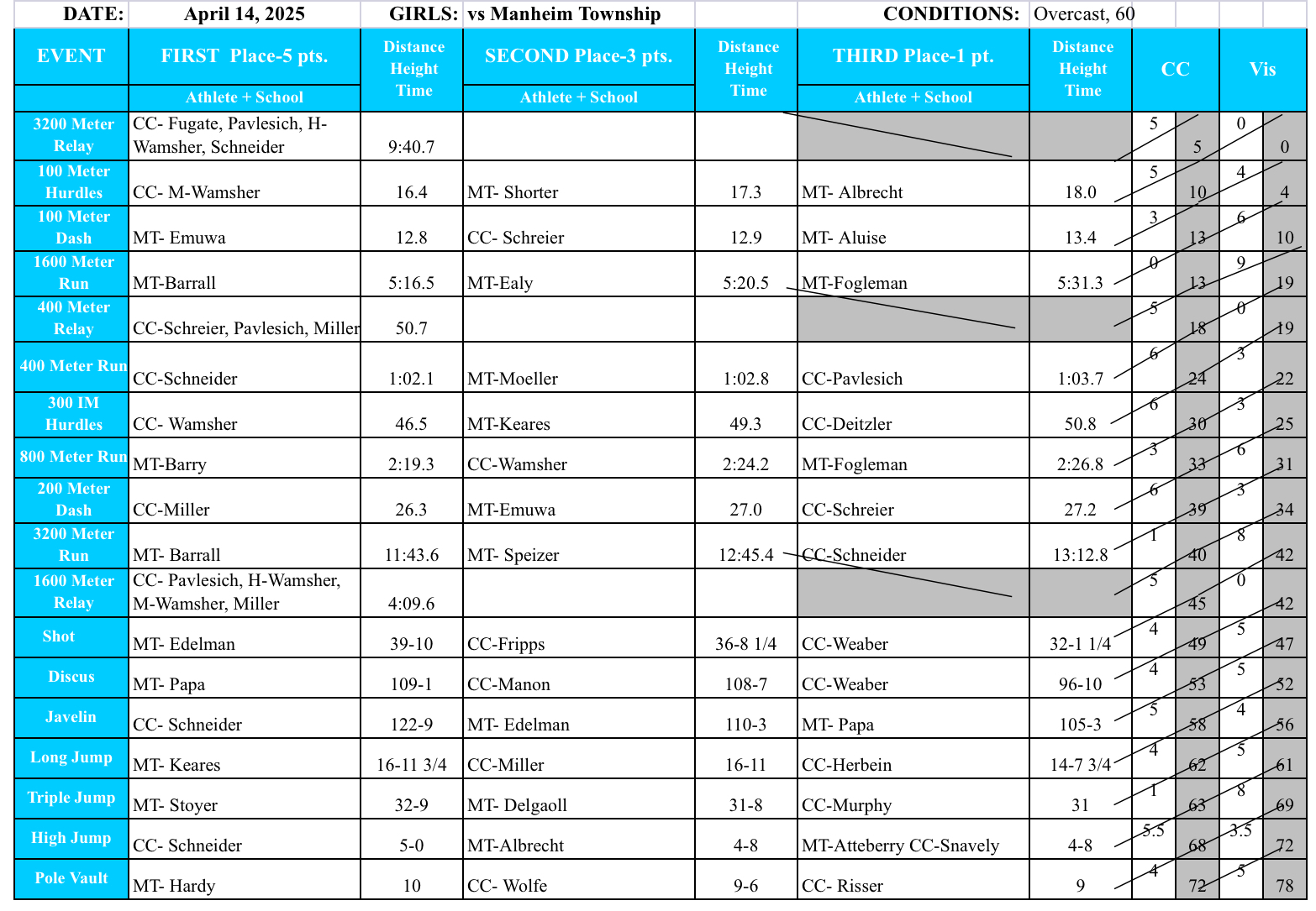 Ephrata @ Manheim Township – Girls Boys (Continued from 3/31/25)