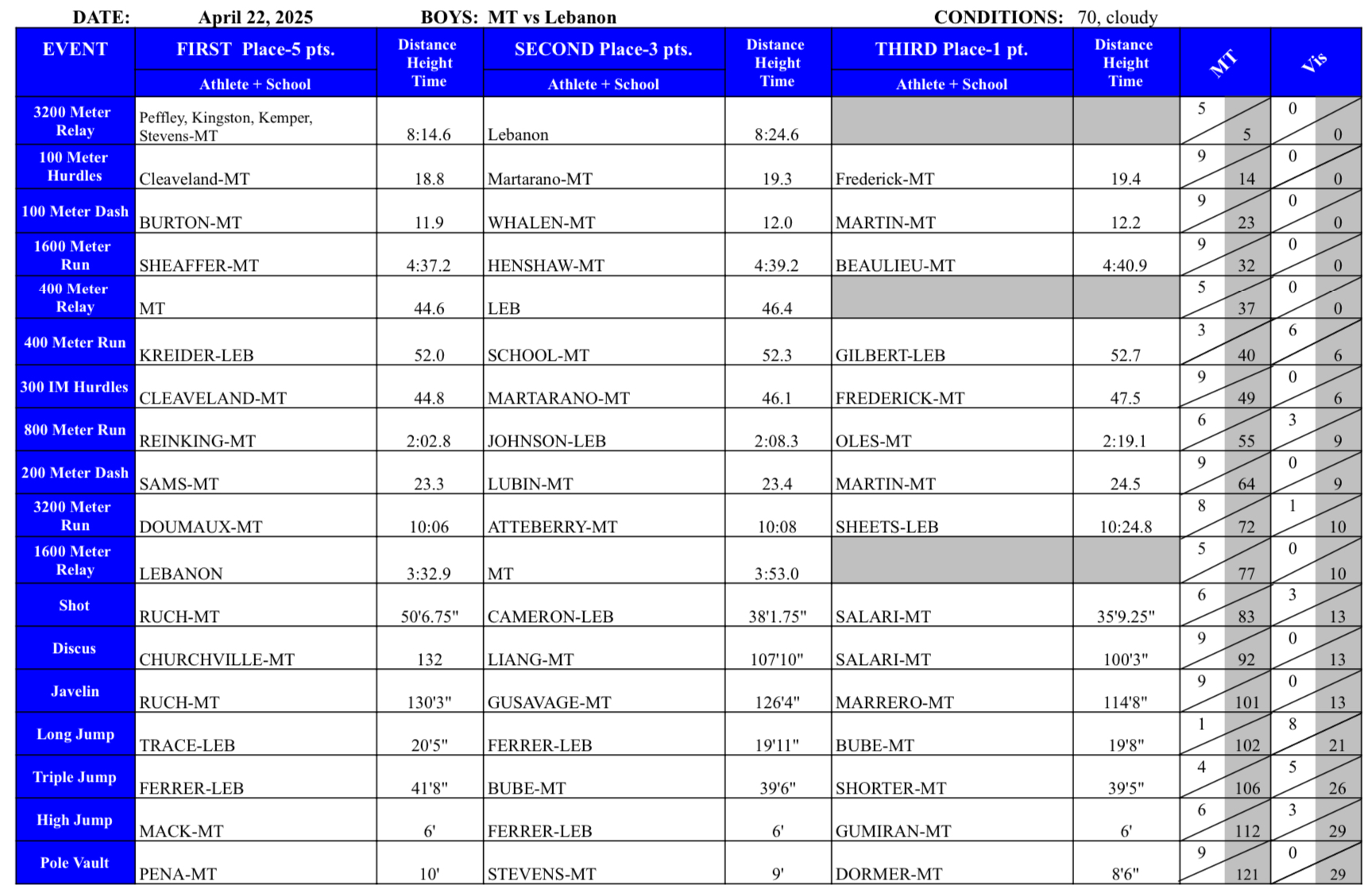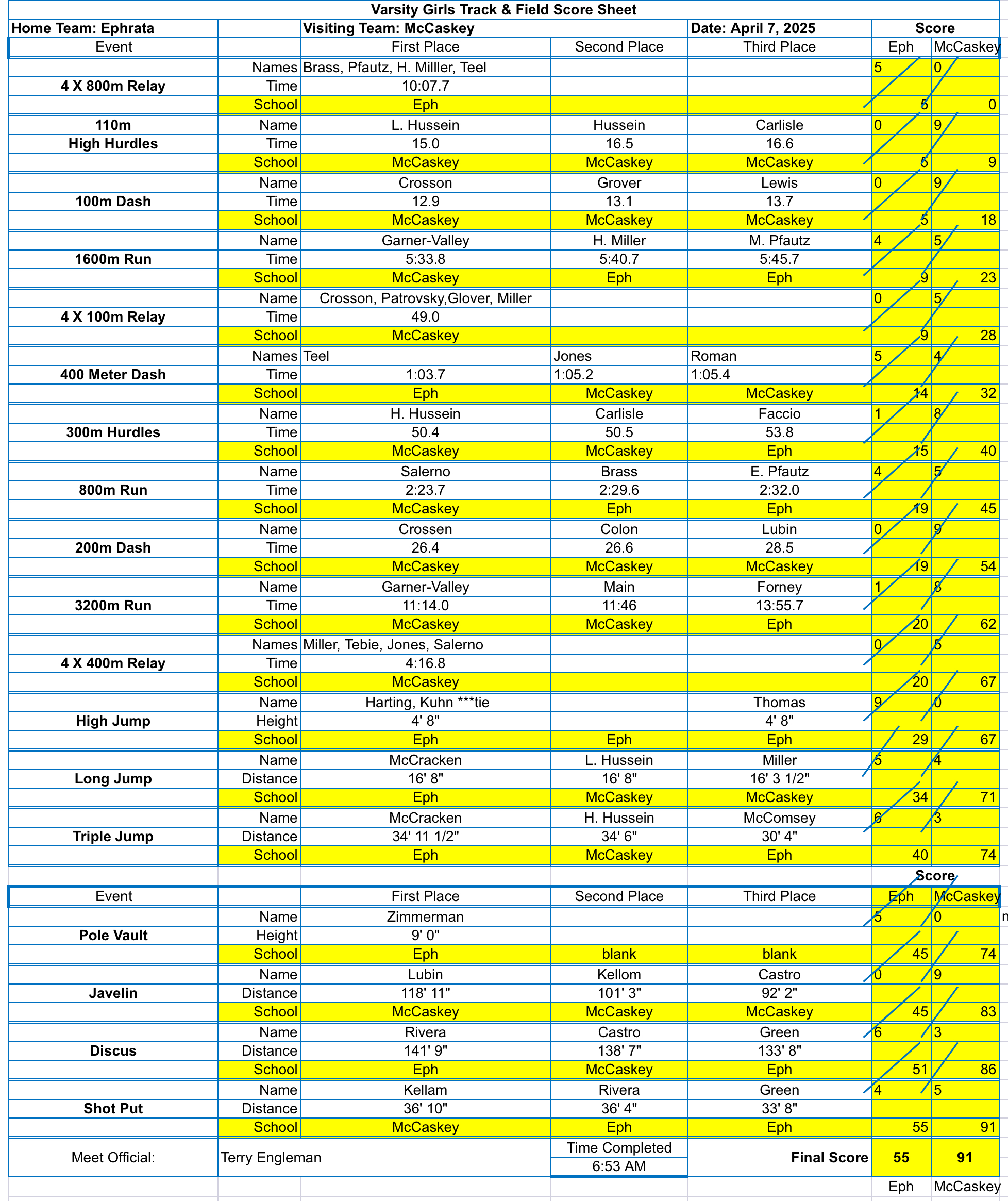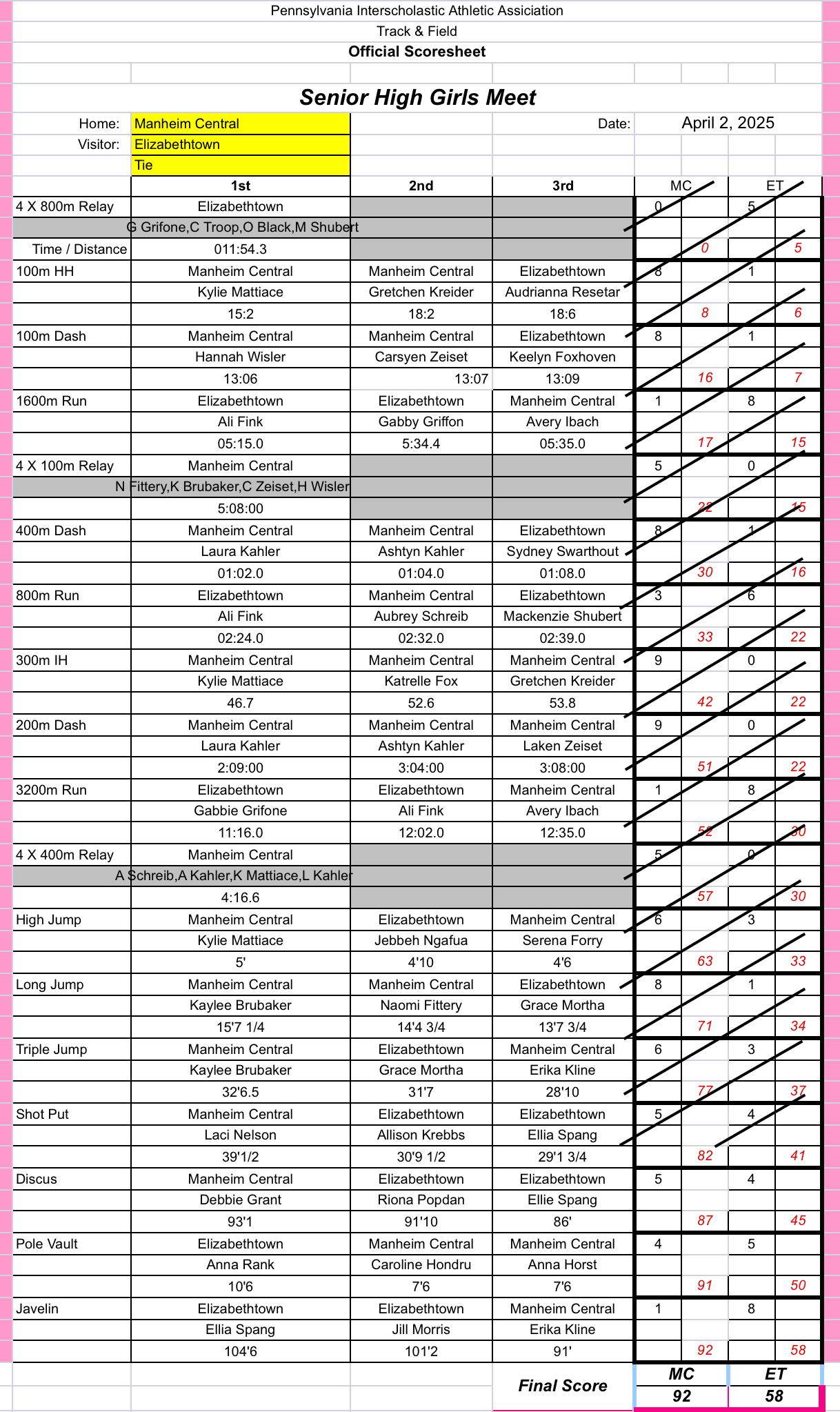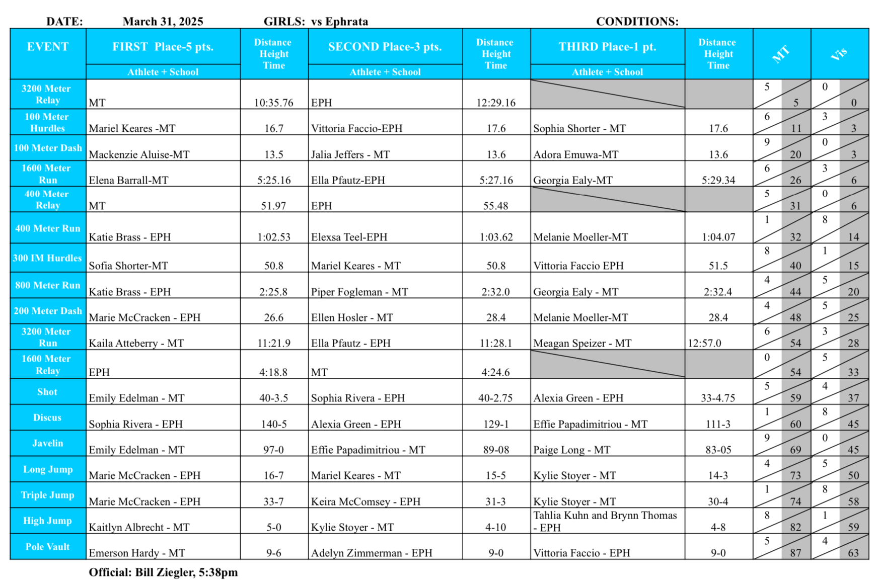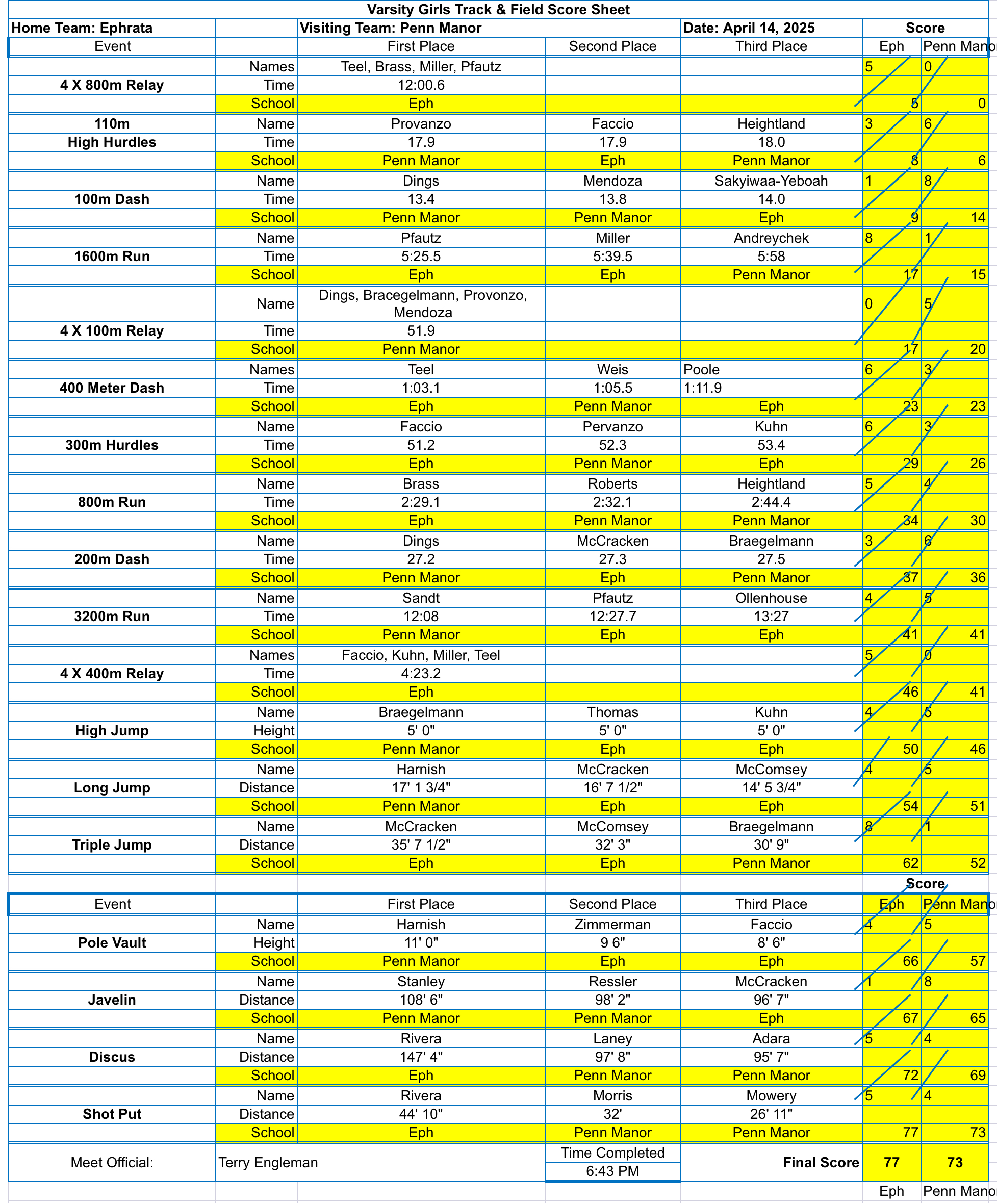 Ephrata @ Manheim Township – Girls Boys (Continued from 3/31/25)