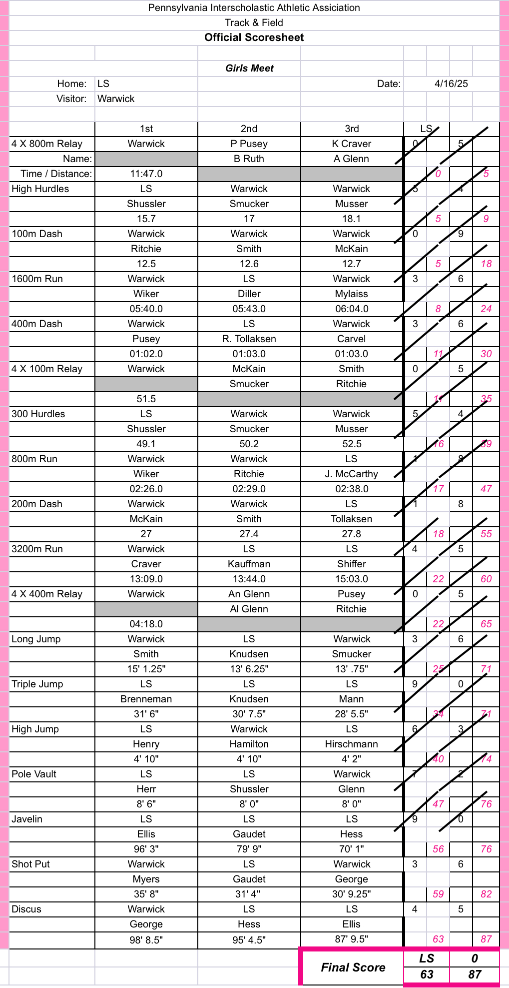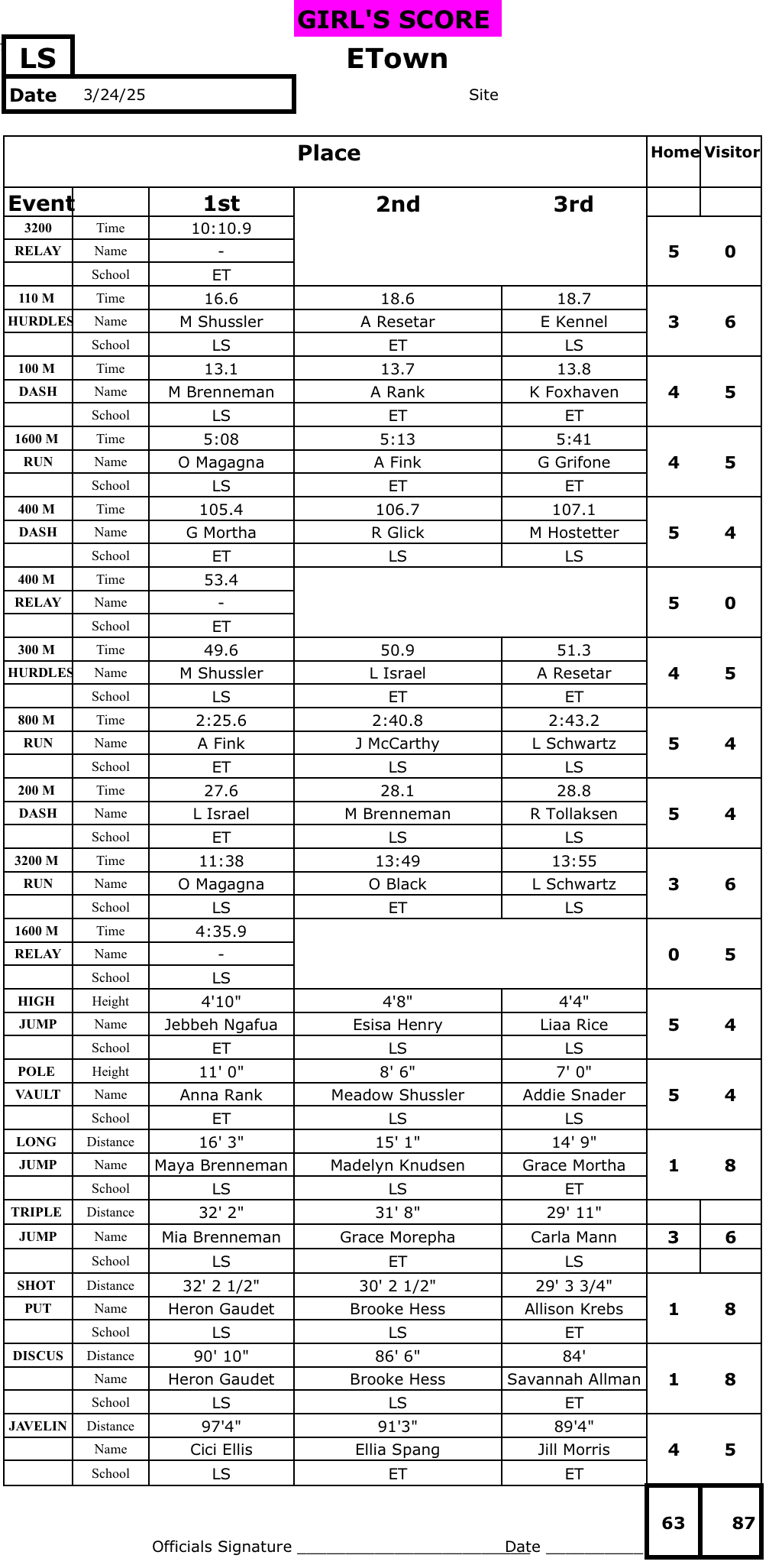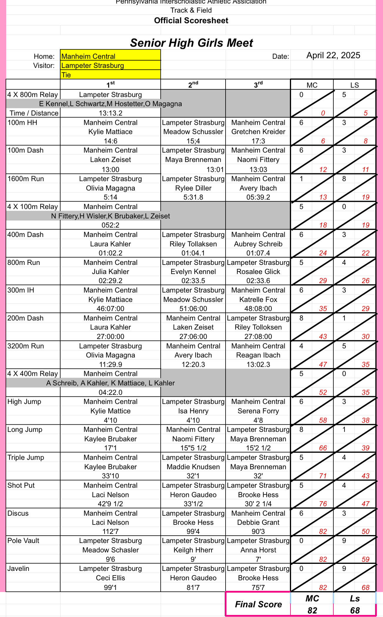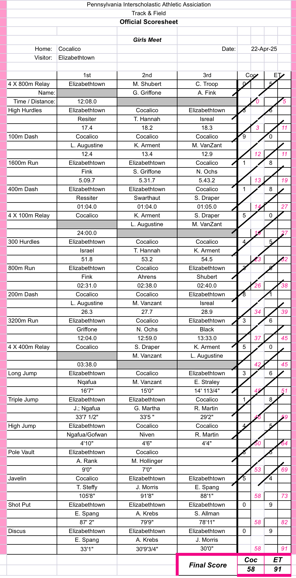 Ephrata @ Manheim Township – Girls Boys (Continued from 3/31/25)