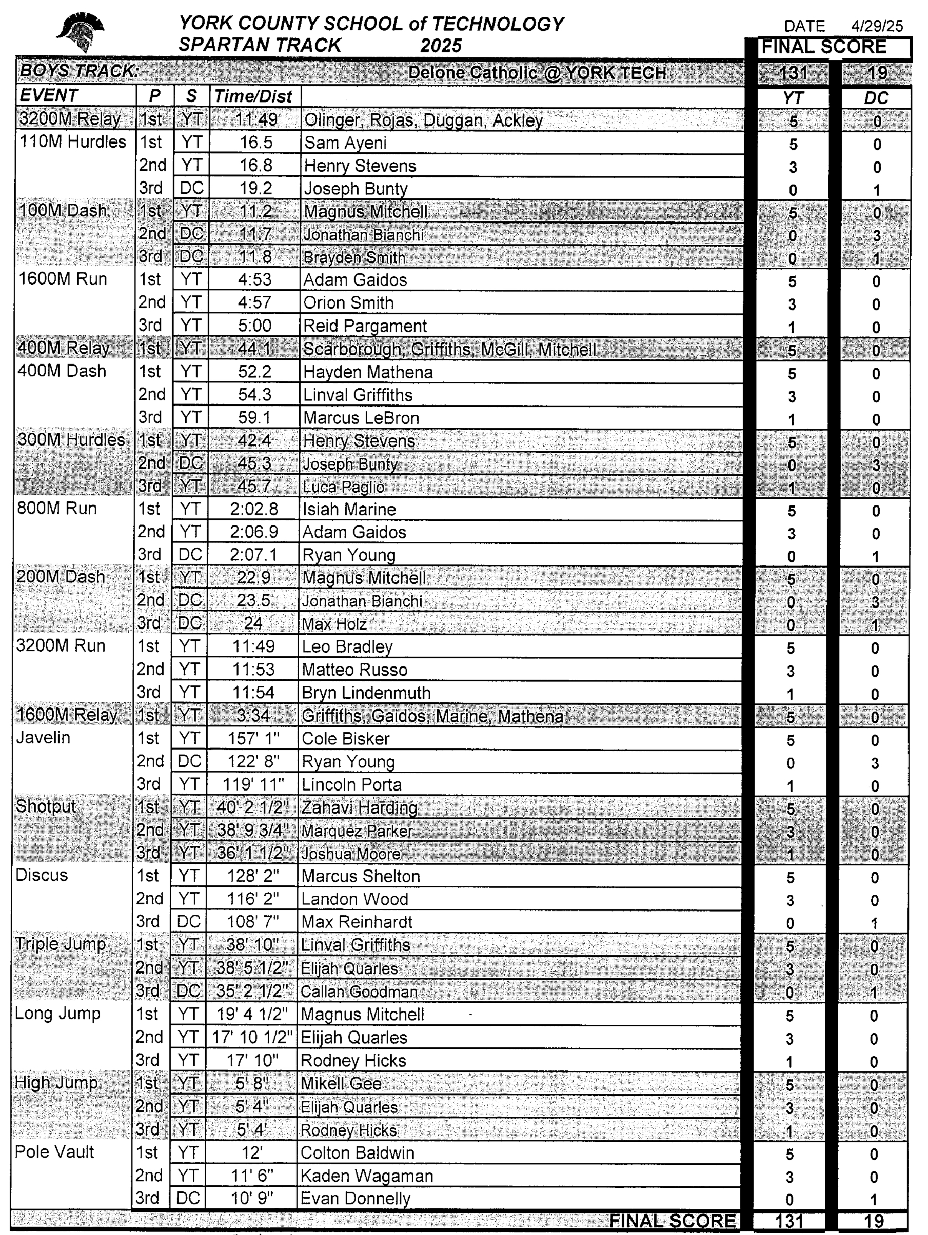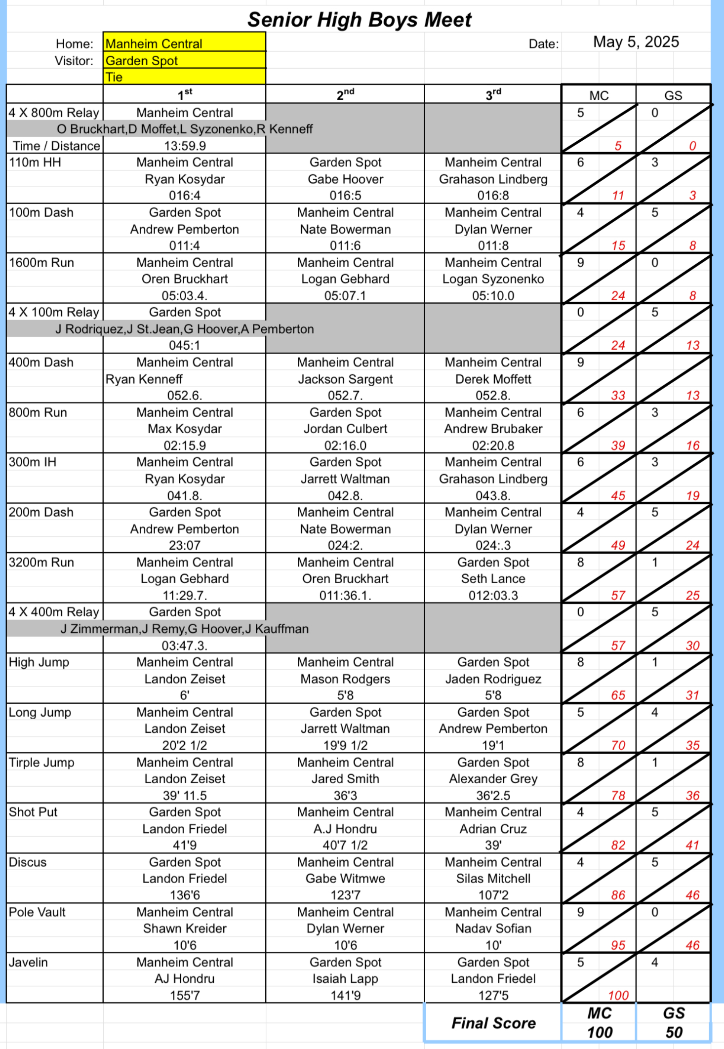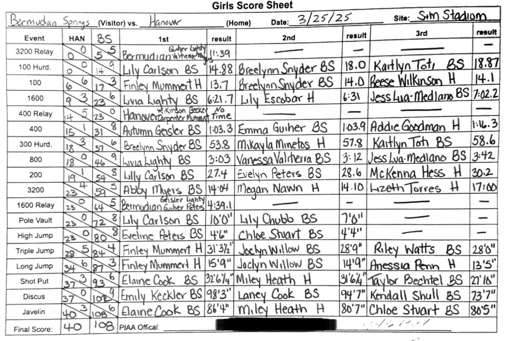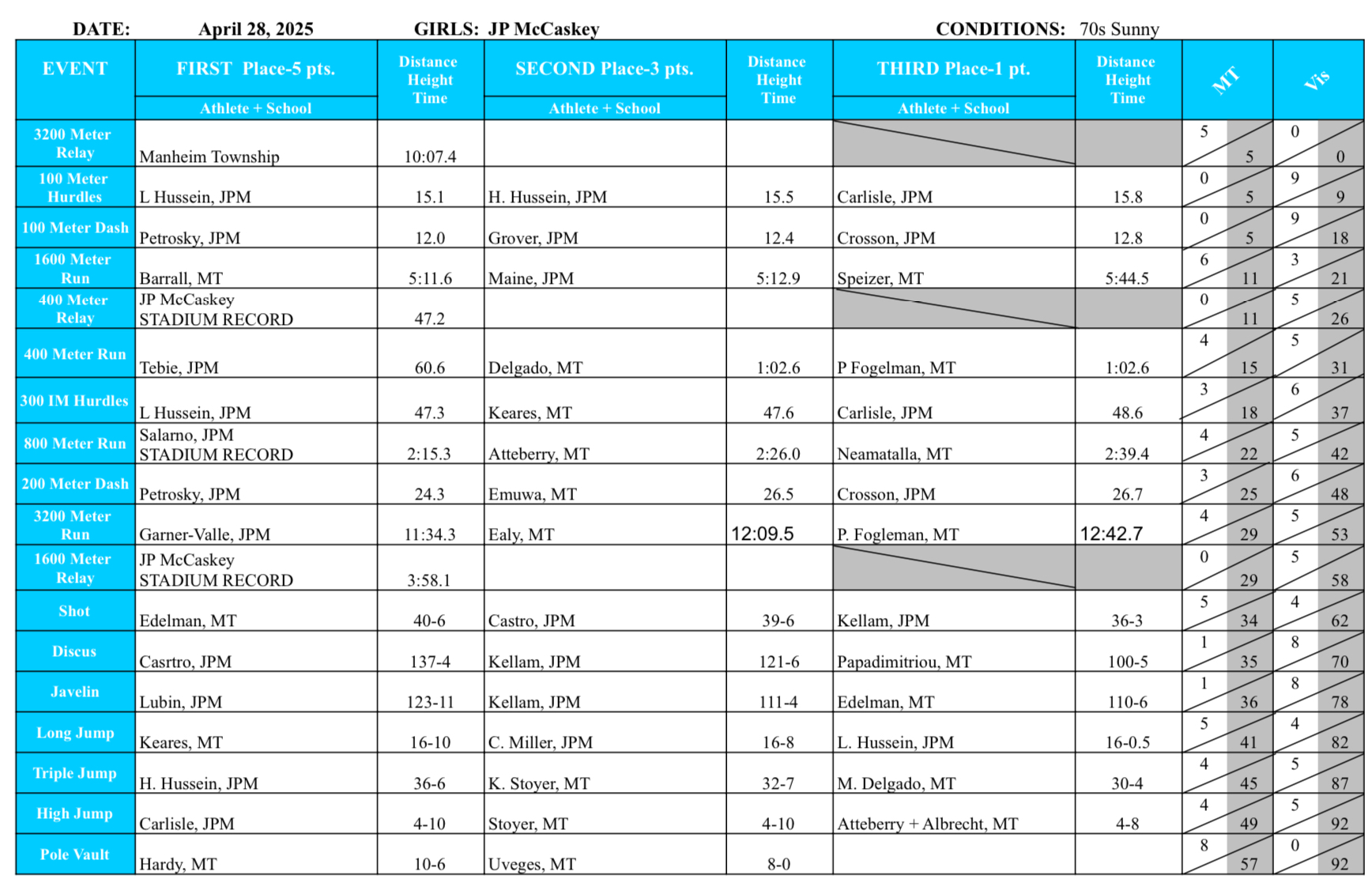 Mechanicsburg @ Hershey – Results (partial results due to weather)