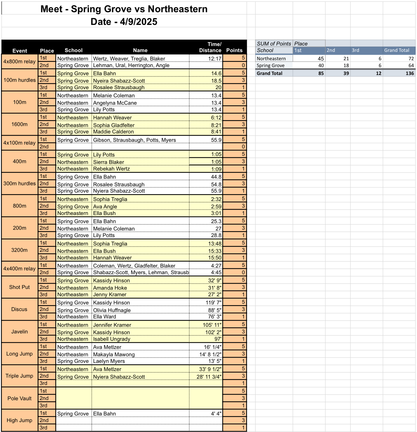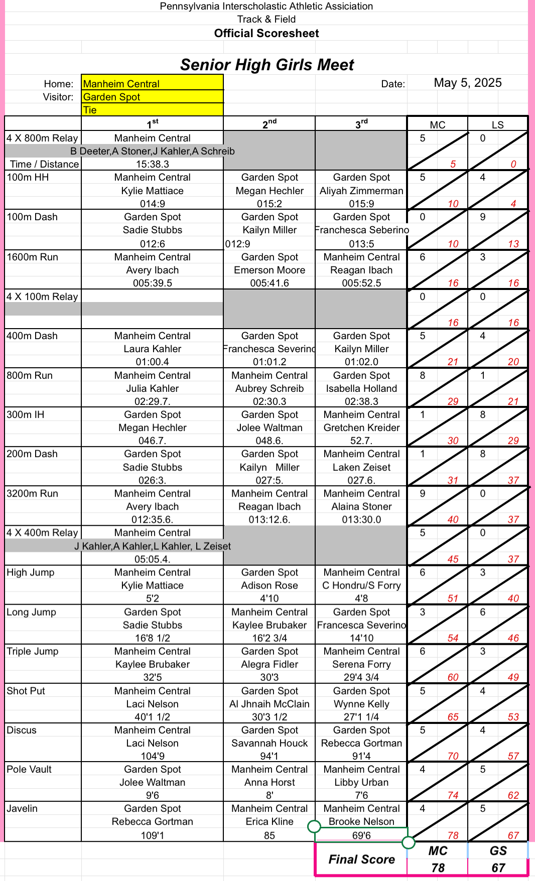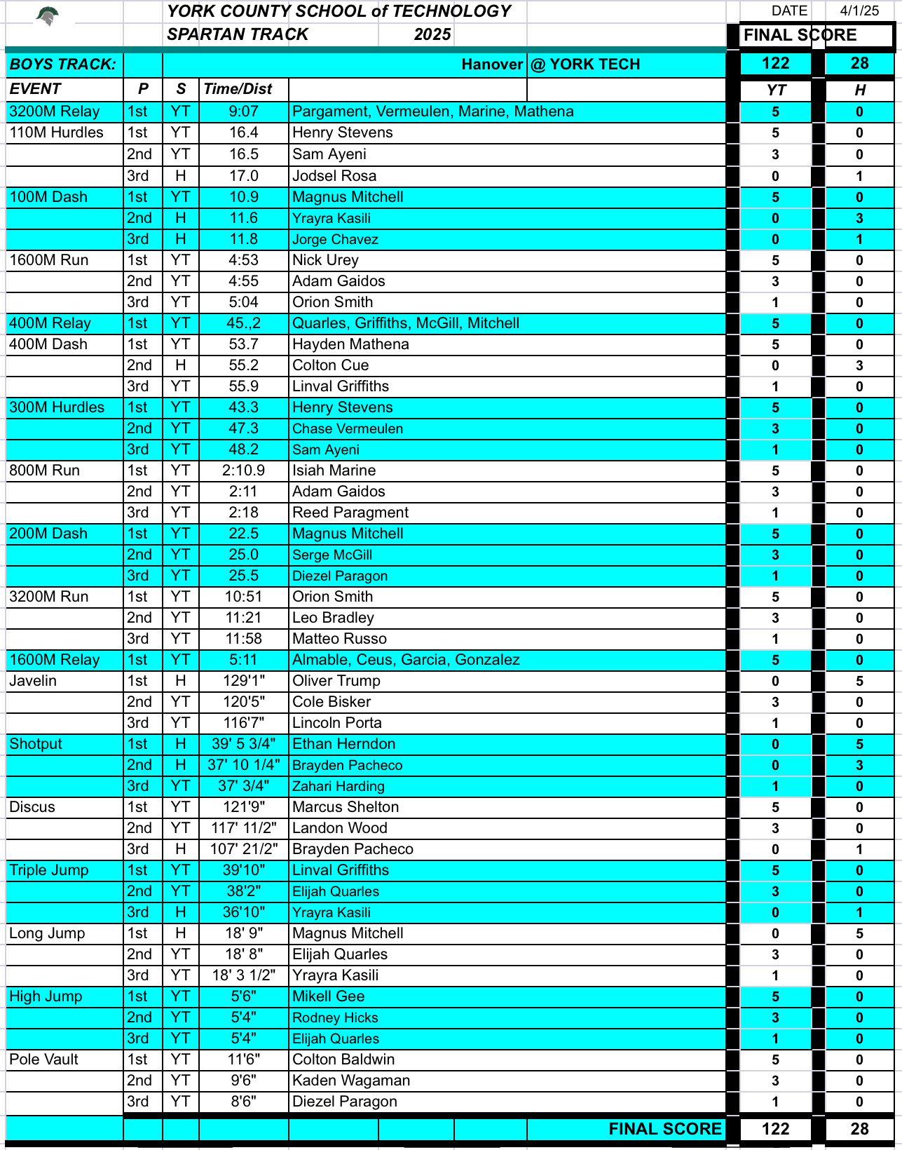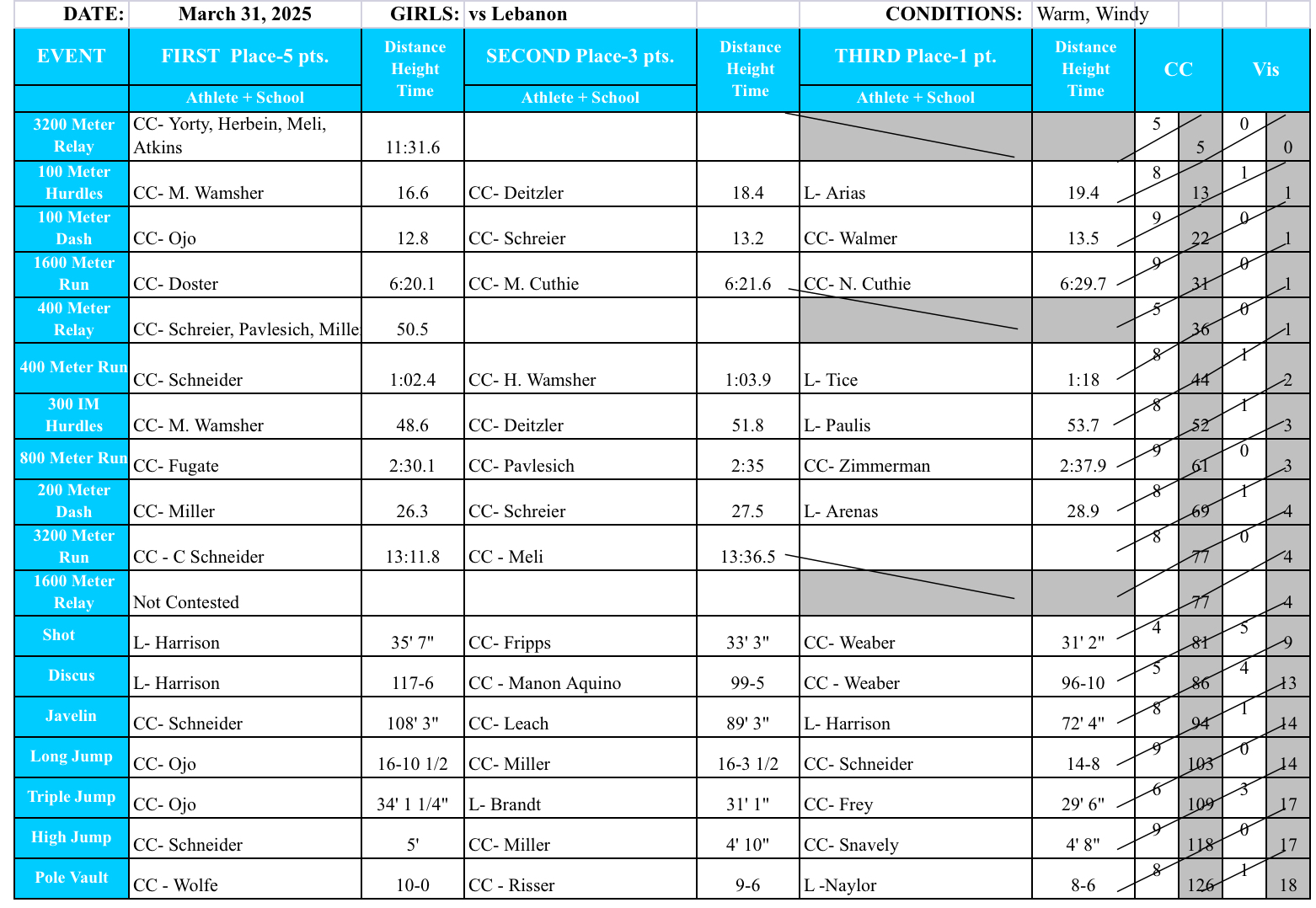 Mechanicsburg @ Hershey – Results (partial results due to weather)