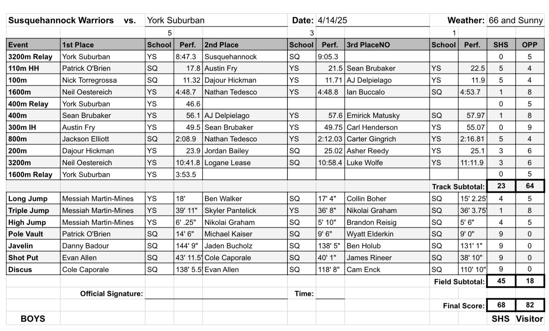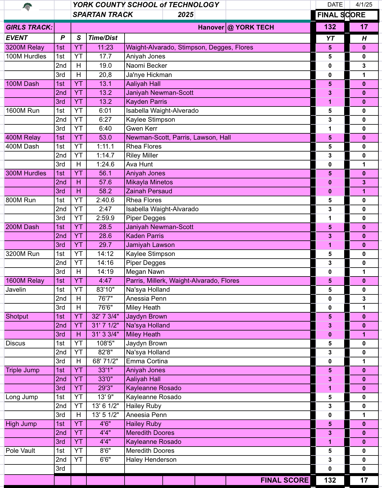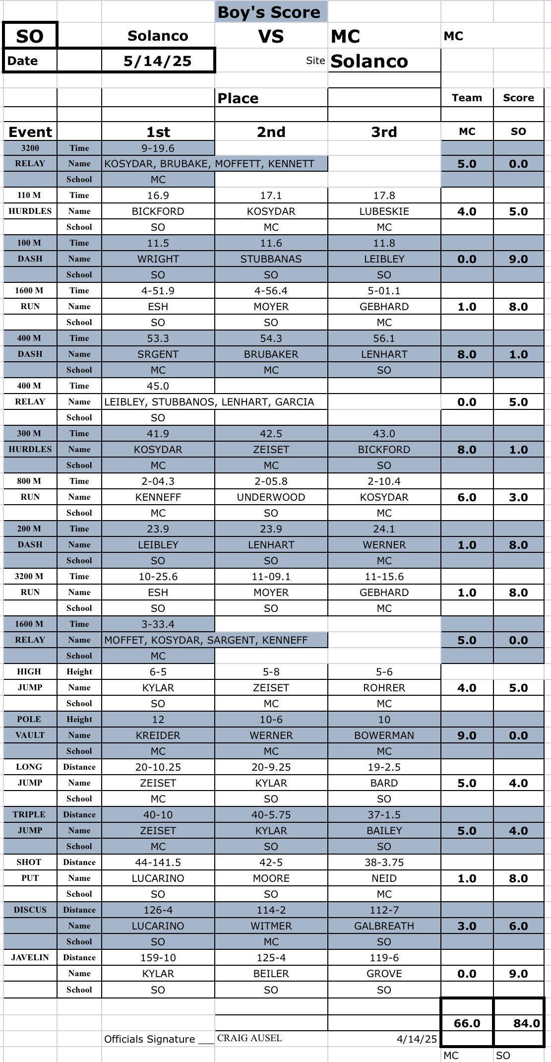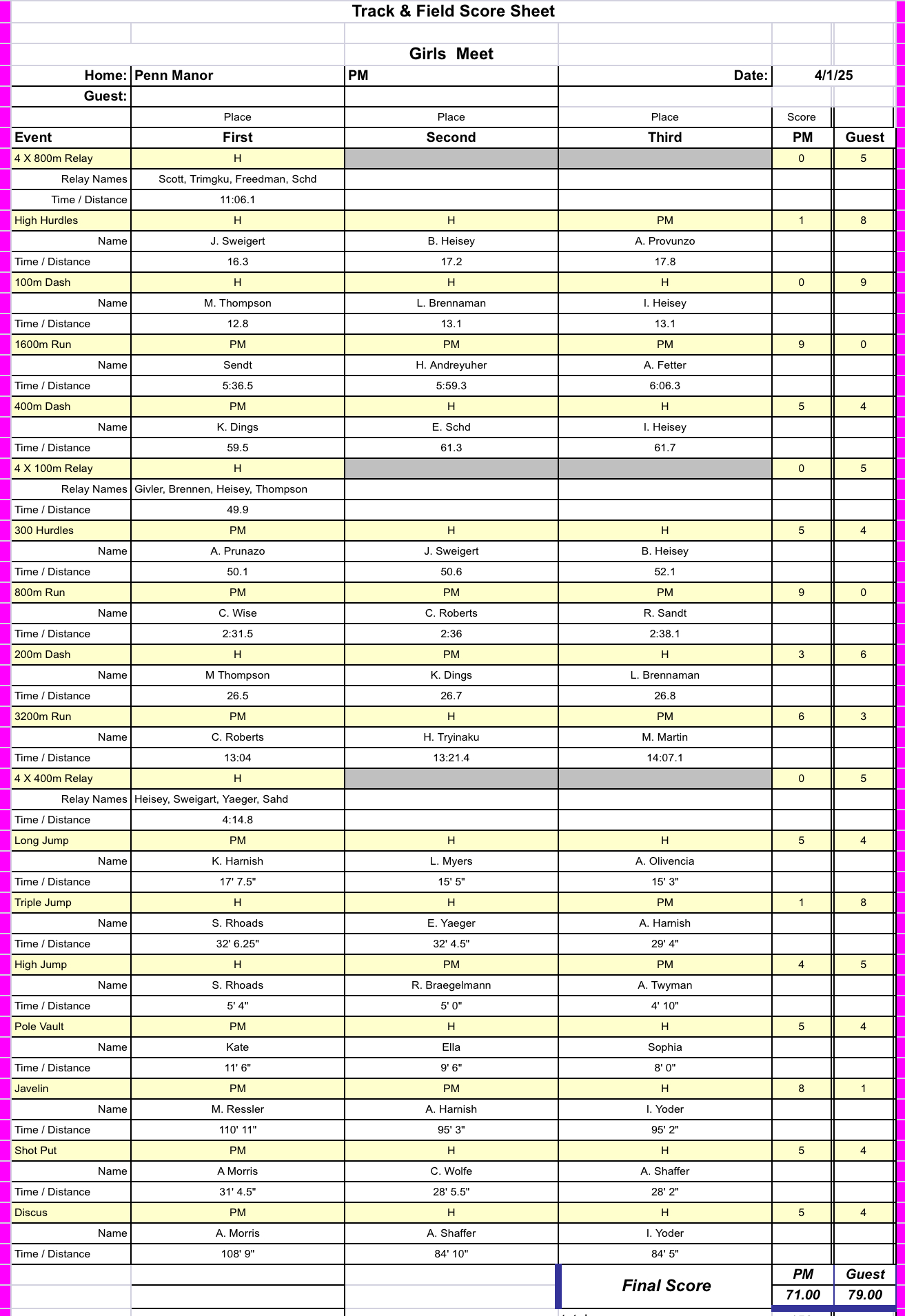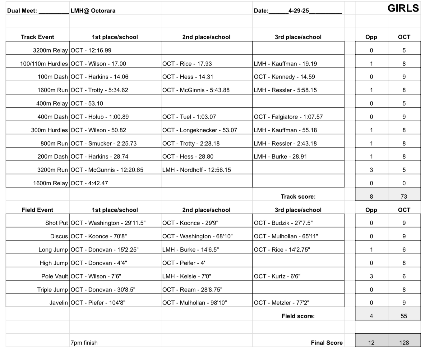 Mechanicsburg @ Hershey – Results (partial results due to weather)
