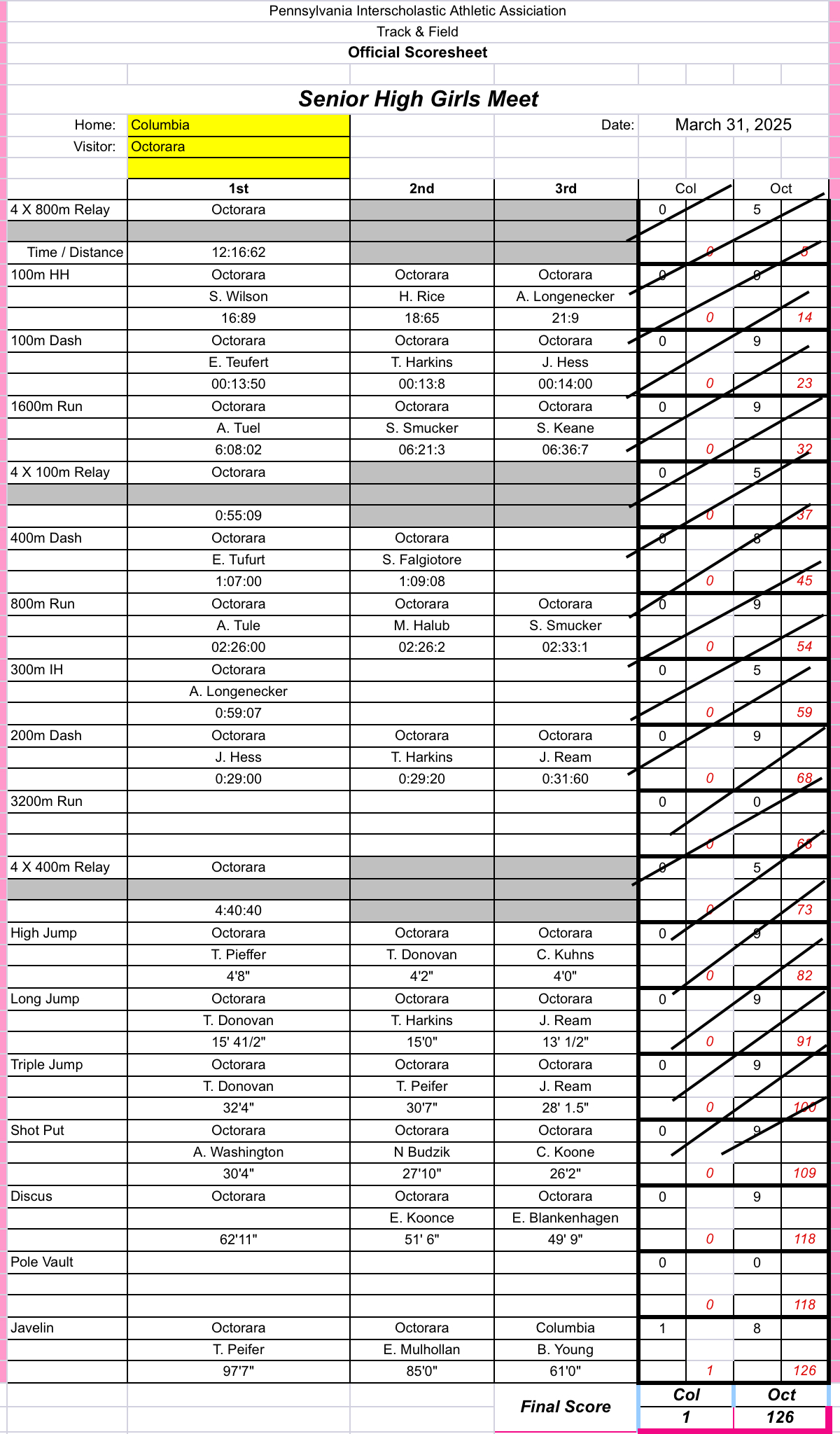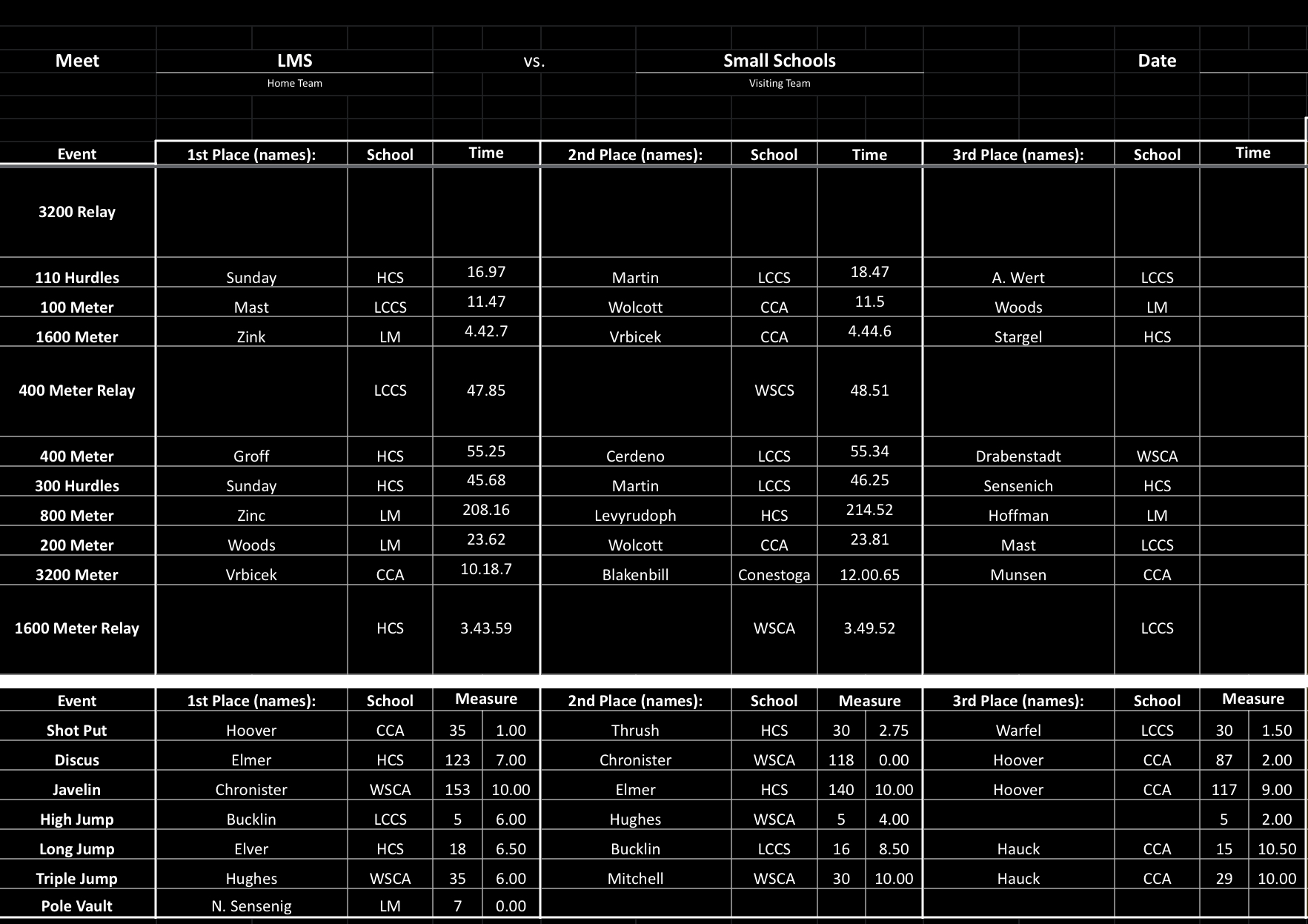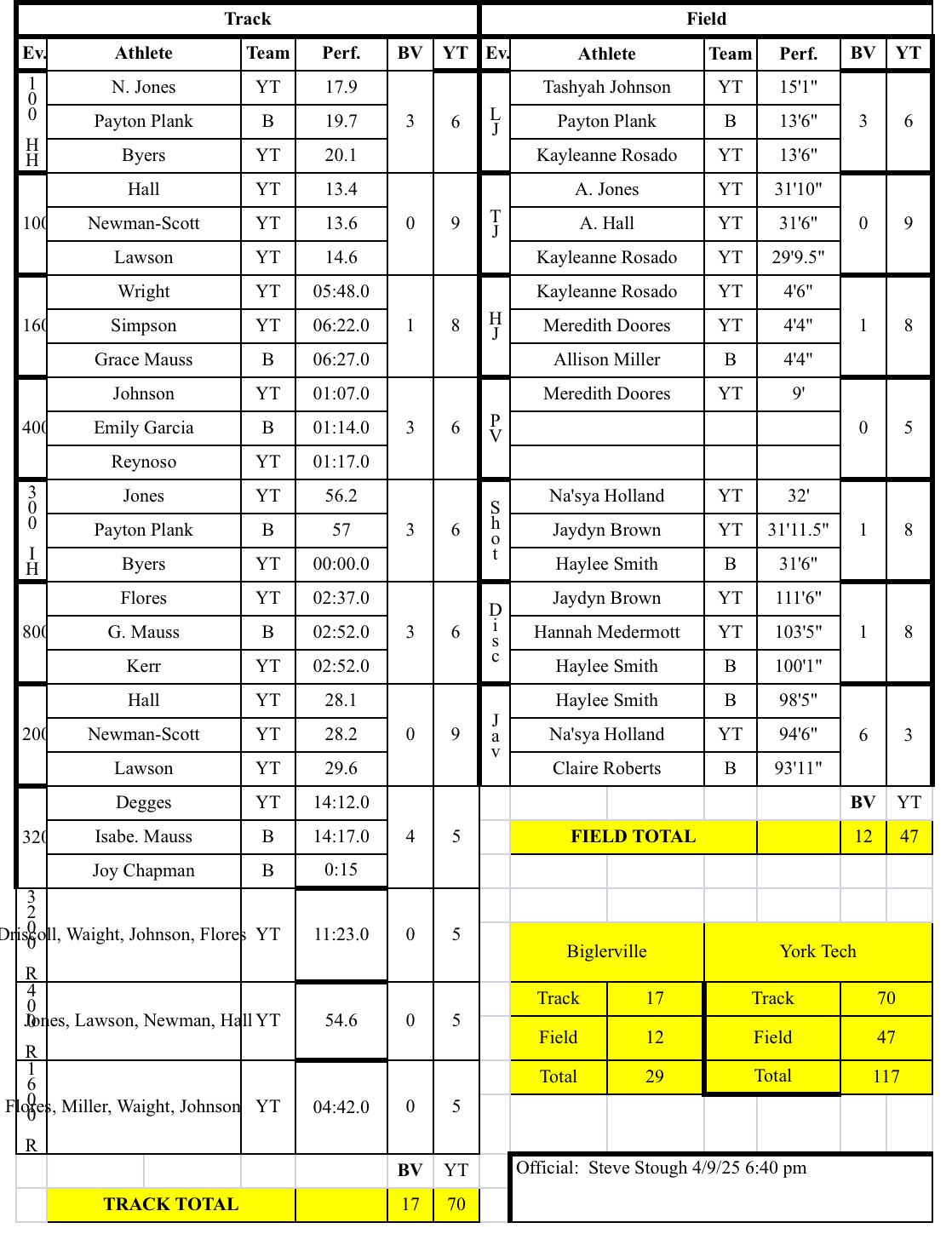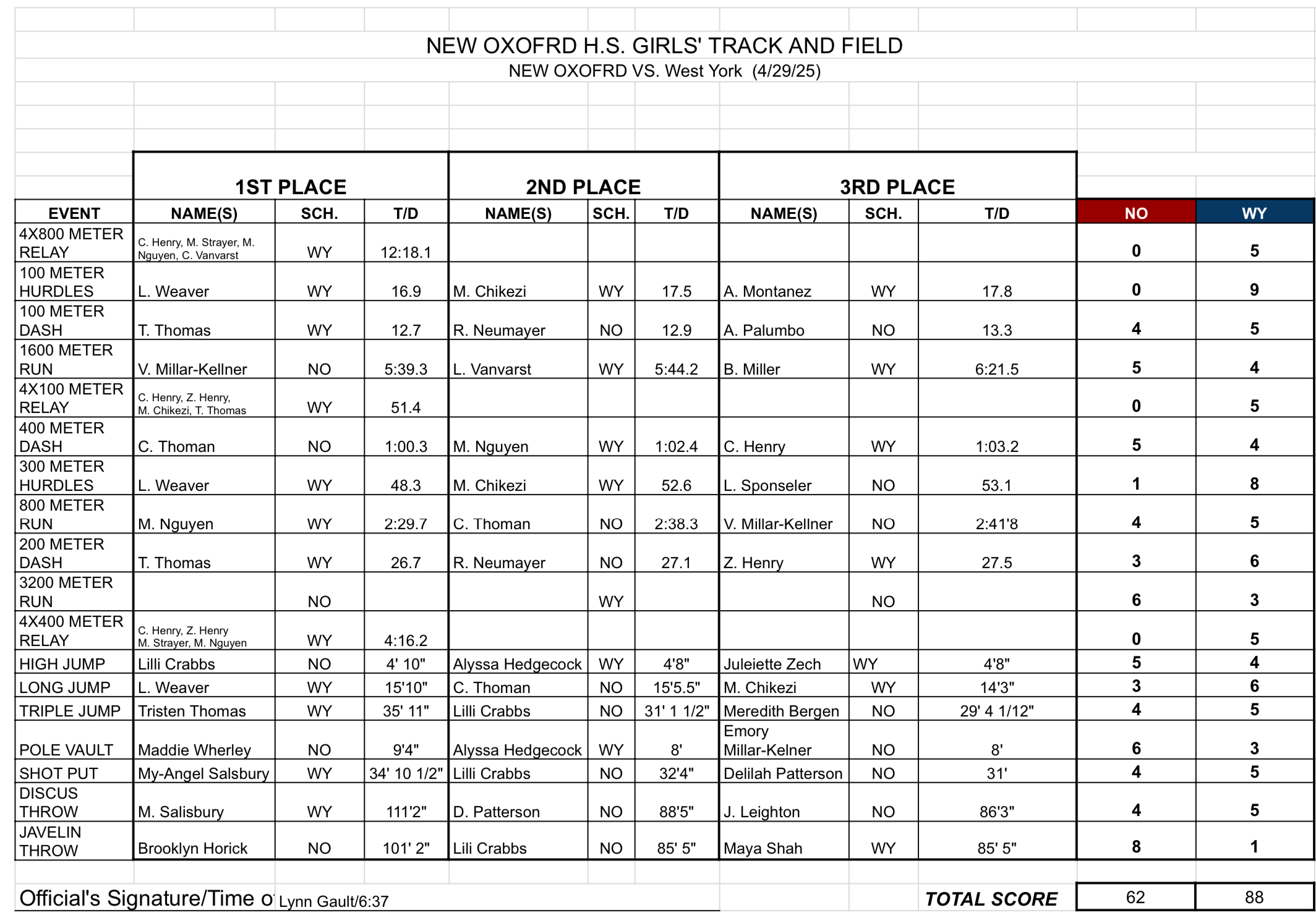Mechanicsburg @ Hershey – Results (partial results due to weather)