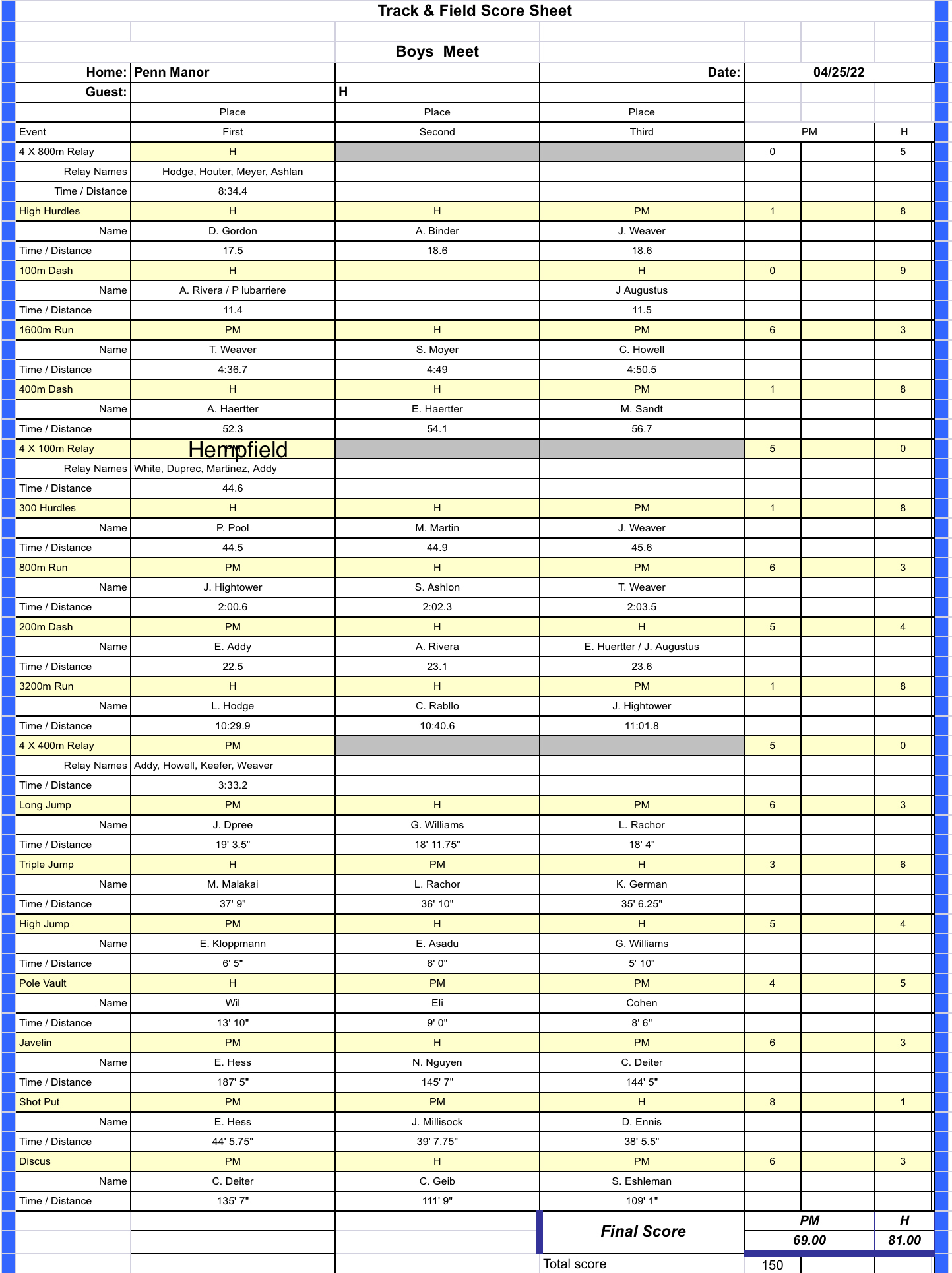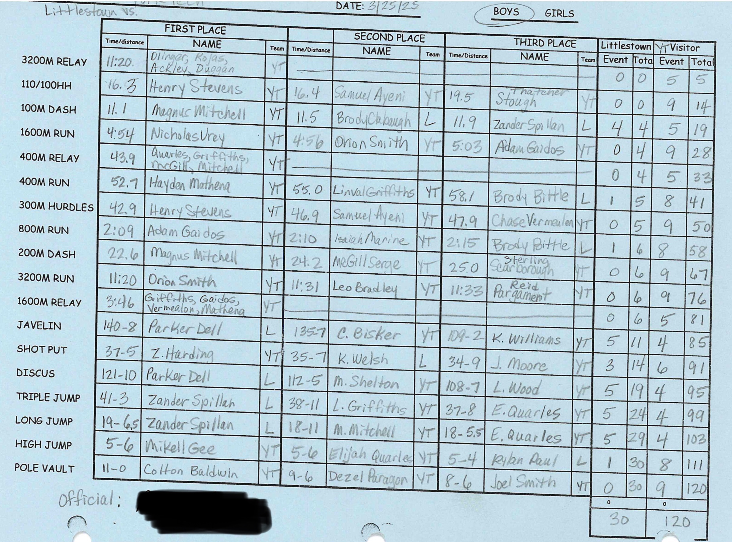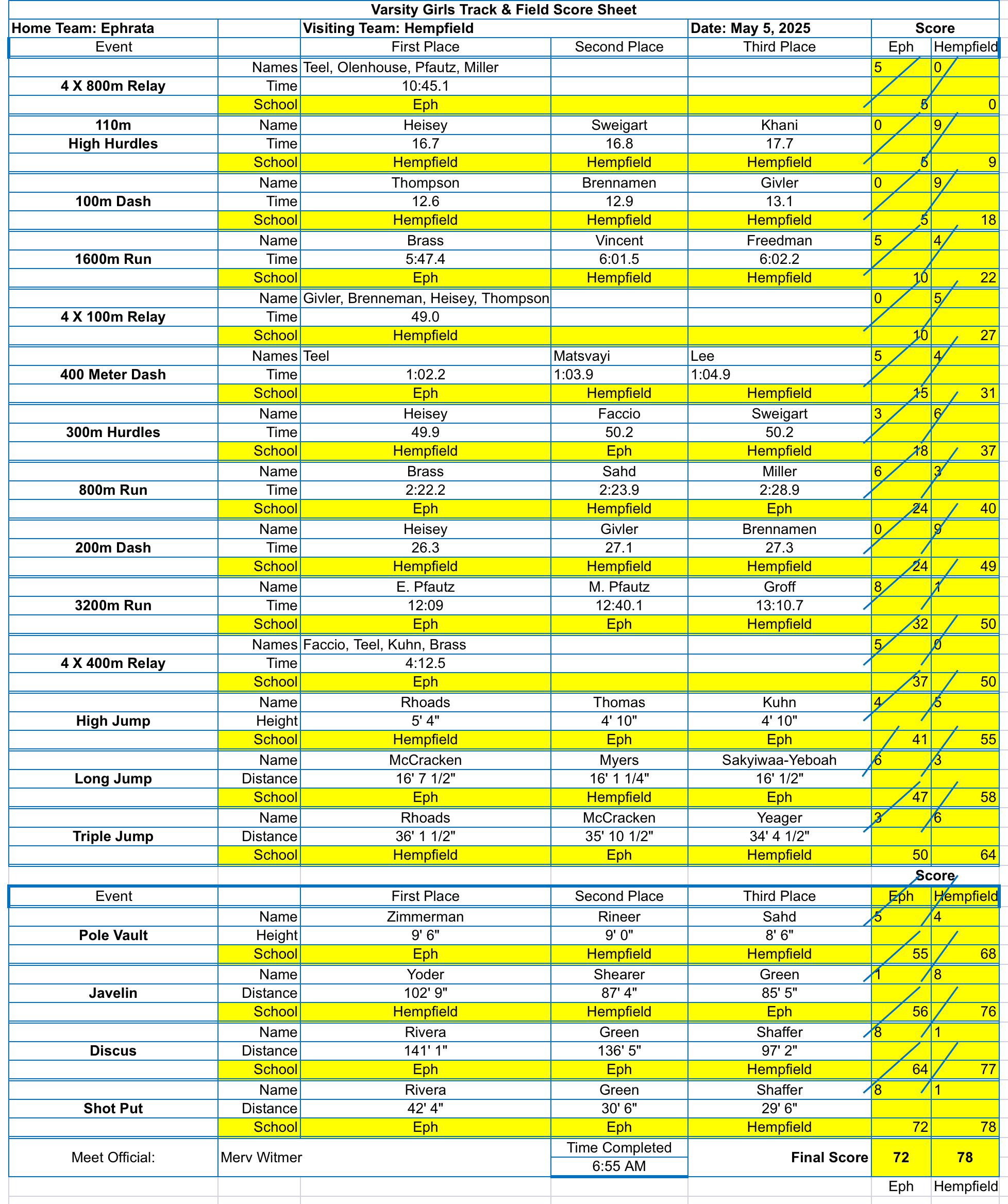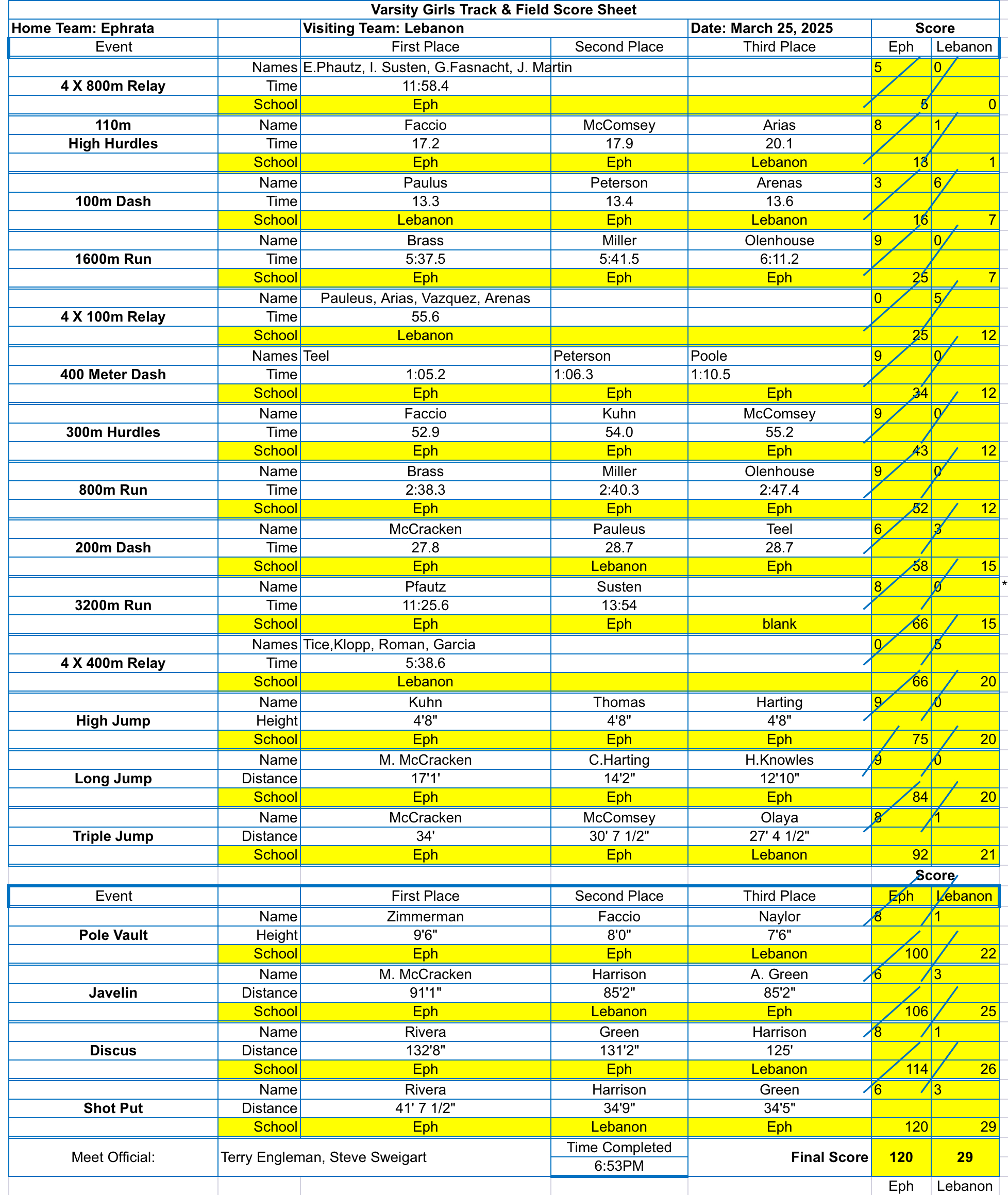 Ephrata @ Manheim Township – Results (partial results due to weather)