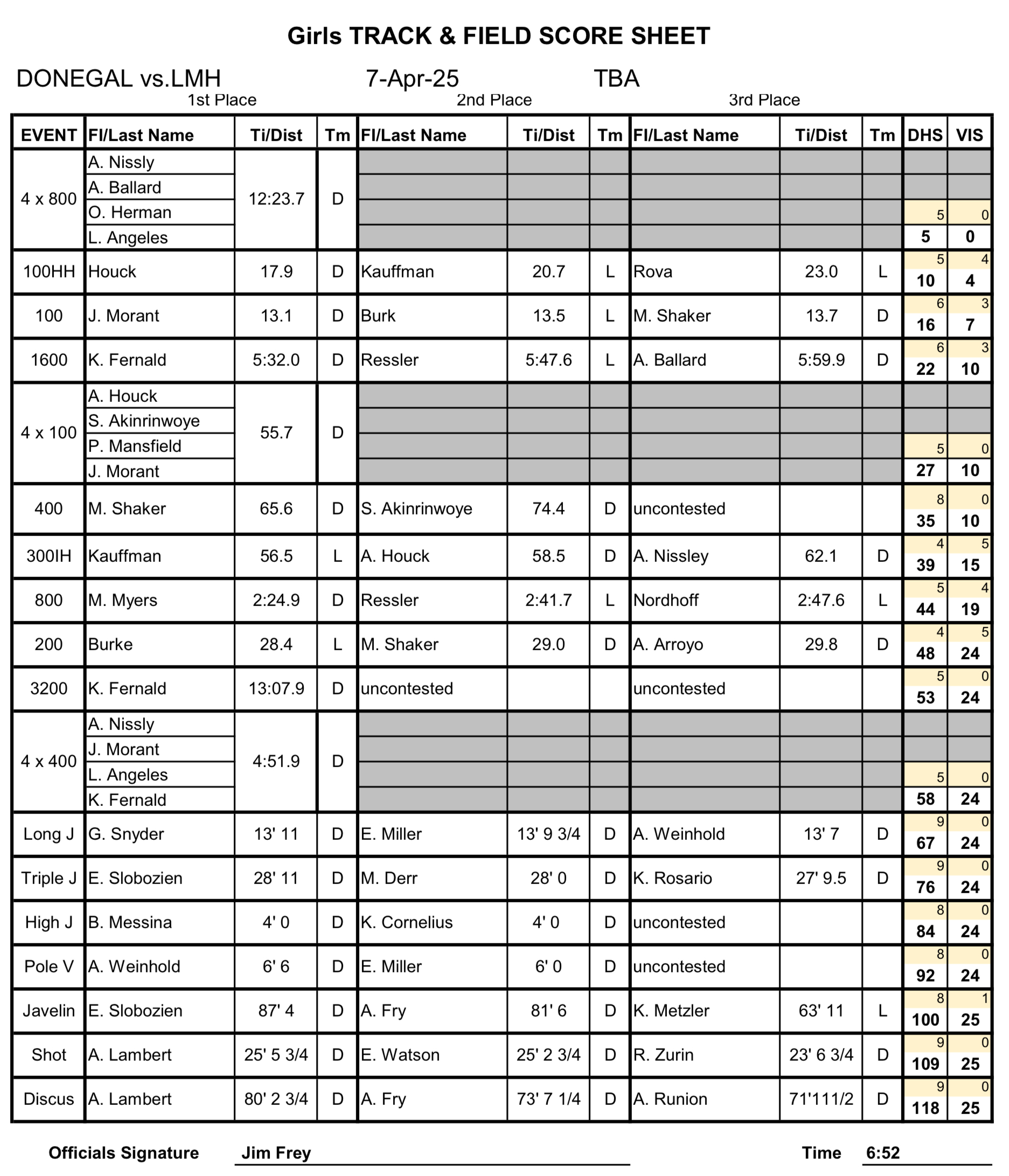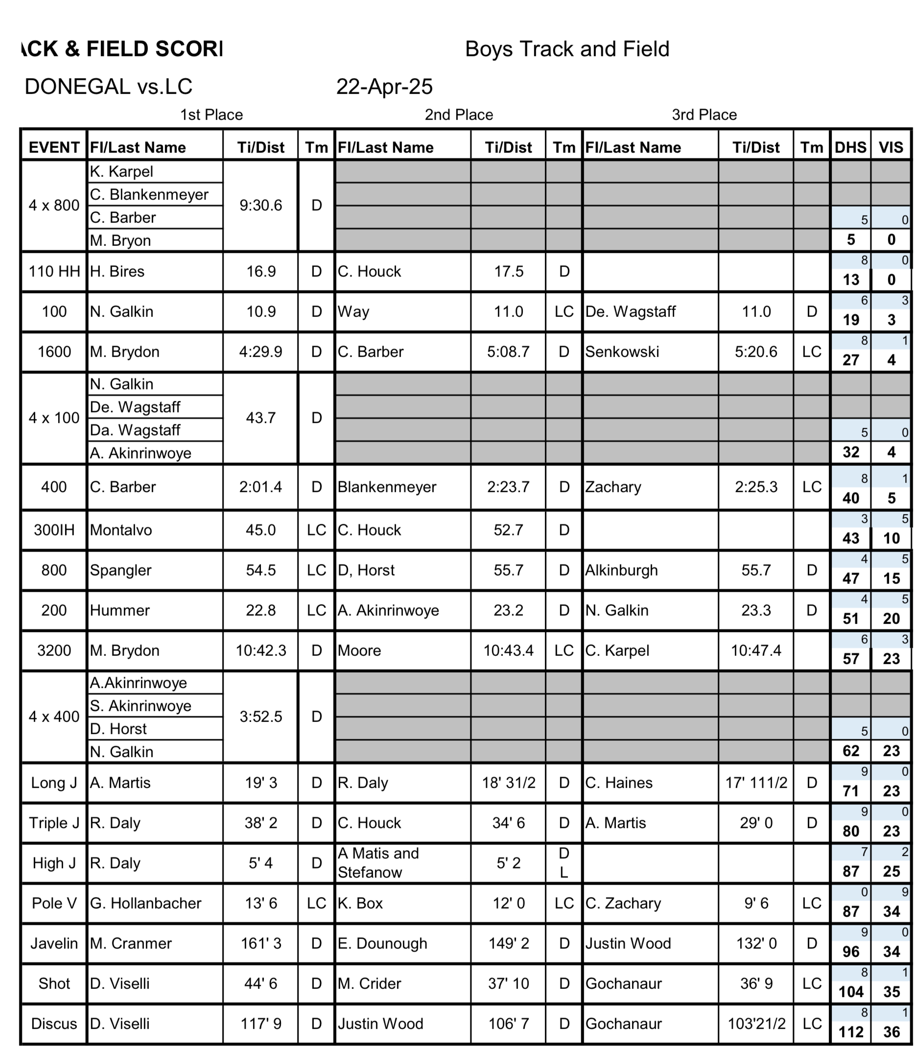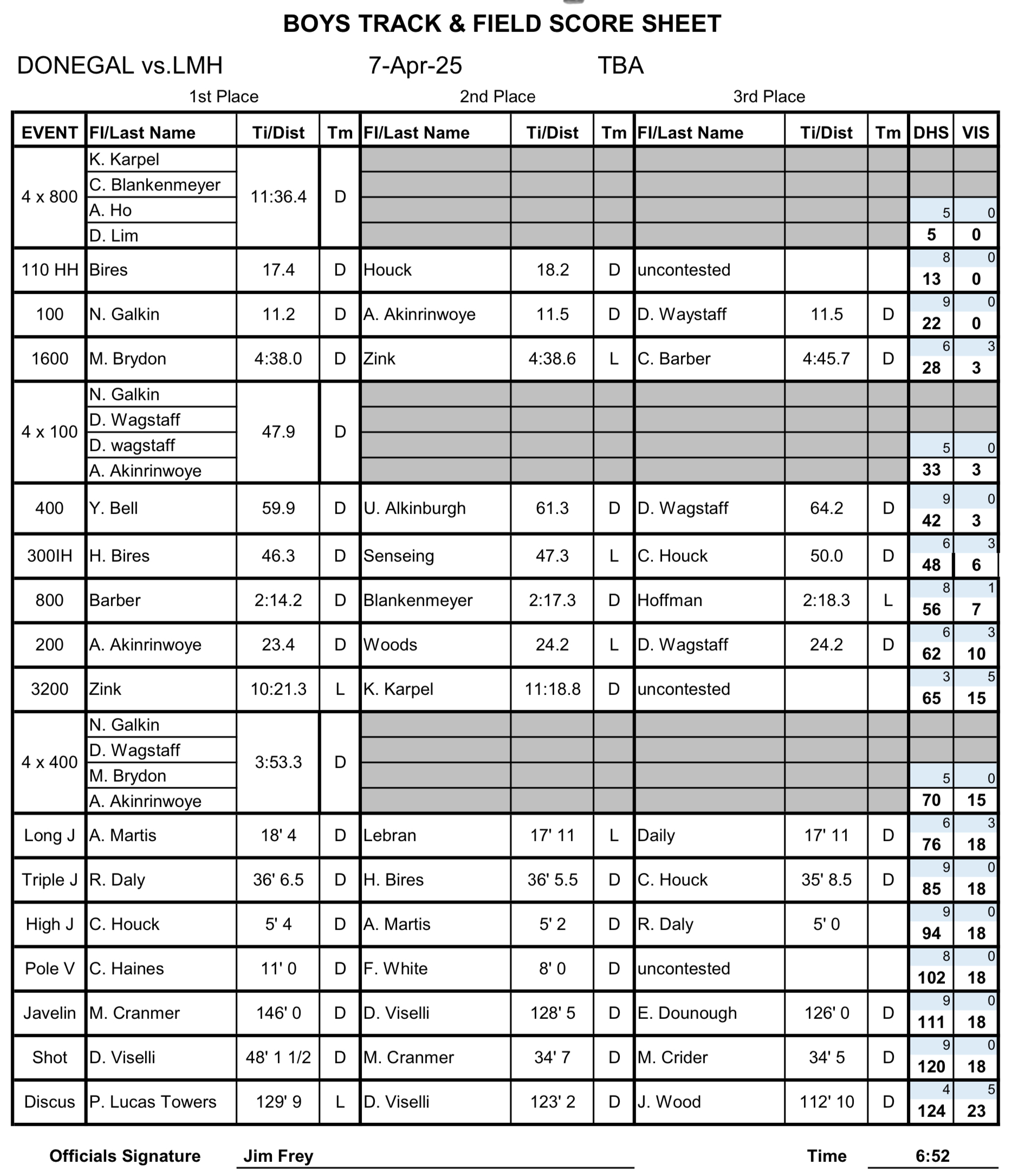 Northern Lebanon @ Donegal – Girls Boys (Continued from 3/31/25)