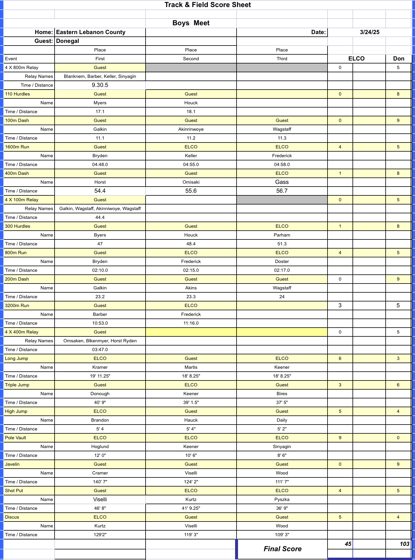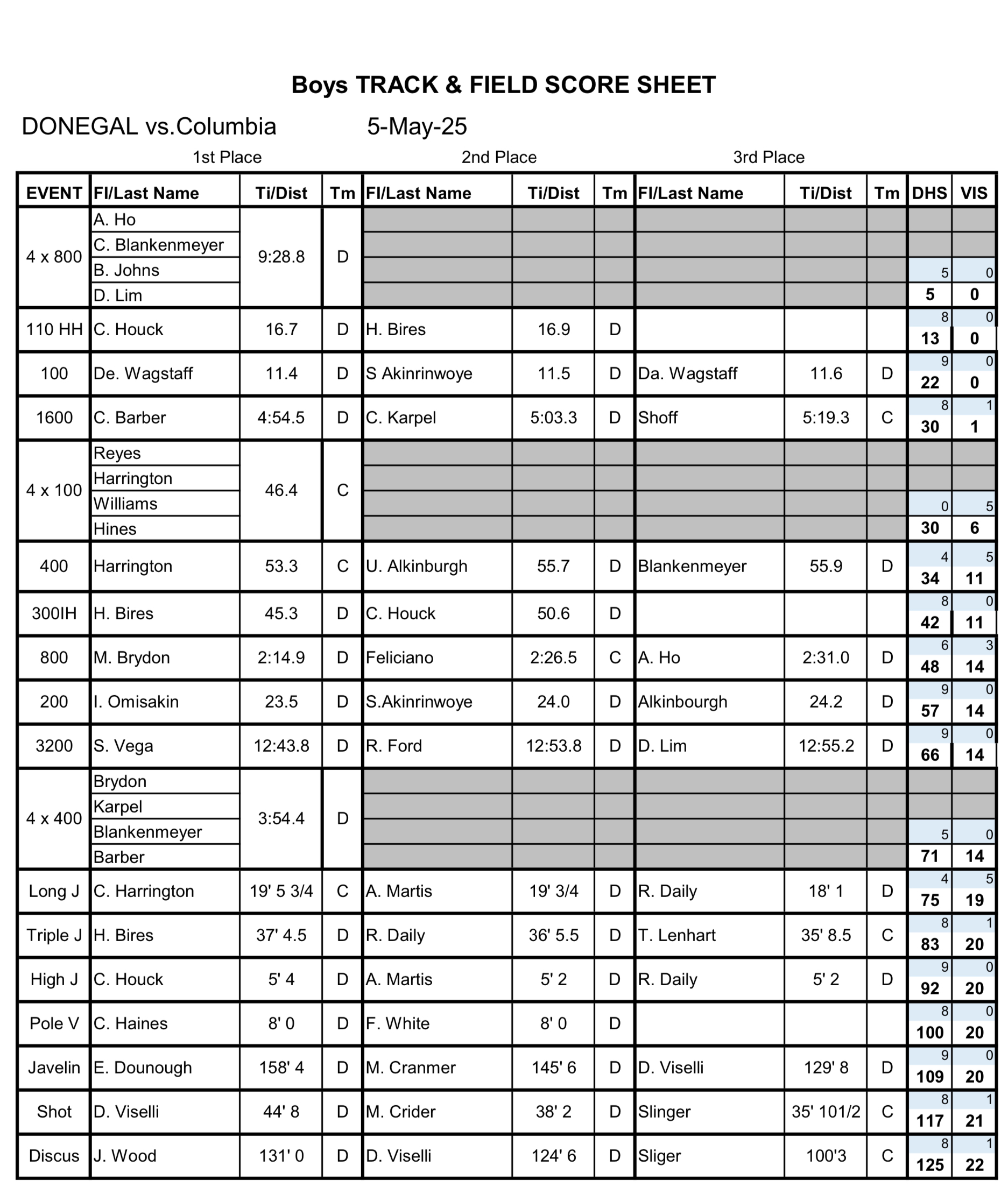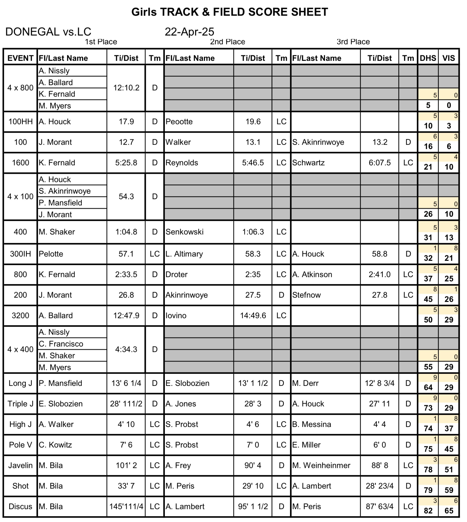 Northern Lebanon @ Donegal – Girls Boys (Continued from 3/31/25)