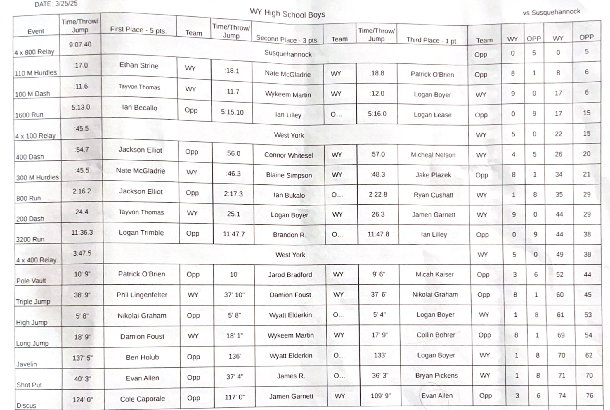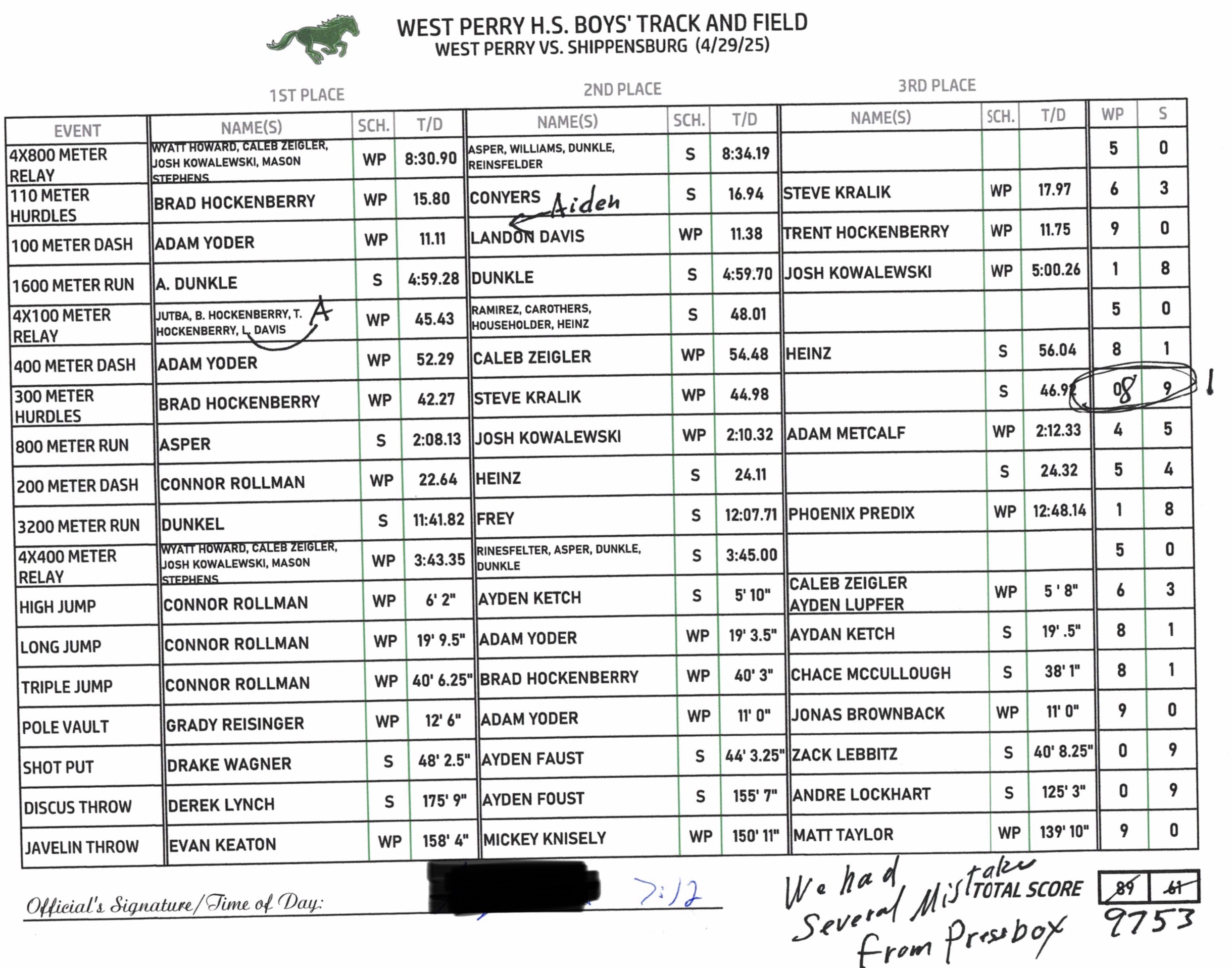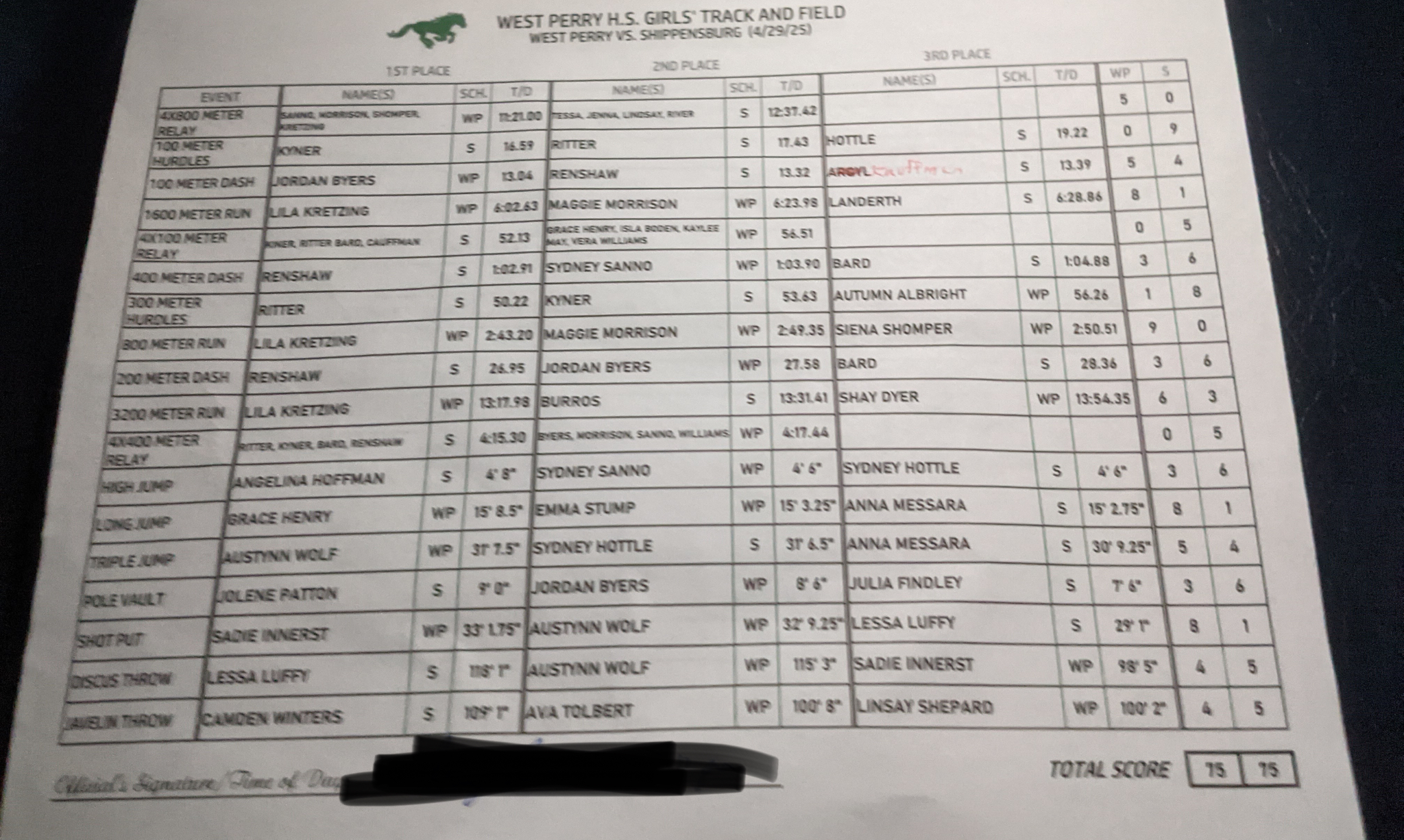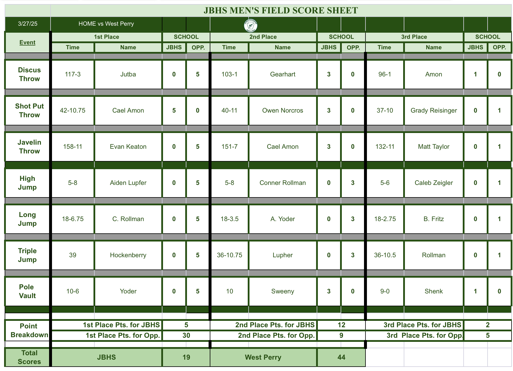 West Perry @ James Buchanan – Girls Track Girls Field Boys Track Boys Field