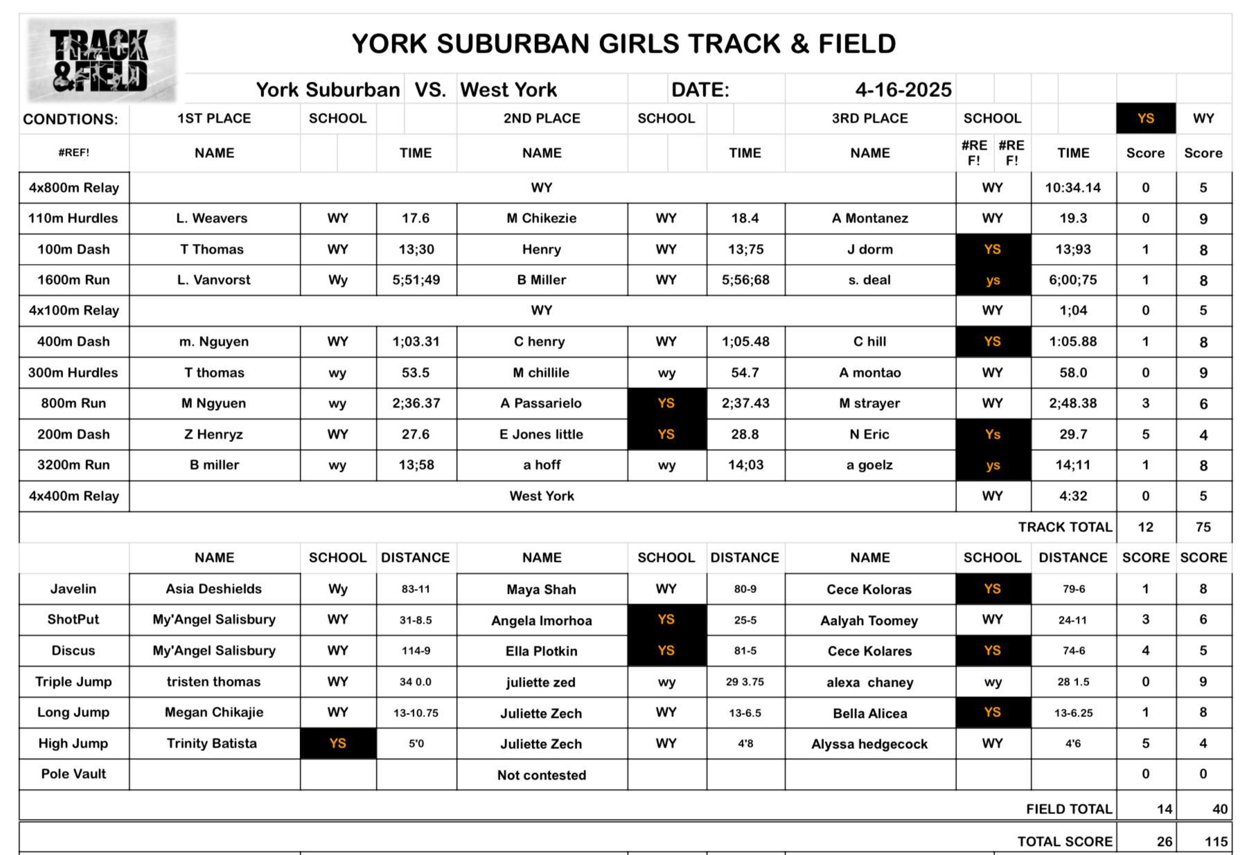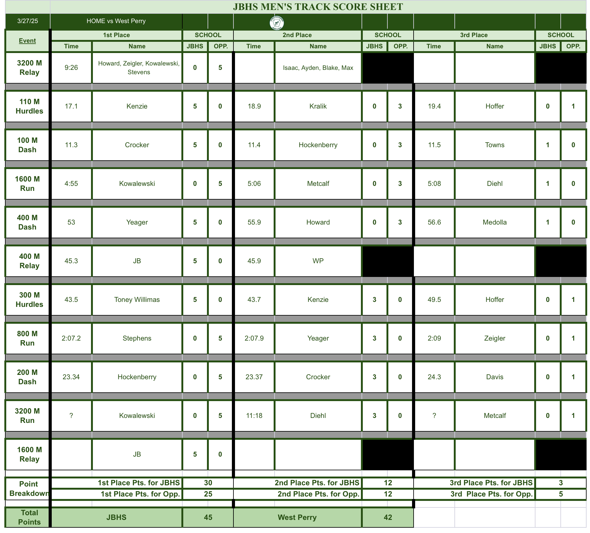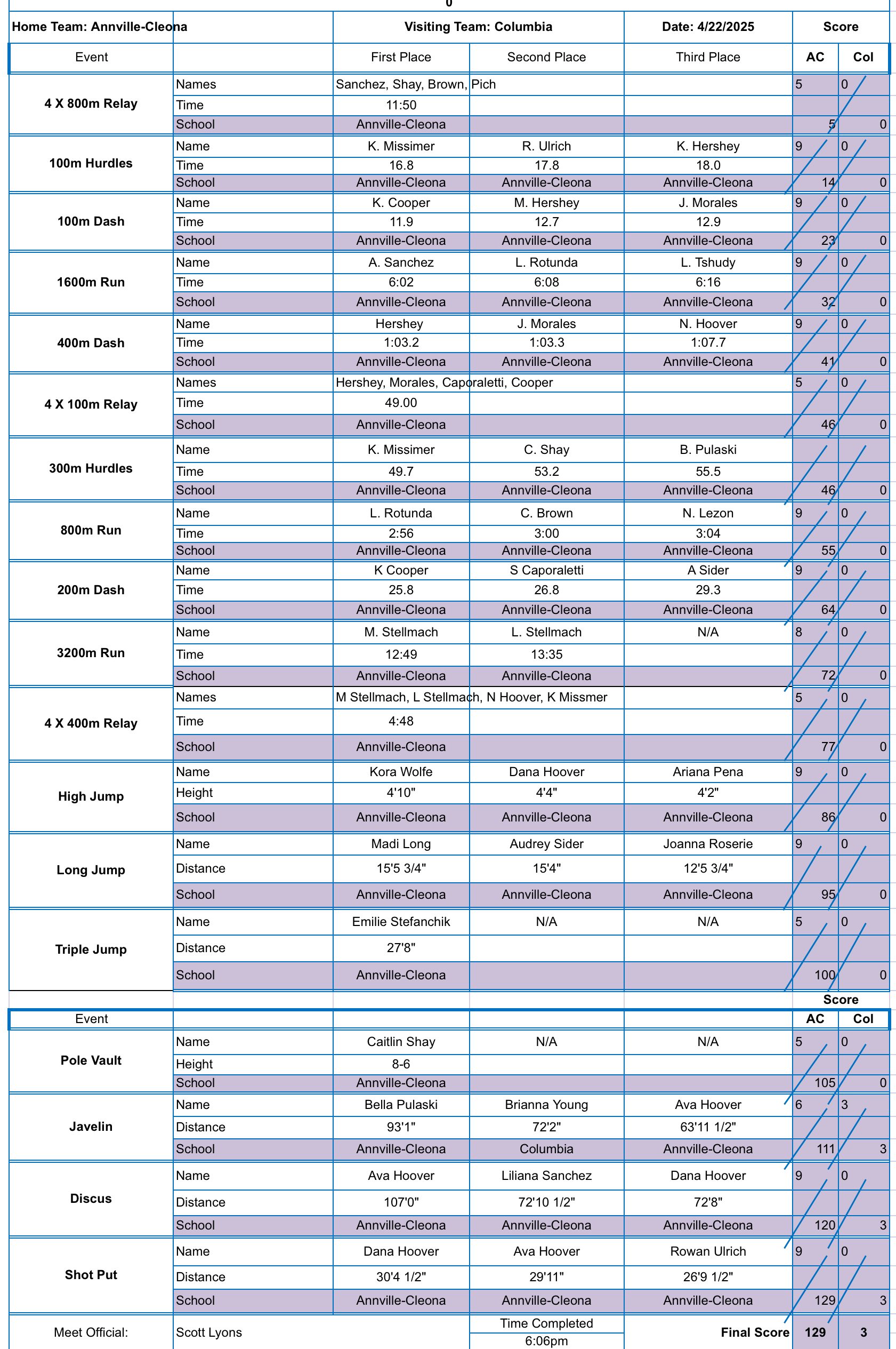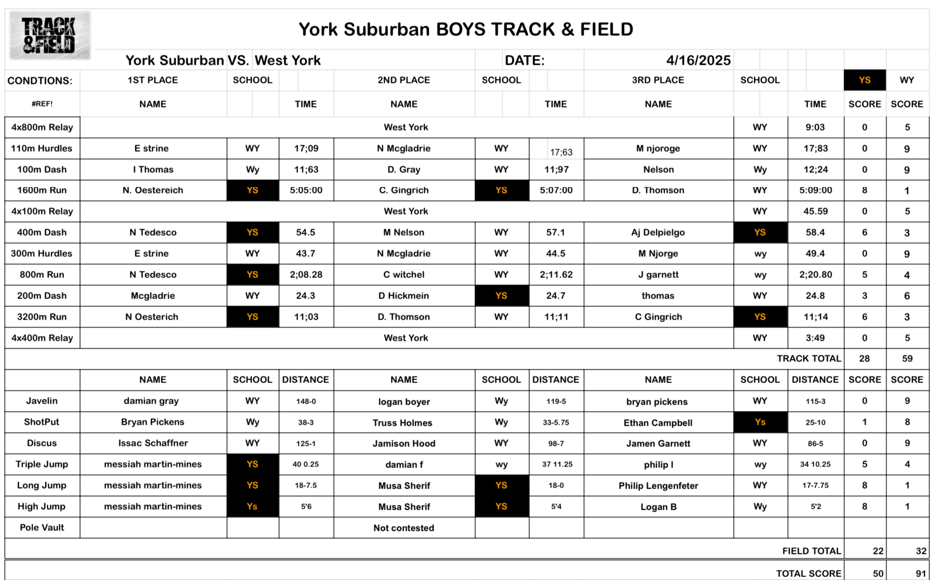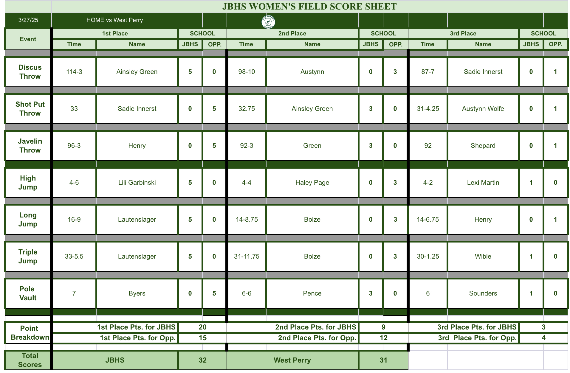 West Perry @ James Buchanan – Girls Track Girls Field Boys Track Boys Field