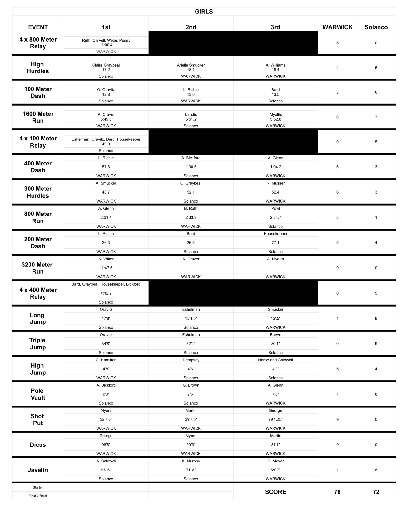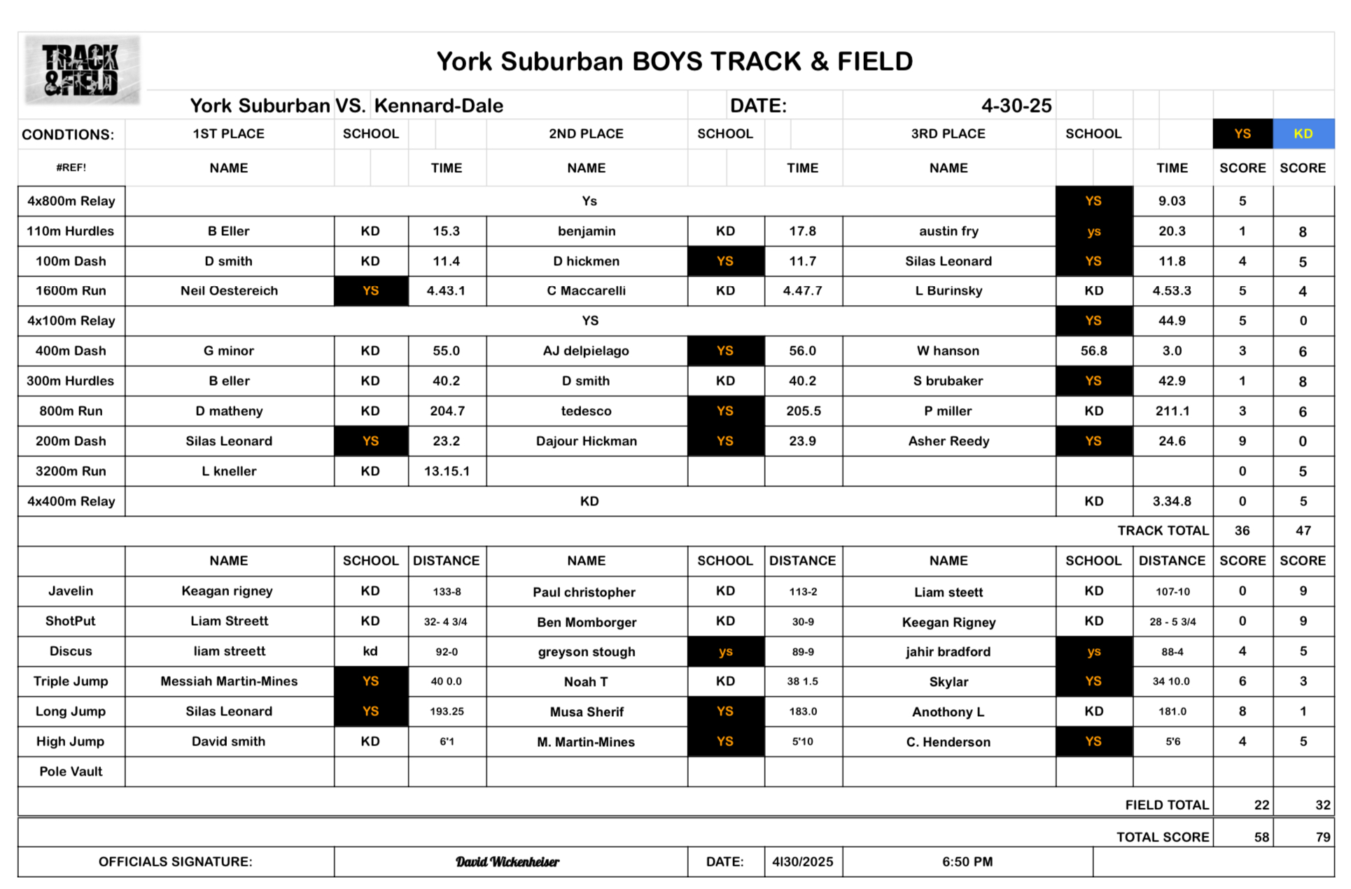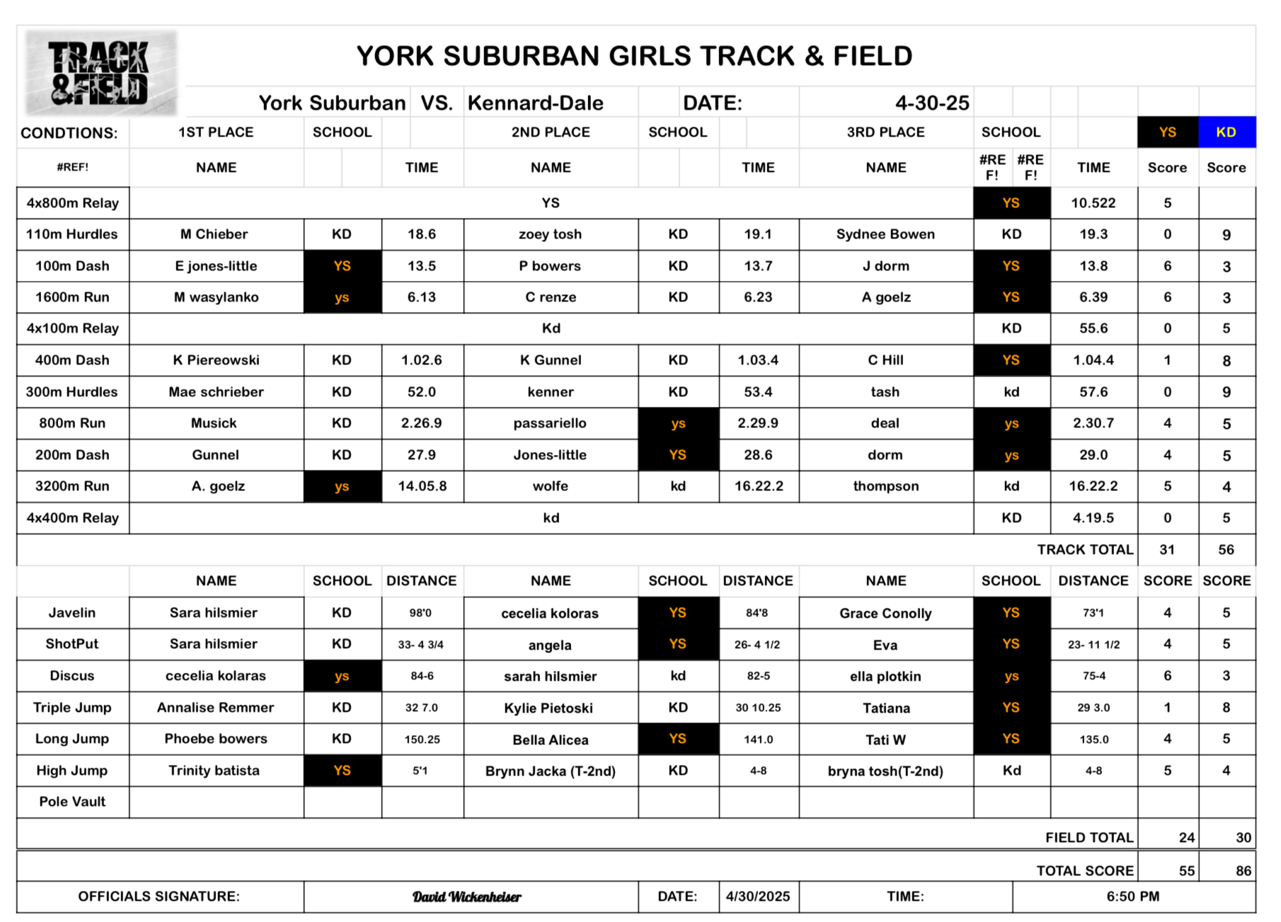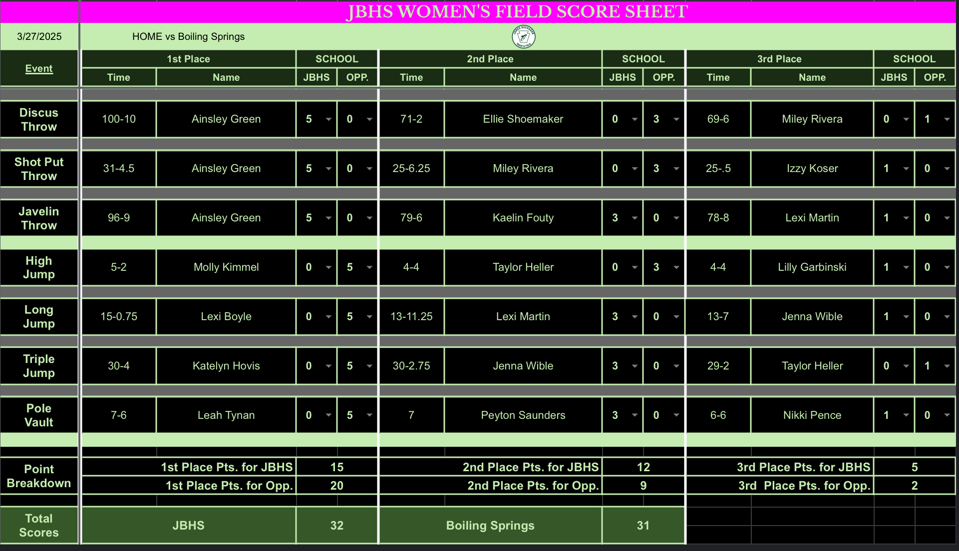 West Perry @ James Buchanan – Girls Track Girls Field Boys Track Boys Field