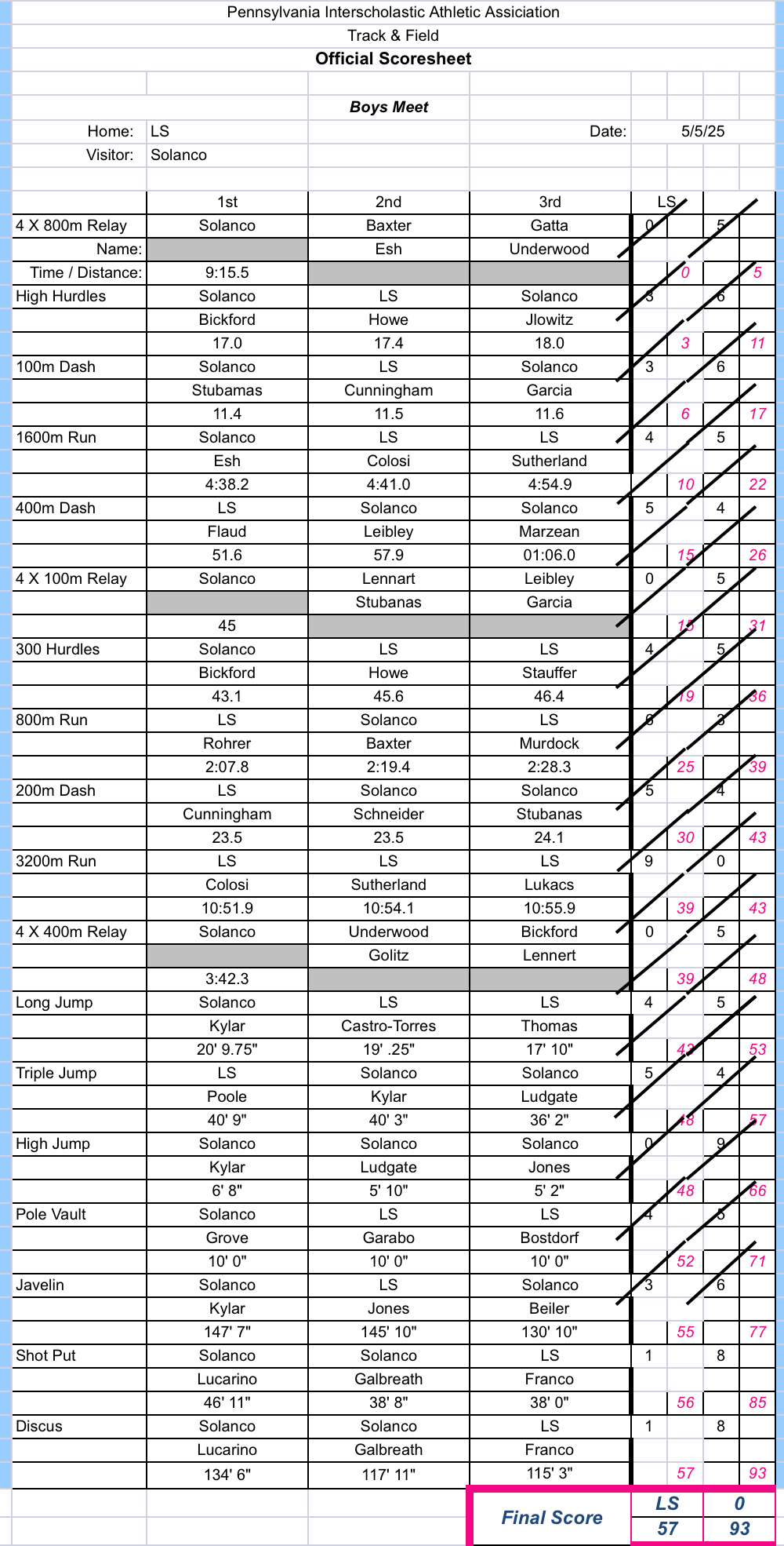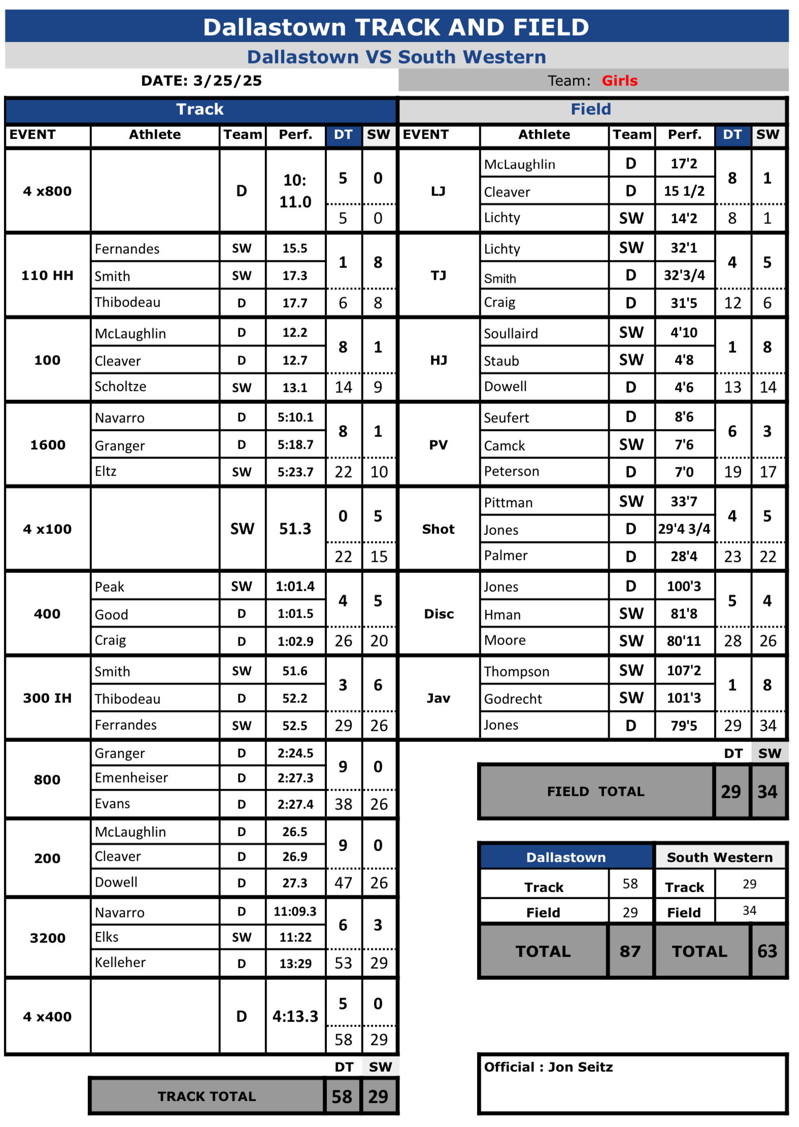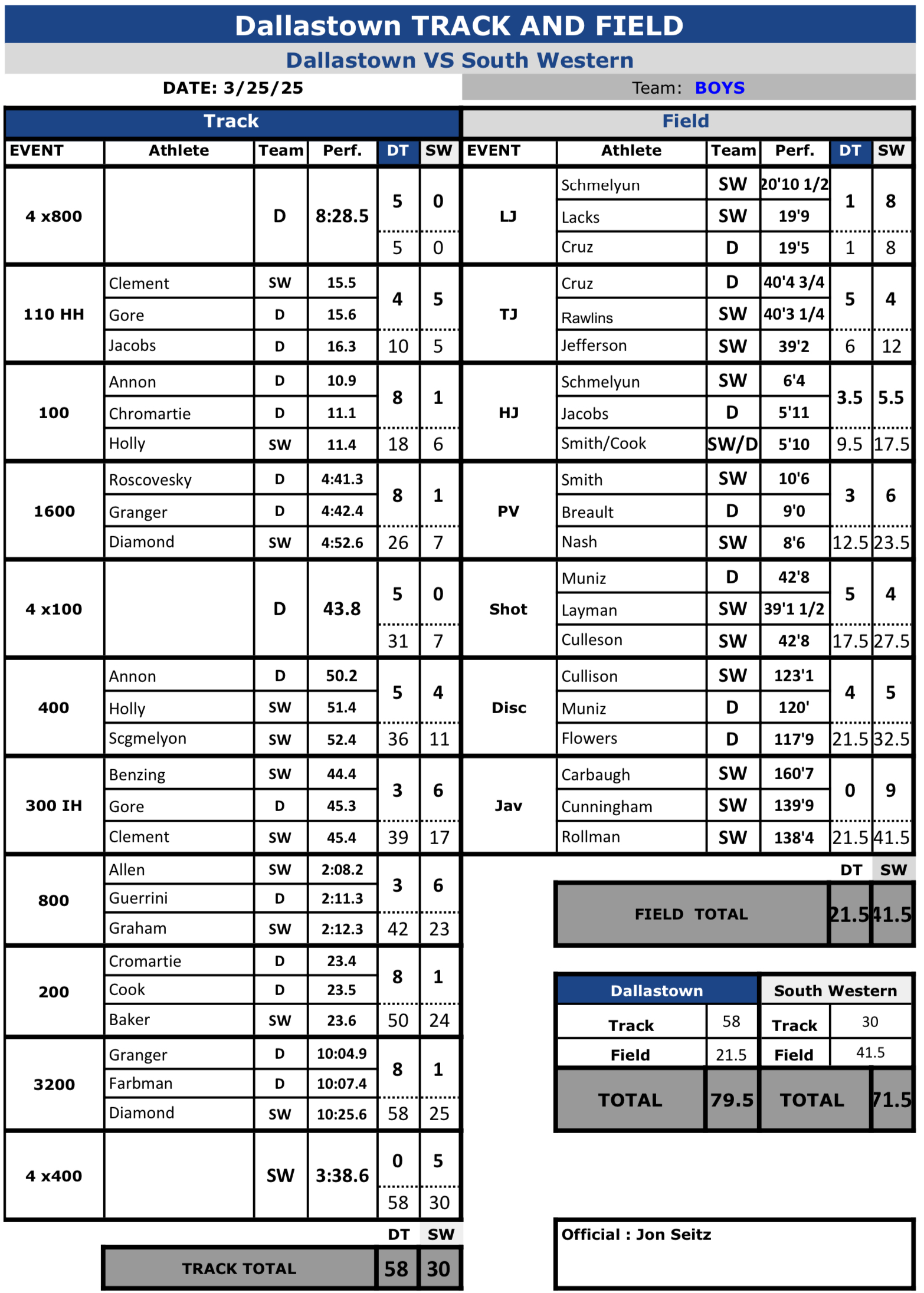 Harrisburg Christian & Susquehanna Township @ Lower Dauphin – Results