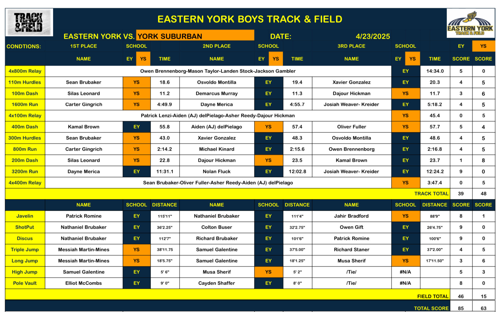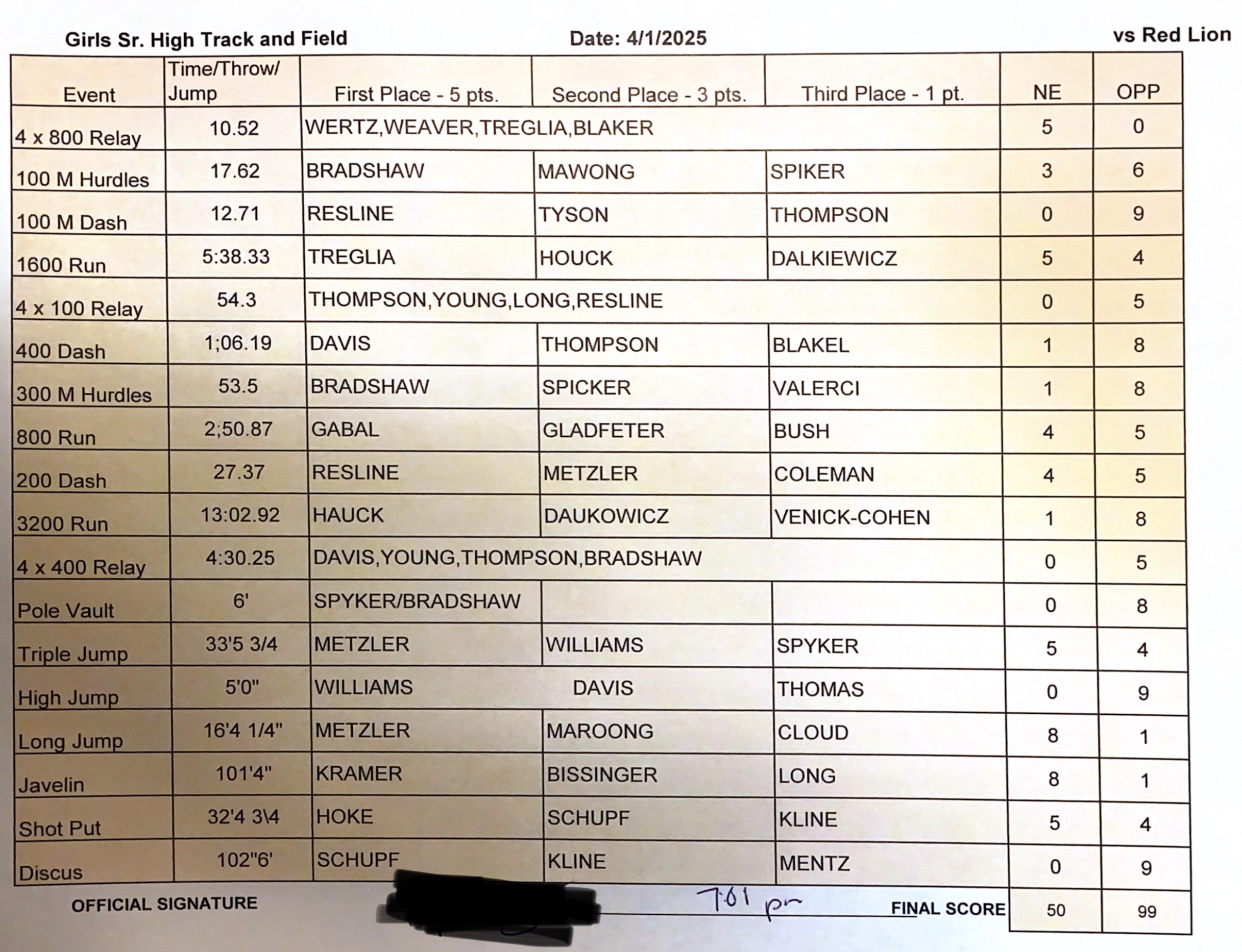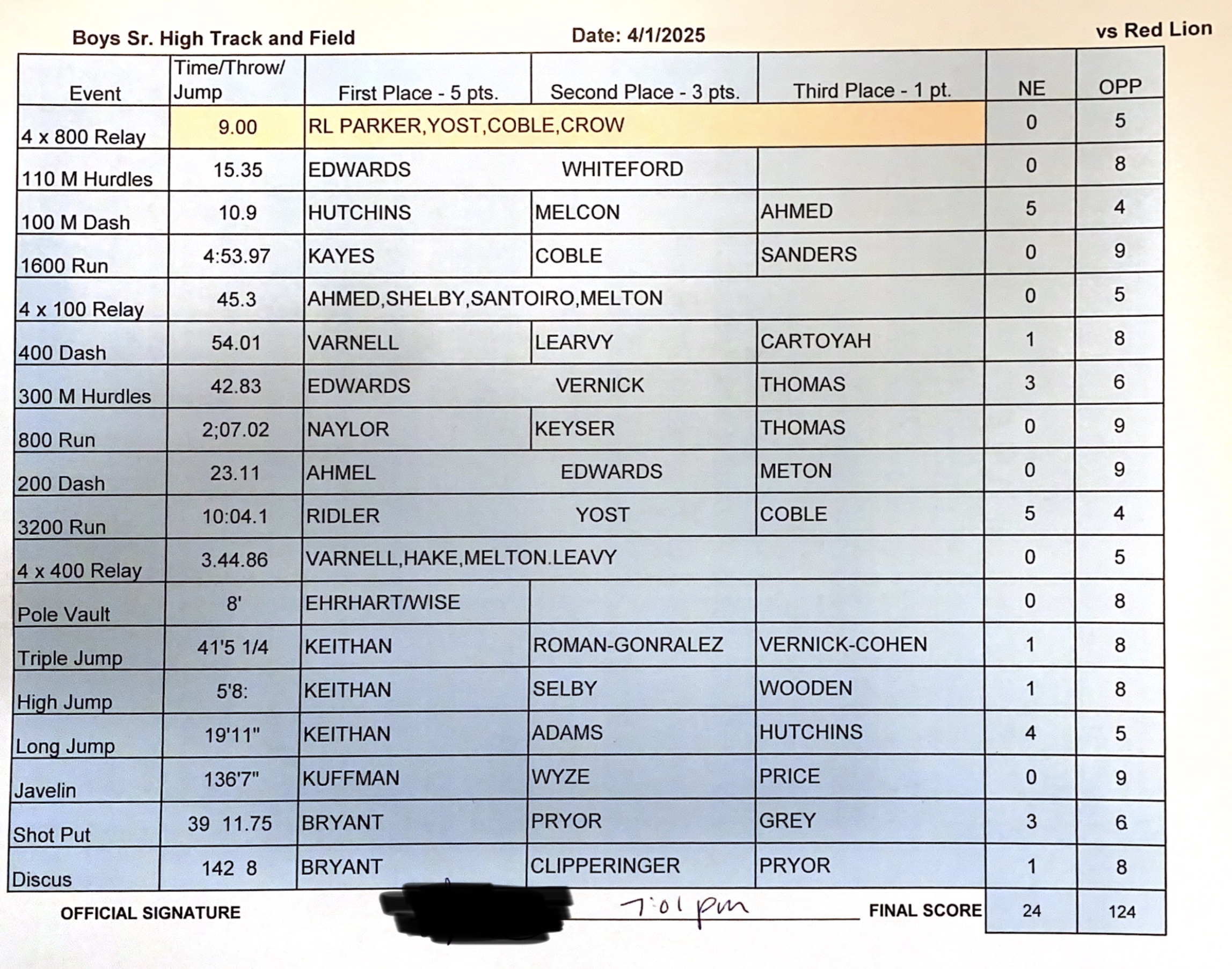Northern & Harrisburg Christian @ East Pennsboro – Results