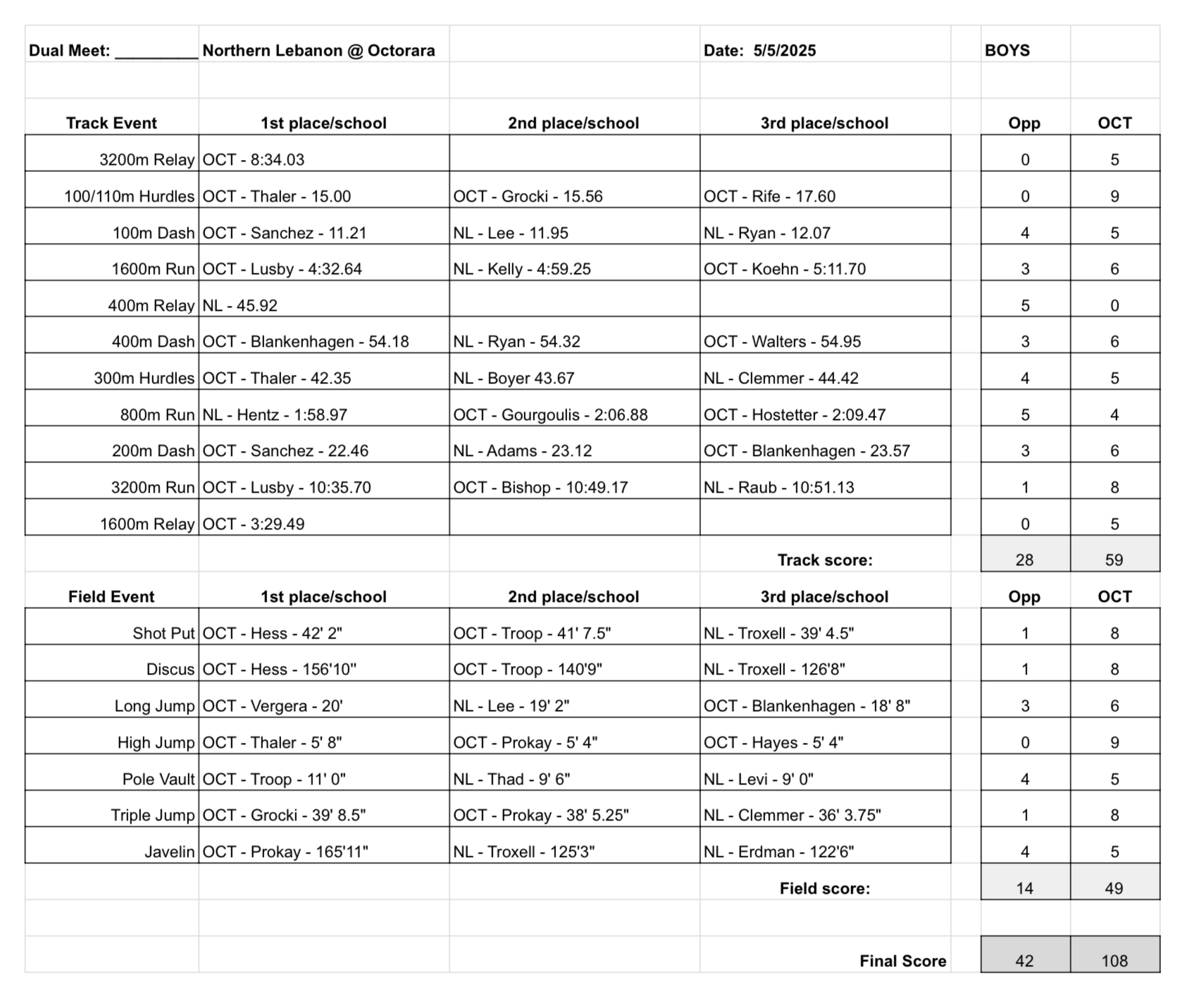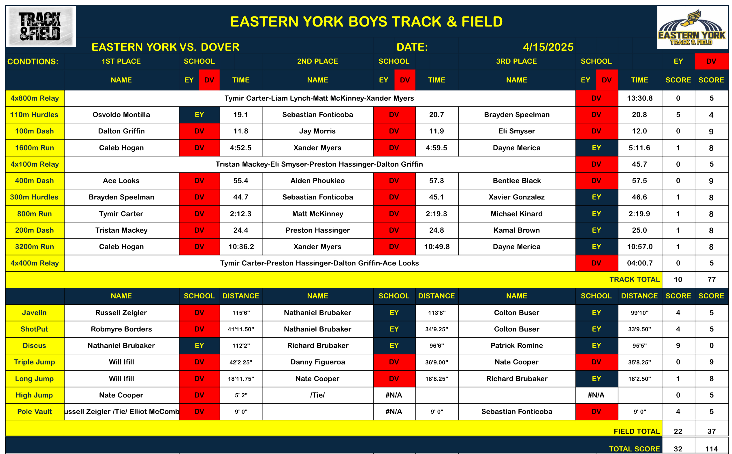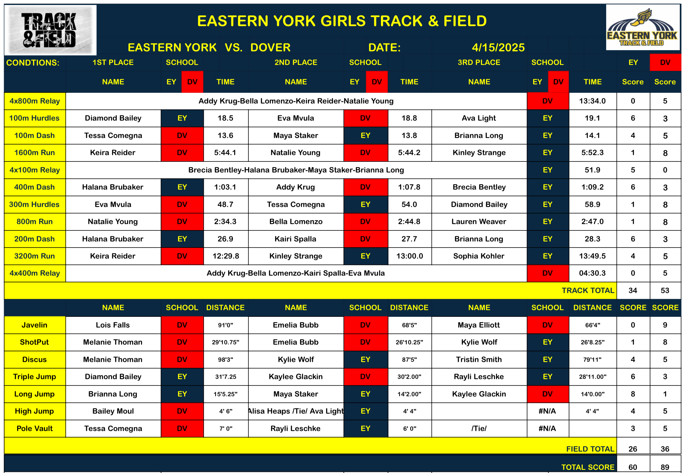 Northern & Harrisburg Christian @ East Pennsboro – Results
