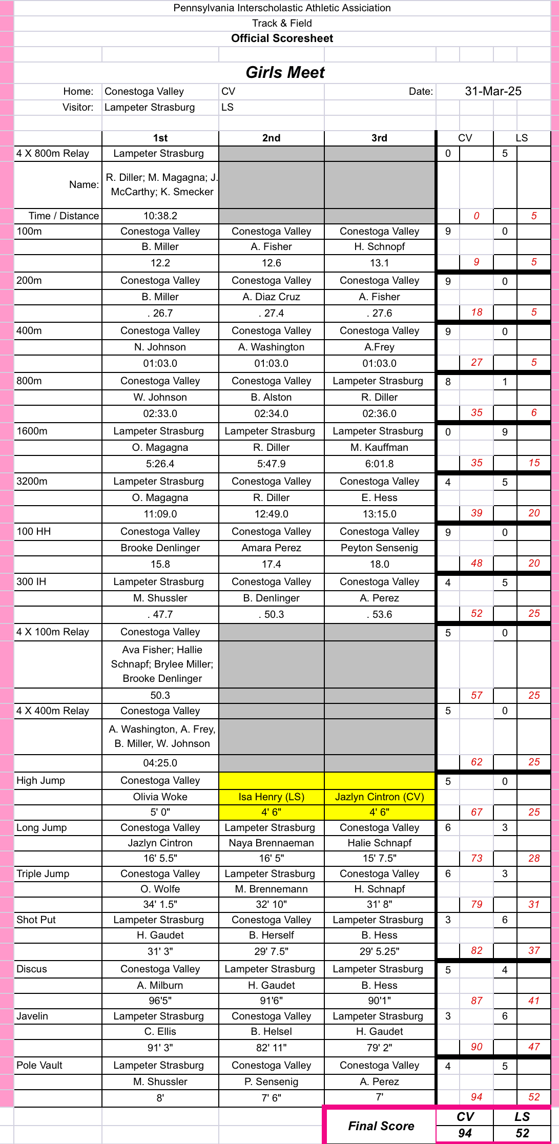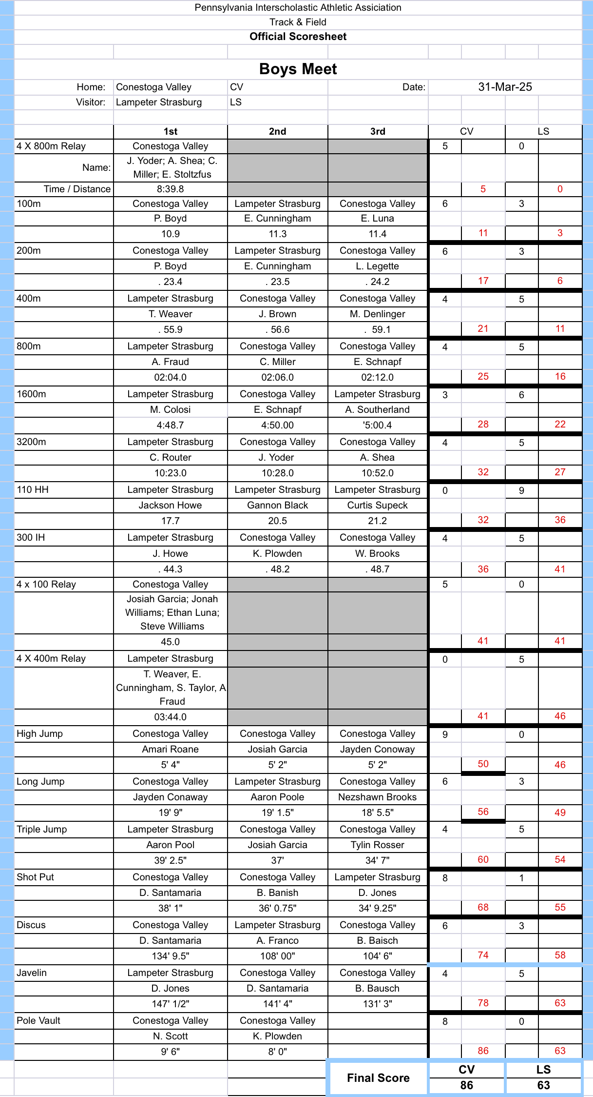 Lampeter Strasburg @ Conestoga Valley – Girls Boys