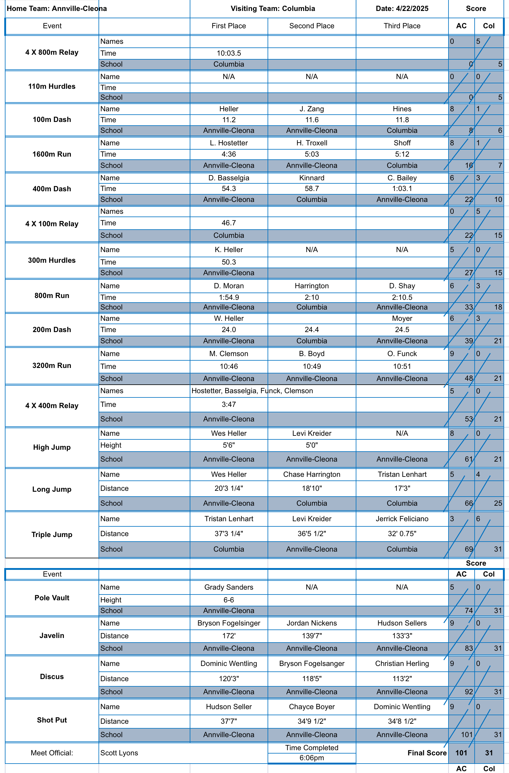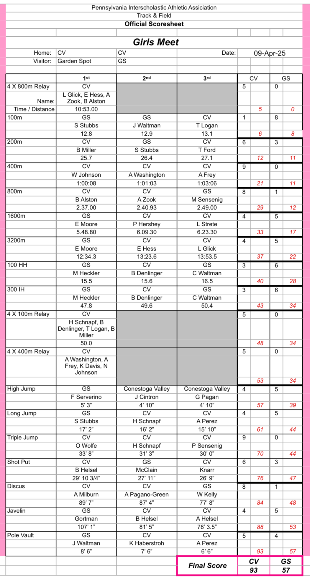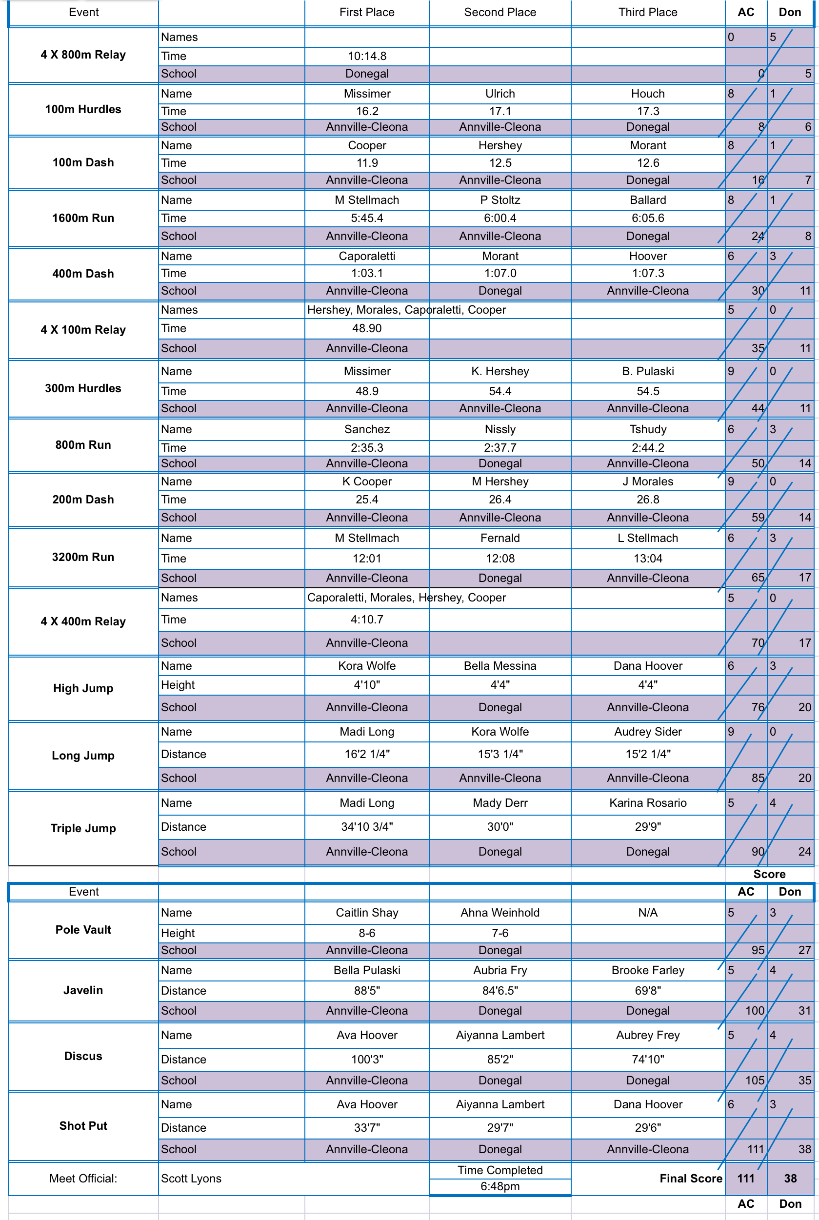Altoona & Mifflin County @ Cumberland Valley – Results