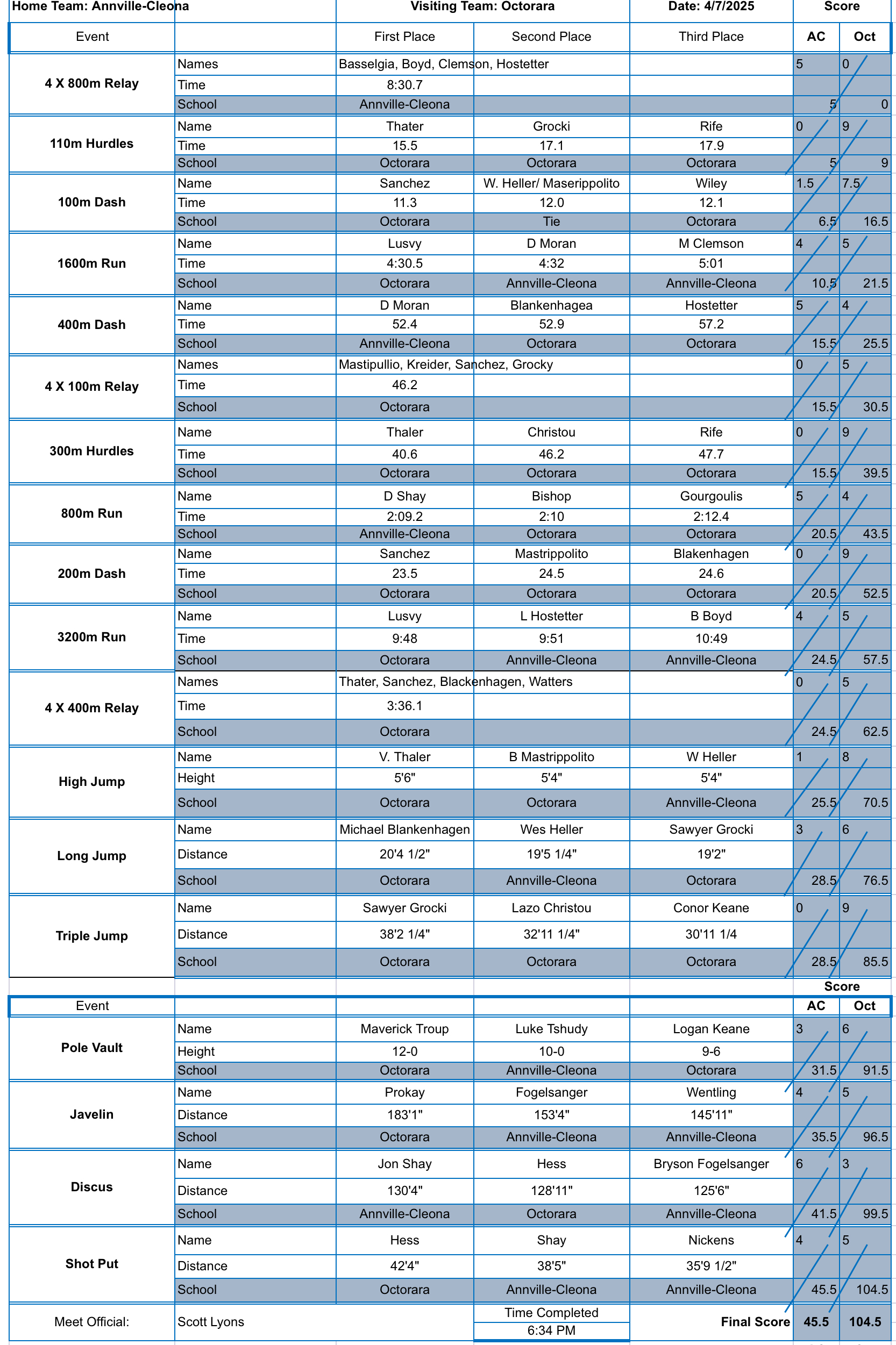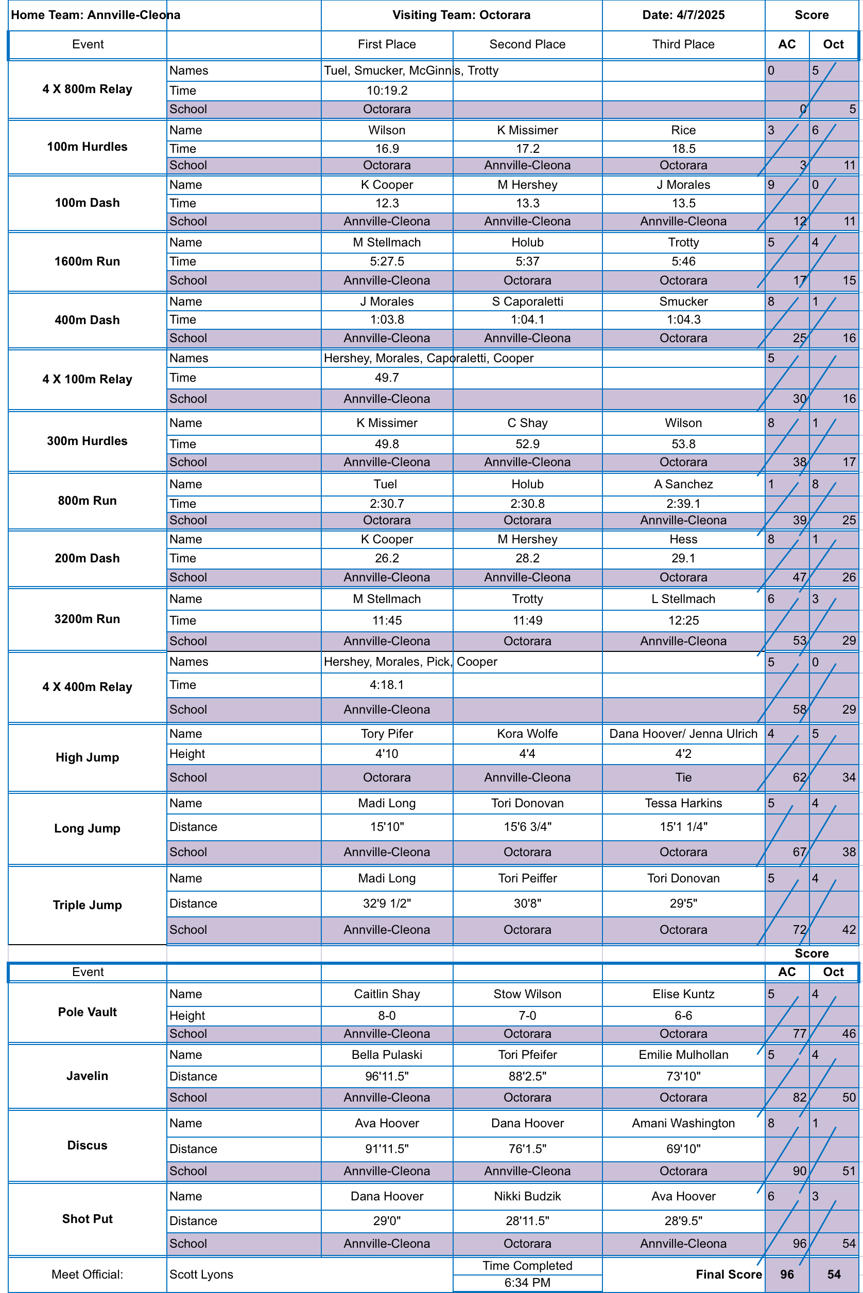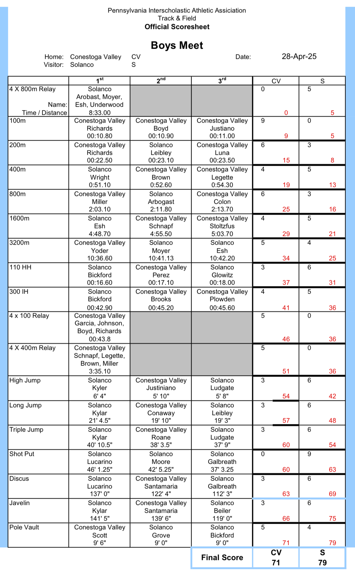 Altoona & Mifflin County @ Cumberland Valley – Results