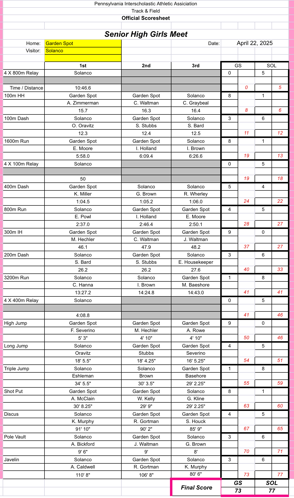 Penns Valley & Huntingdon @Hollidaysburg – Results