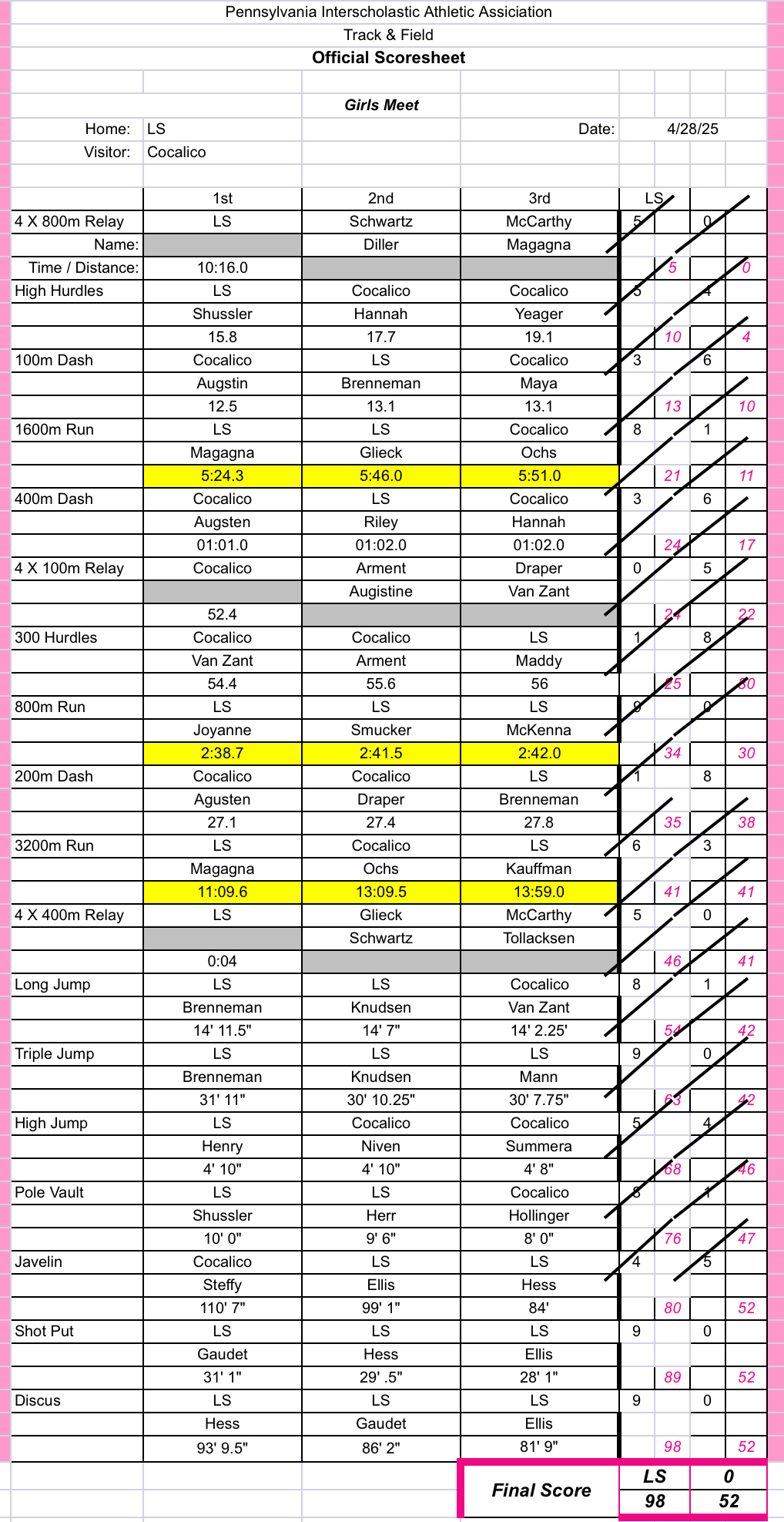 Lancaster Mennonite Small School Meet – Girls Girls Team Boys Boys Team