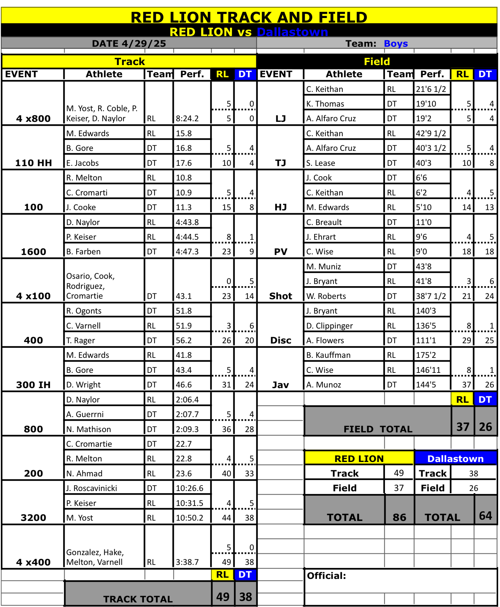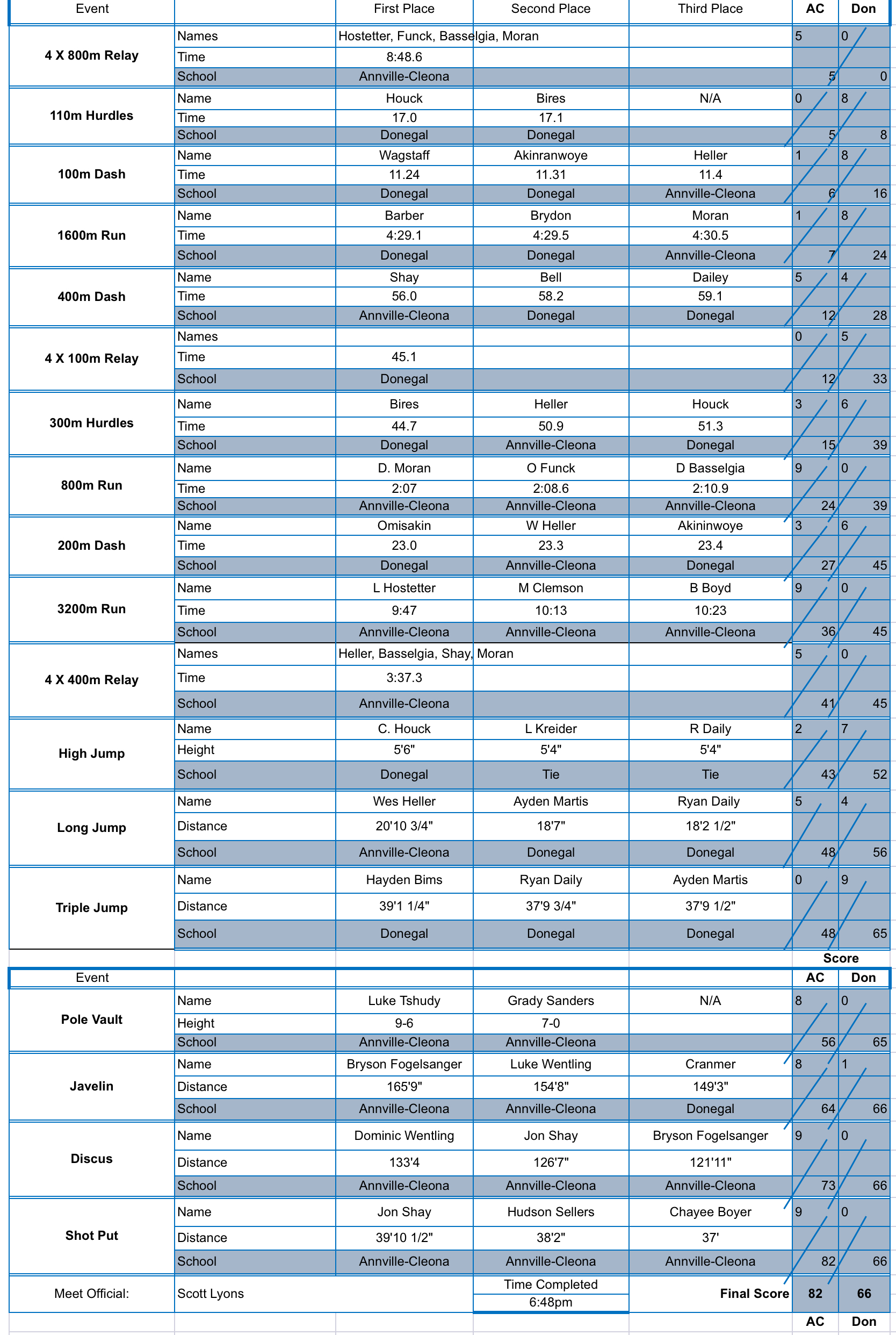 Altoona Mt. Lion Invitational – AA Results AAA Results