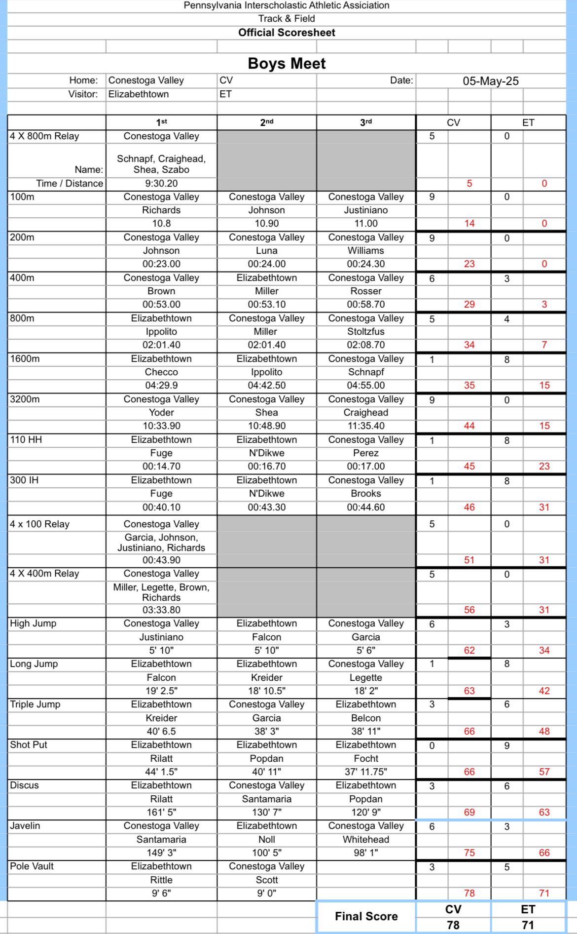 Elizabethtown @ Conestoga Valley – Girls Boys