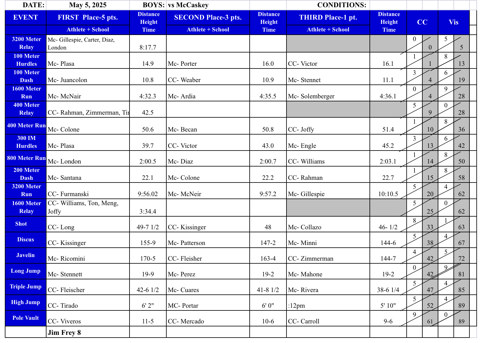 McConnelsburg @ James Buchanan – Girls Track Girls Field Boys Track Boys Field